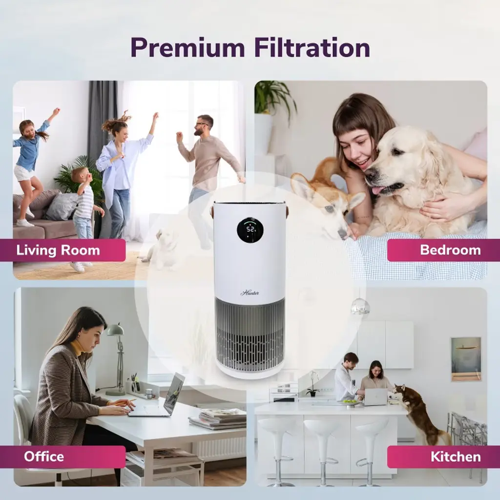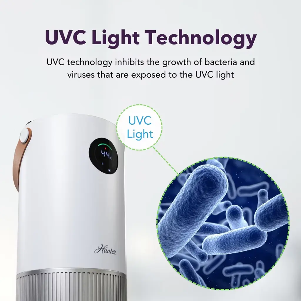 Upgrade your space with the Hunter HPH625 1.1 Gal/ 4.1 Liter Humidifier and Air Purifier Combo—a stylish, compact solution designed to enhance air quality and comfort. This mist-free dual-function device combines the benefits of a powerful air purifier and a high-performance humidifier for large rooms, making it an essential addition to any modern living environment. Perfect for your home office, bedroom, or apartment, this unit helps maintain optimal humidity levels while filtering out dust, allergens, and airborne particles, leading to a comfortable, clean, and sustainable home environment. Its whisper-quiet operation and sleek design make it one of the best humidifiers for bedrooms, ensuring restful sleep and a healthier atmosphere. Available in four elegant colors—white, grey, sage, and black—the HPH625 complements any décor and fits seamlessly into your home essentials, apartment essentials, or dorm essentials checklist. Whether you're furnishing a new space or upgrading your current setup, this versatile device is a must-have for anyone who values clean air and cozy comfort.