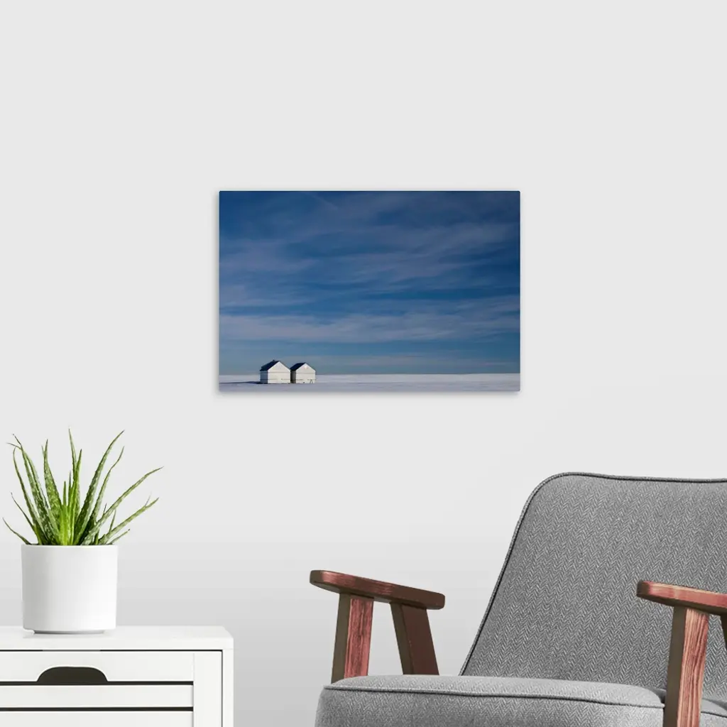 Hussar, Alberta, Canada, Two Small Farm Buildings In Flat Winter Landscape wall art for home and office decor. Discover canvas art prints, photos, mural, big canvas art and framed wall art in GreatBigCanvas.com's varied collections.