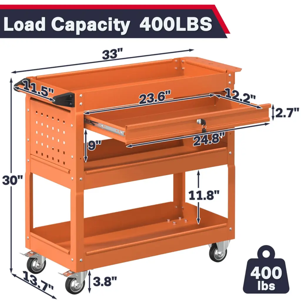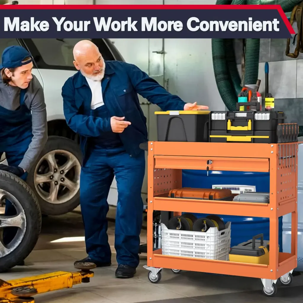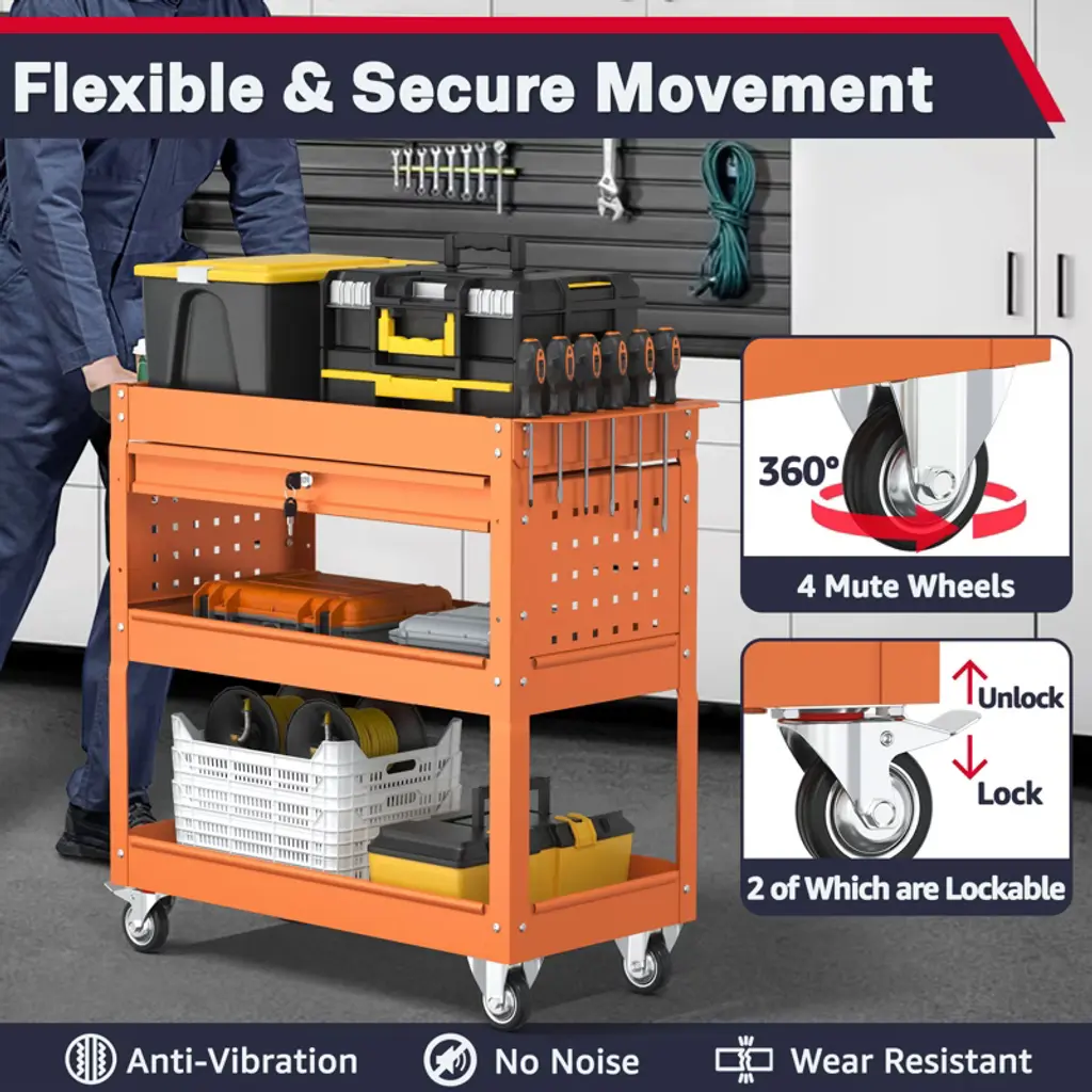 Huxxion 3-tier Rolling Tool Cart On Wheels, Heavy Duty Mechanic Tool Cart With Drawers, Utility Cart For Workshop Garage Warehouse(orange)