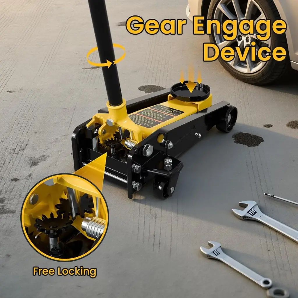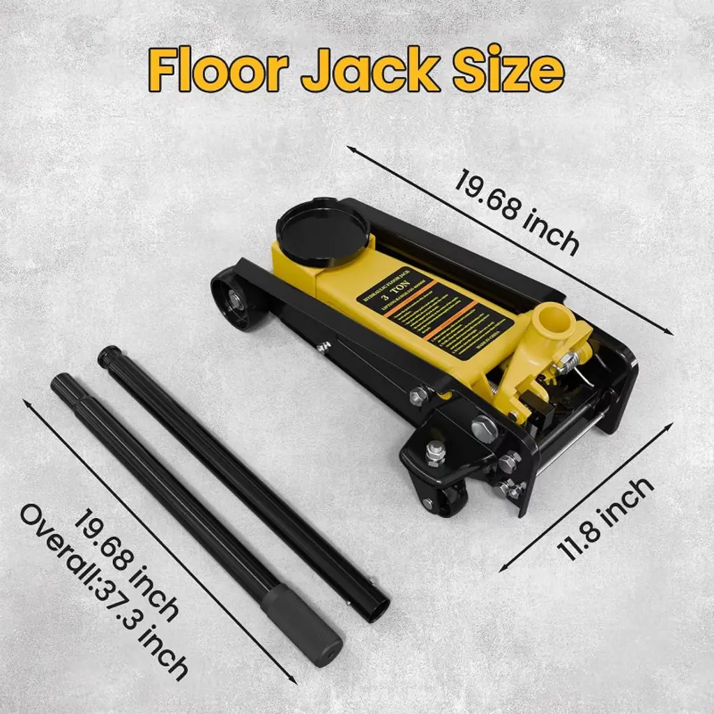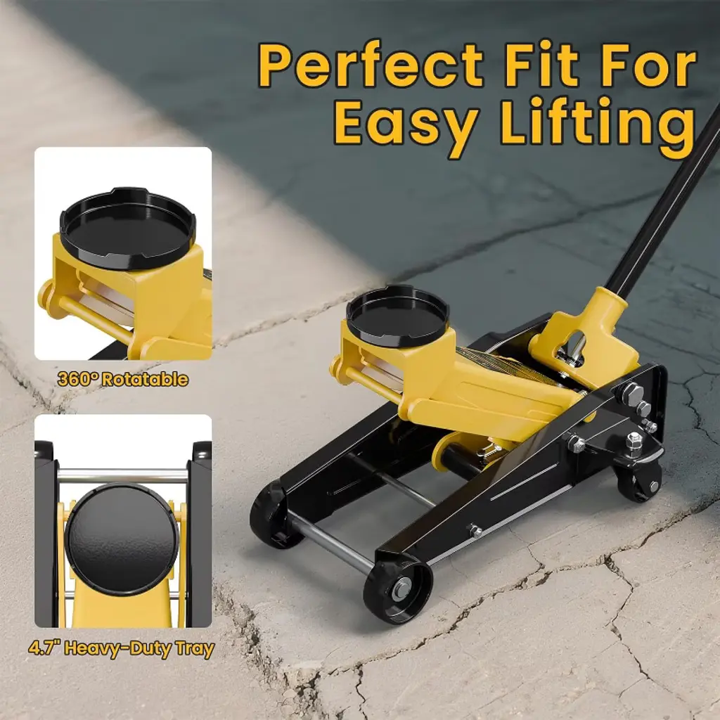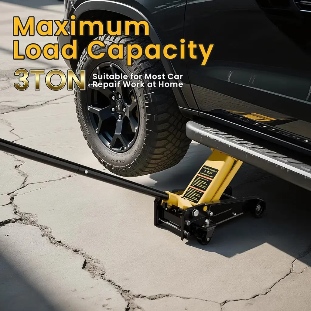 Take on any lifting task with confidence using this powerful 3 ton floor jack. Built for performance, it delivers up to 6600 lbs of lifting capacity—ideal for sedans, SUVs, and light trucks. Whether you're a pro mechanic or weekend DIYer, this car jack hydraulic makes tire changes, brake repairs, and oil maintenance faster and easier. Designed for versatility, this hydraulic jack for car features a low-profile lift range from 90 mm to 500 mm (3.5"–19.7"), so it can handle everything from sports cars to taller vehicles. The dual pump system reaches max height in just 7 strokes, saving you time and effort. Crafted with a combination of heavy-duty steel and lightweight aluminum, this jack is both durable and portable. Its 4 wheels (2 universal rear casters) and side carrying handles make it easy to move and position in your garage or driveway. A rubber saddle and foam handle sleeve protect your vehicle during use, while the 360° rotatable saddle ensures precise placement. Certified for safety (CE, UKCA, ASME PALD-2014) and drop-tested for secure shipping, this car jack is the reliable tool you need. Whether you call it a floor jack, trolley jack, or gato hidráulico para carro, this one’s built to lift, last, and get the job done.
