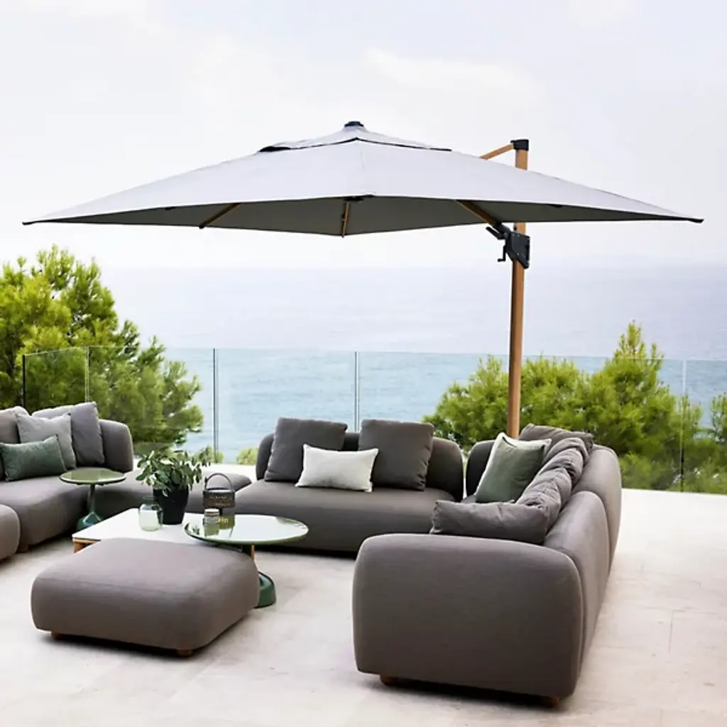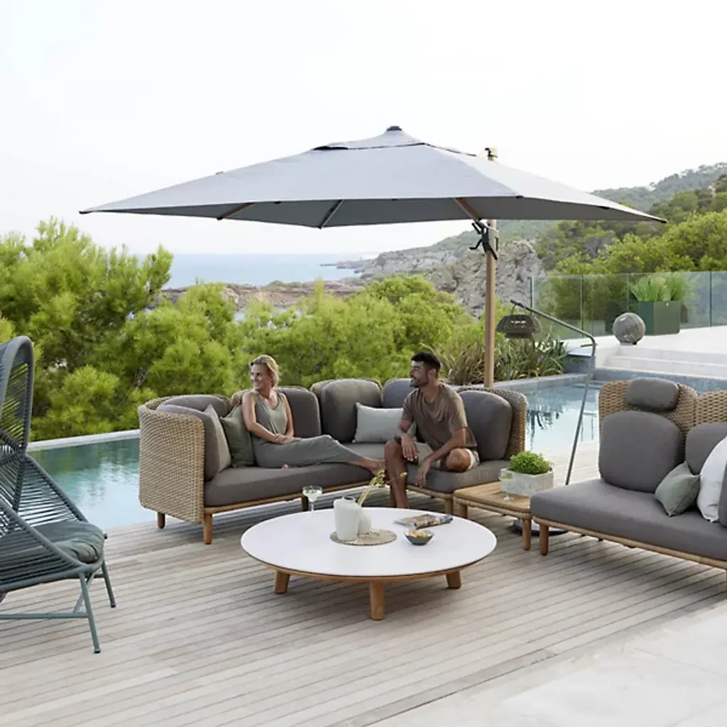 The Hyde Luxe Parasol with Tilt System from Cane-line offers ultimate outdoor comfort, creating a cozy oasis even under the sun's peak. Its modern and timeless design features an aluminum pole, optionally coated with a wood-look aluminum foil for a natural touch with minimal maintenance. Crafted from durable, UV-resistant fabric, this parasol ensures long-lasting sun protection while maintaining vibrant color. Note that it is advised not to use the parasol in heavy winds for safety.