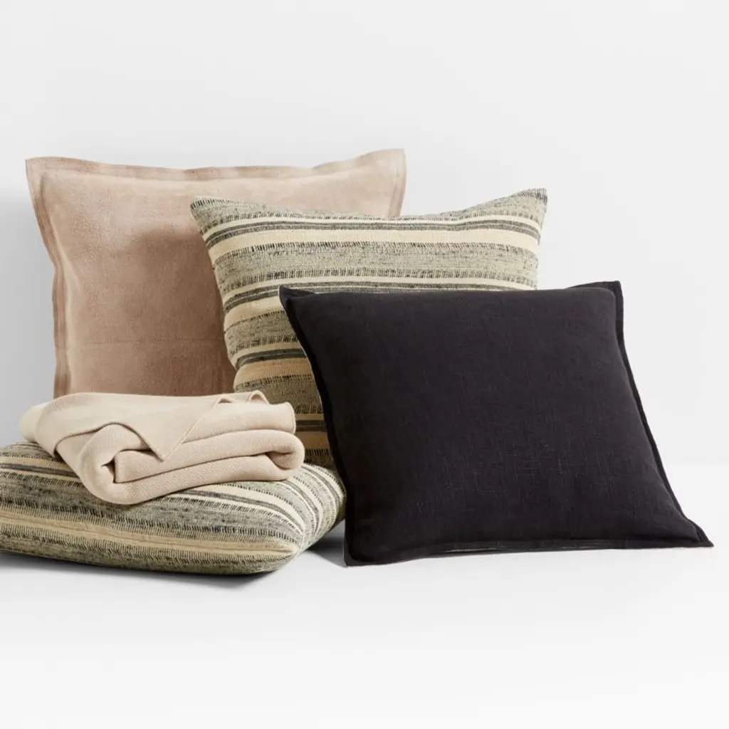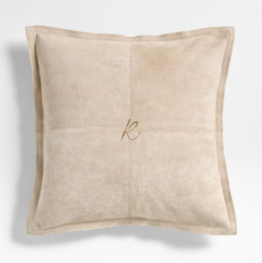 Pieces of creamy suede come together in a timeless-yet-modern square-patched pillow. Backed with beautiful linen, the soft and durable leather is stitched together then finished with well-tailored flange edges. Toss Hyde onto a sofa, armchair or bed to bring a subtle touch of rustic luxe to your decor, or layer with our cream velvet, linen and sheepskin pillows for a chic monochromatic mixed-material look. Our exclusive pieced suede throw pillow includes your choice of a plush feather or lofty down-alternative insert.