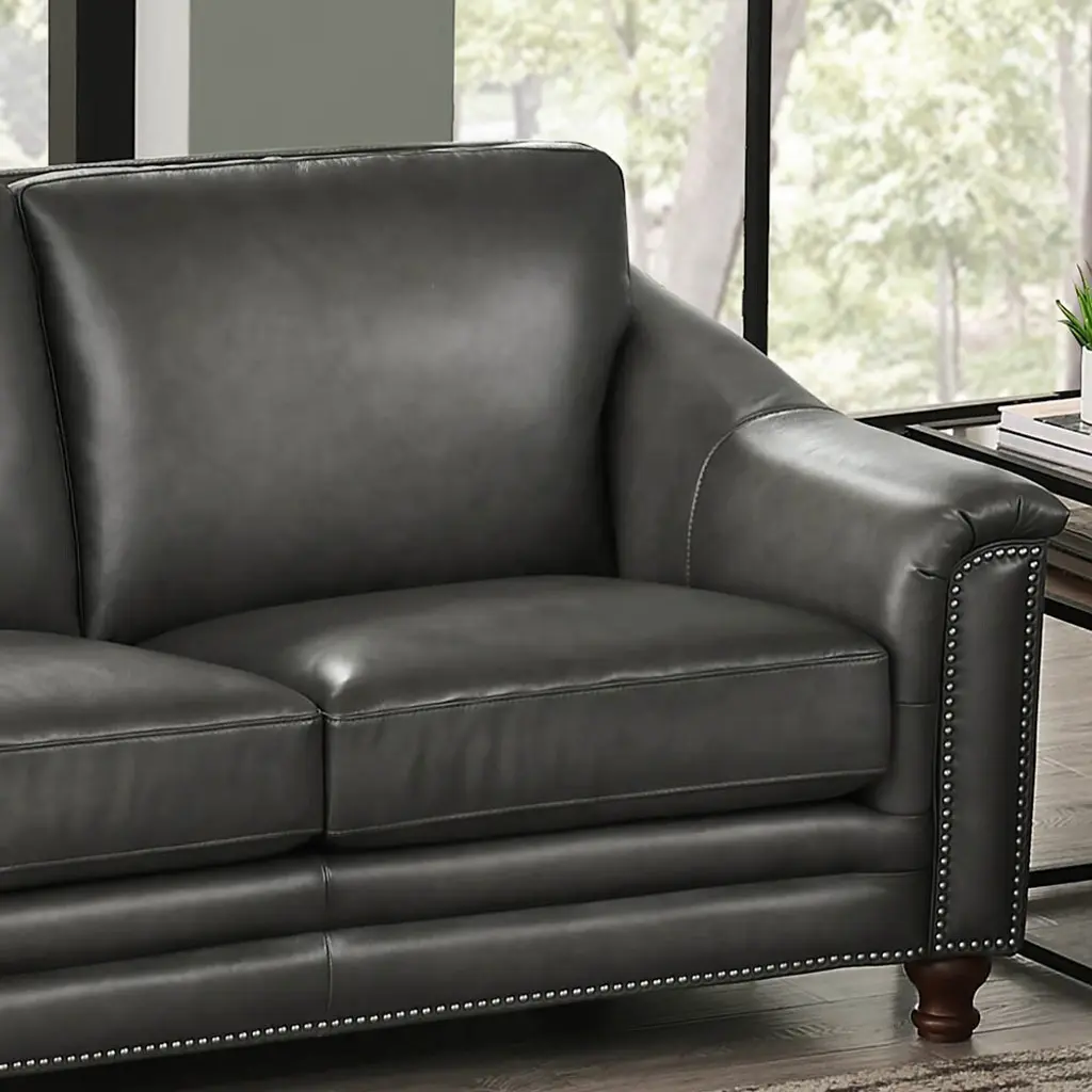 Hydeline Belfast Top Grain Leather Loveseat, Feather, Memory Foam And Springs - Ash Gray