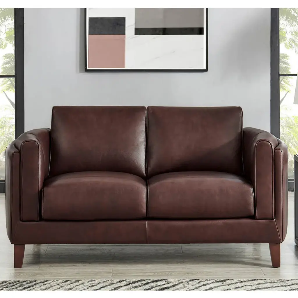 Hydeline Maui Top Grain Leather Loveseat With Feather, Memory Foam And Springs - Raisin Brown