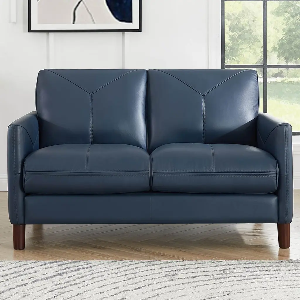 Hydeline Westcott Top Grain Leather Loveseat With Memory Foam And Springs - Spa Blue