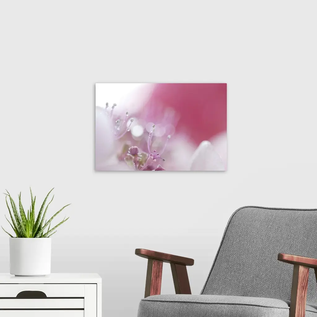 hydrangea flower pink nature pistils beautiful raindrops macro
