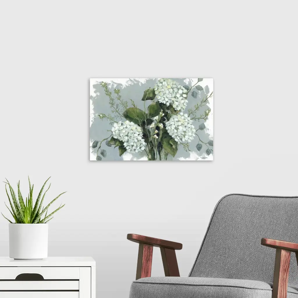 Hydrangeas In White wall art for home and office decor. Discover canvas art prints, photos, mural, big canvas art and framed wall art in GreatBigCanvas.com's varied collections.