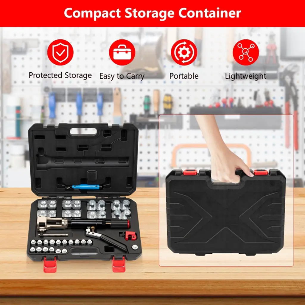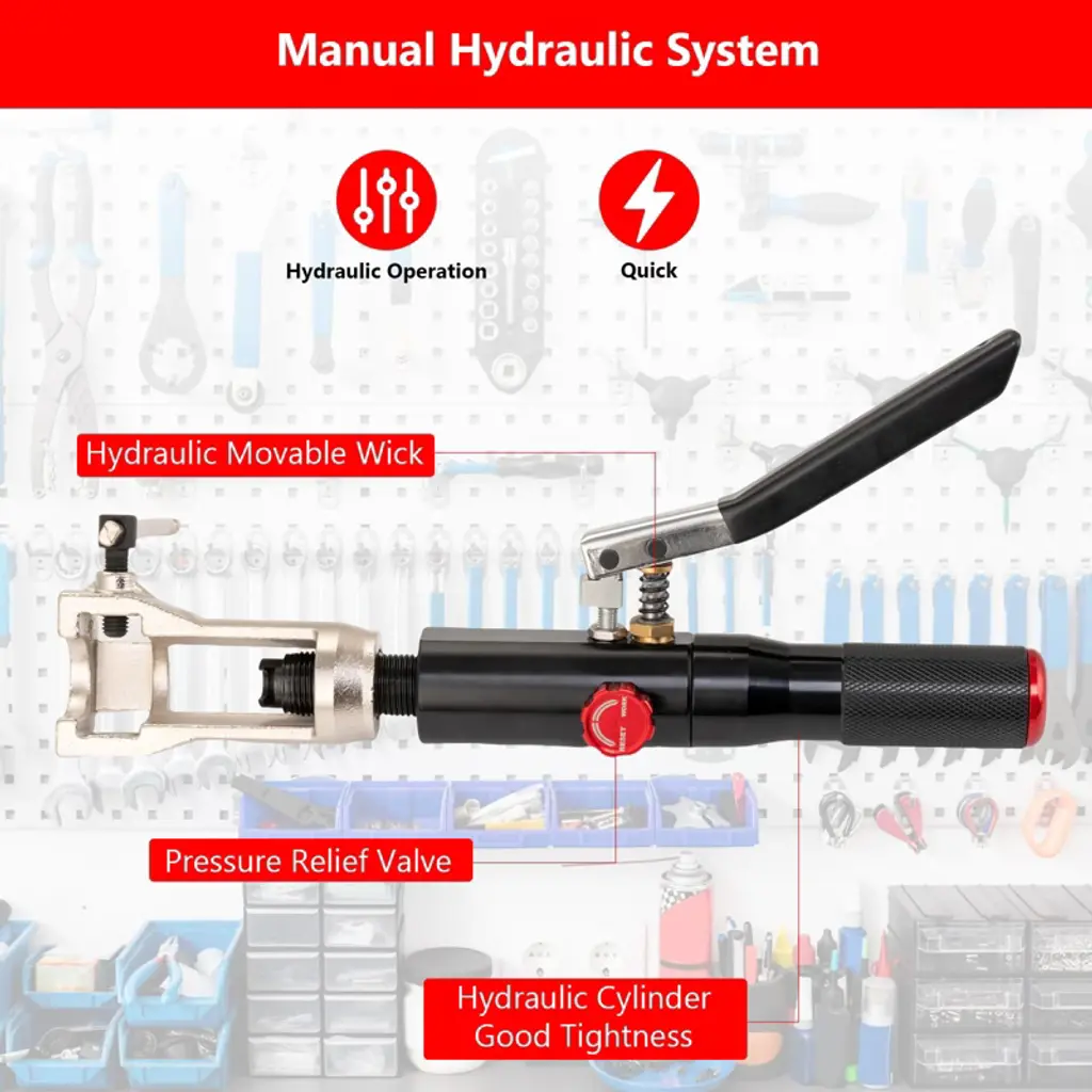 Hydraulic Double Flaring Tool Kit with Tube Cutter for 45¡ã Brake Line and Copper Tube FlaresThis professional-grade hydraulic flaring tool kit is engineered to create precise 45¡ã single flares, double flares, and ISO bubble flares on tubing ranging from 3/16" to 1/2" in diameter. Ideal for automotive brake line repairs, refrigeration systems, and copper fuel or transmission lines, the set includes a hydraulic flaring unit, durable dies and adapters, a tube cutter, and a deburring tool¡ªall housed in a portable plastic case. The hydraulic mechanism ensures effortless operation with a built-in pressure relief valve and leak-free oil cylinder for consistent performance.Key Features:1. Versatile Flaring Capability ¨C Supports 45¡ã single and double flares, ISO bubble flares, and GM-style fuel and transmission line fittings. Includes flaring cones and expanding dies for tubes from 3/16" to 1/2".2. Effortless Hydraulic Operation ¨C The manual hydraulic system requires minimal force to produce perfect flares, featuring a sealed oil cylinder and pressure relief valve for smooth and controlled flaring.3. Integrated Tube Cutter and Deburrer ¨C The included cutter cleanly slices tubes from 1/8" to 5/8", while the deburring tool removes inner and outer burrs for clean, leak-ready tube ends.4. Durable and Portable Design ¨C Constructed from hardened 40 CR steel, the tools resist wear and corrosion. The compact plastic case organizes all components and allows for easy transport.5. Wide Application Range ¨C Suitable for automotive brake lines, copper fuel lines, refrigeration tubing, air conditioning systems, and general repair or fabrication tasks.Specifications:? Material: 40 CR Steel? Flaring Types: 45¡ã Single/Double Flare, ISO Bubble Flare? Compatible Tube Sizes: 3/16" to 1/2"? Included Components: Hydraulic Flaring Unit, Die Set, Adapters, Tube Cutter, Deburring Tool? Storage: Plastic Toolbox? Use Cases: Brake Lines, Copper Tubing, Refrigeration, AC Systems