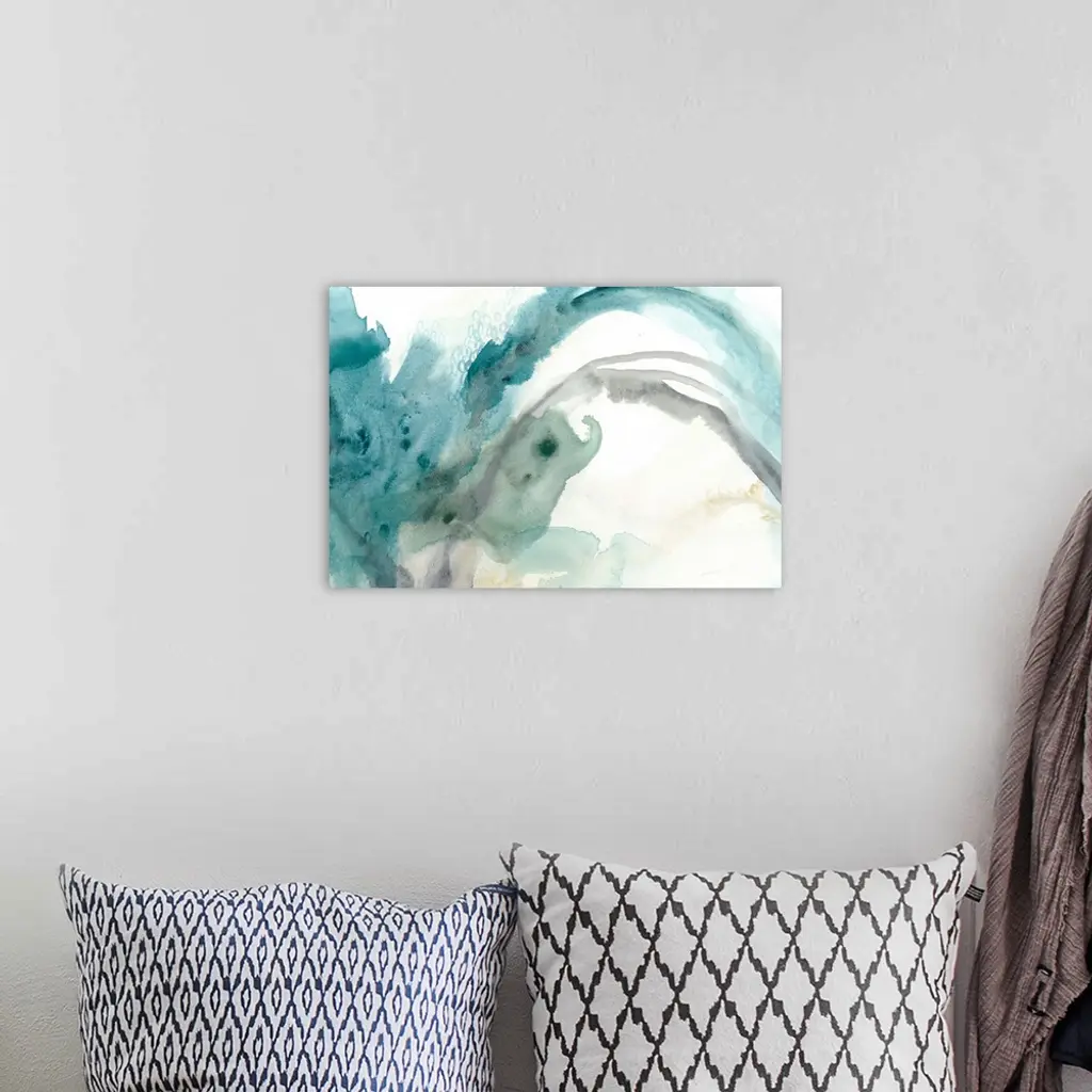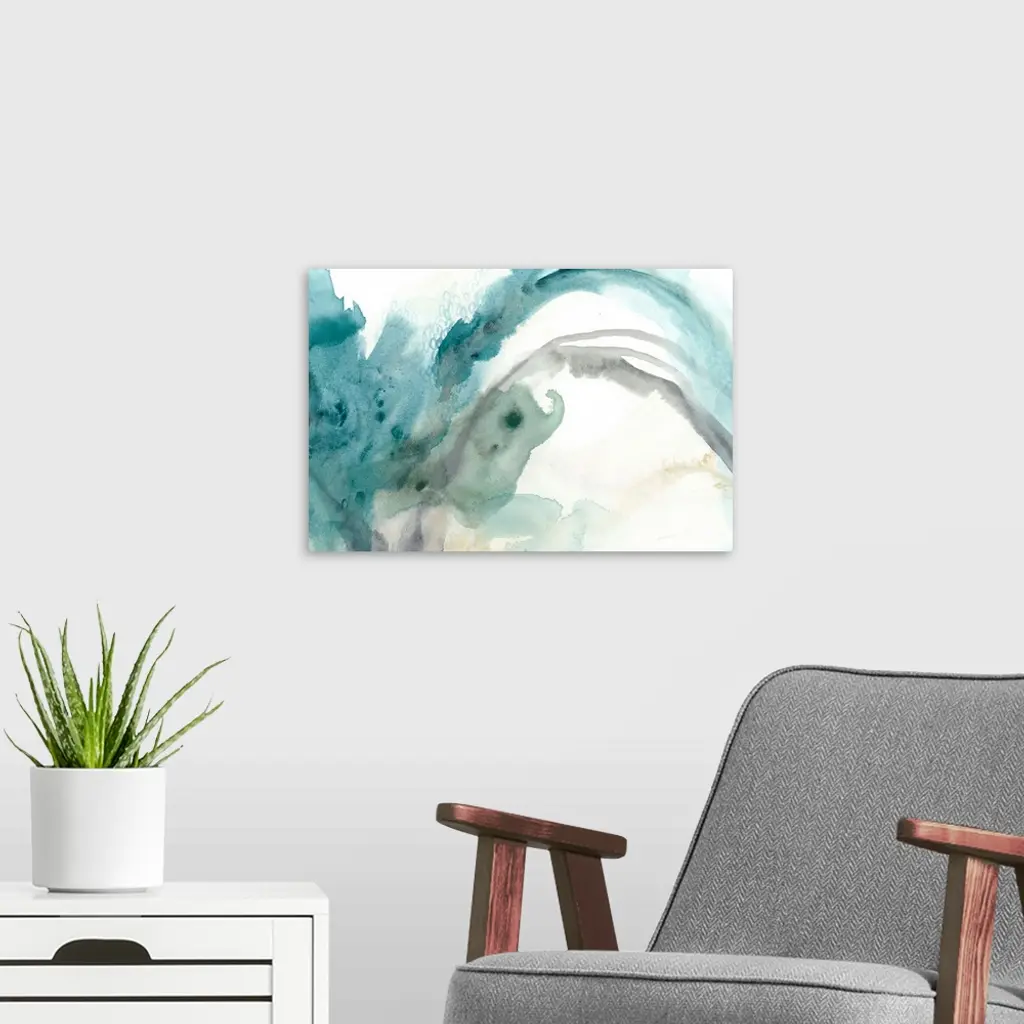 Pale blue watercolor abstract, reminiscent of flowing water.