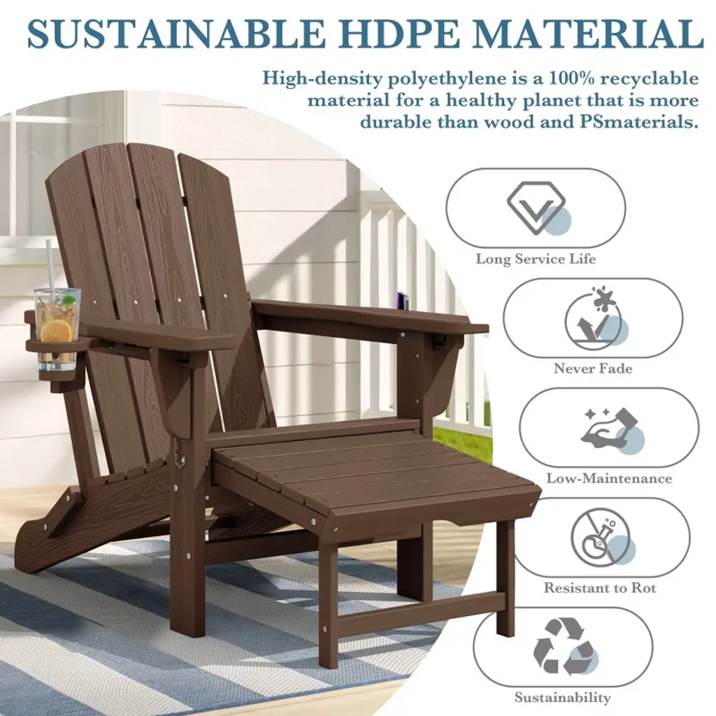 Experience ultimate relaxation with our 3-Level Adjustable Patio Accent Chair, featuring a retractable ottoman for extended comfort. Made from durable HDPE material, this chair is designed to withstand various weather conditions while providing a stylish addition to your outdoor space. Enjoy your favorite beverages and stay connected with our convenient cup and phone holders. Whether you're lounging by the pool, in your garden, or on your balcony, this chair offers the perfect blend of comfort and functionality.