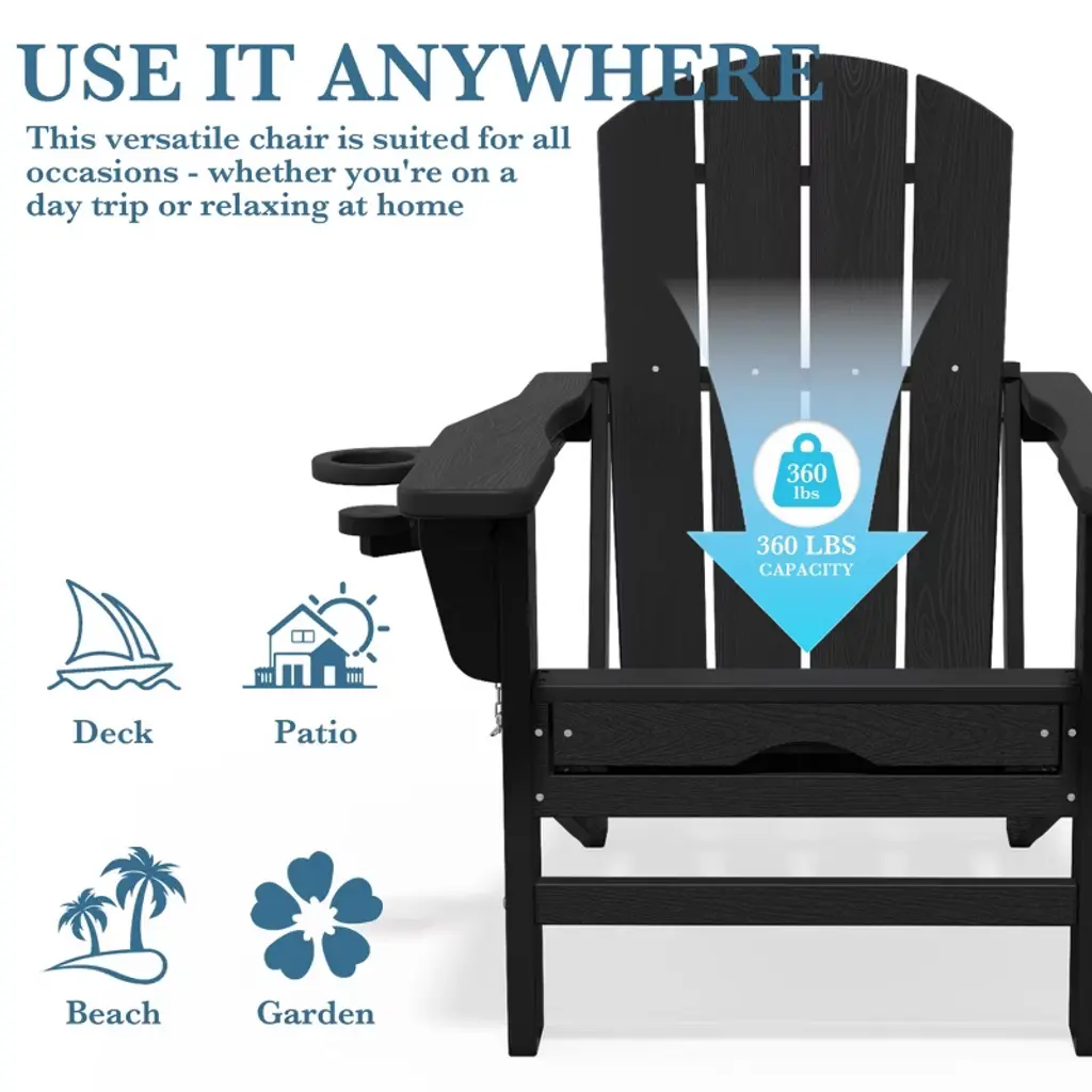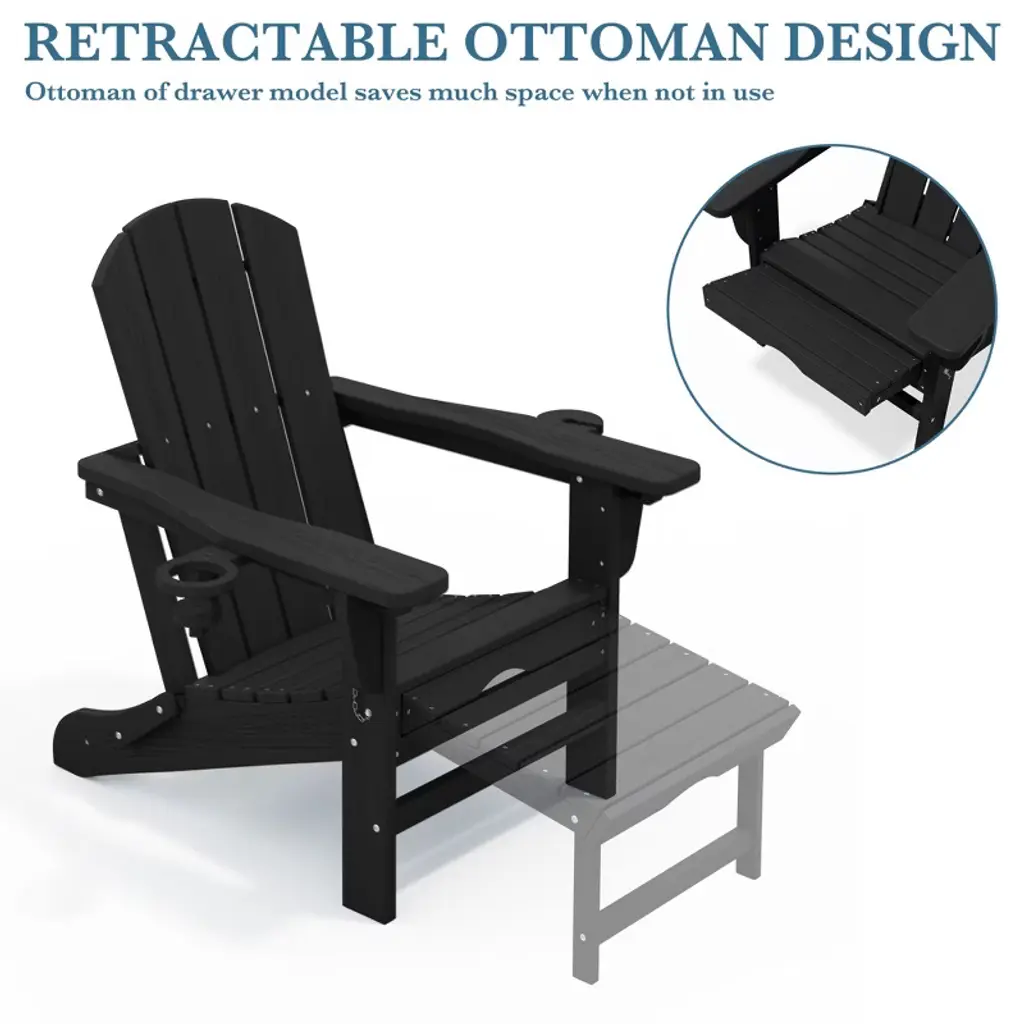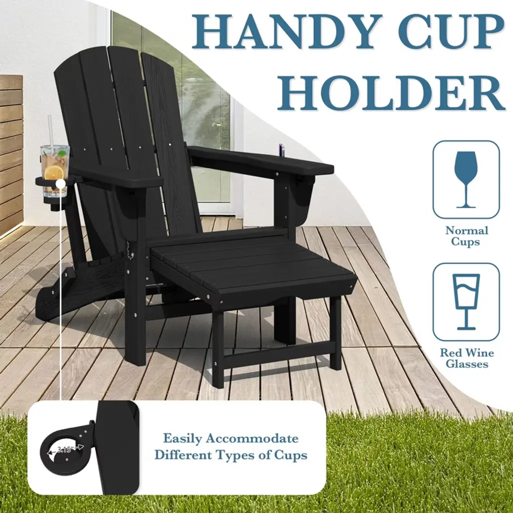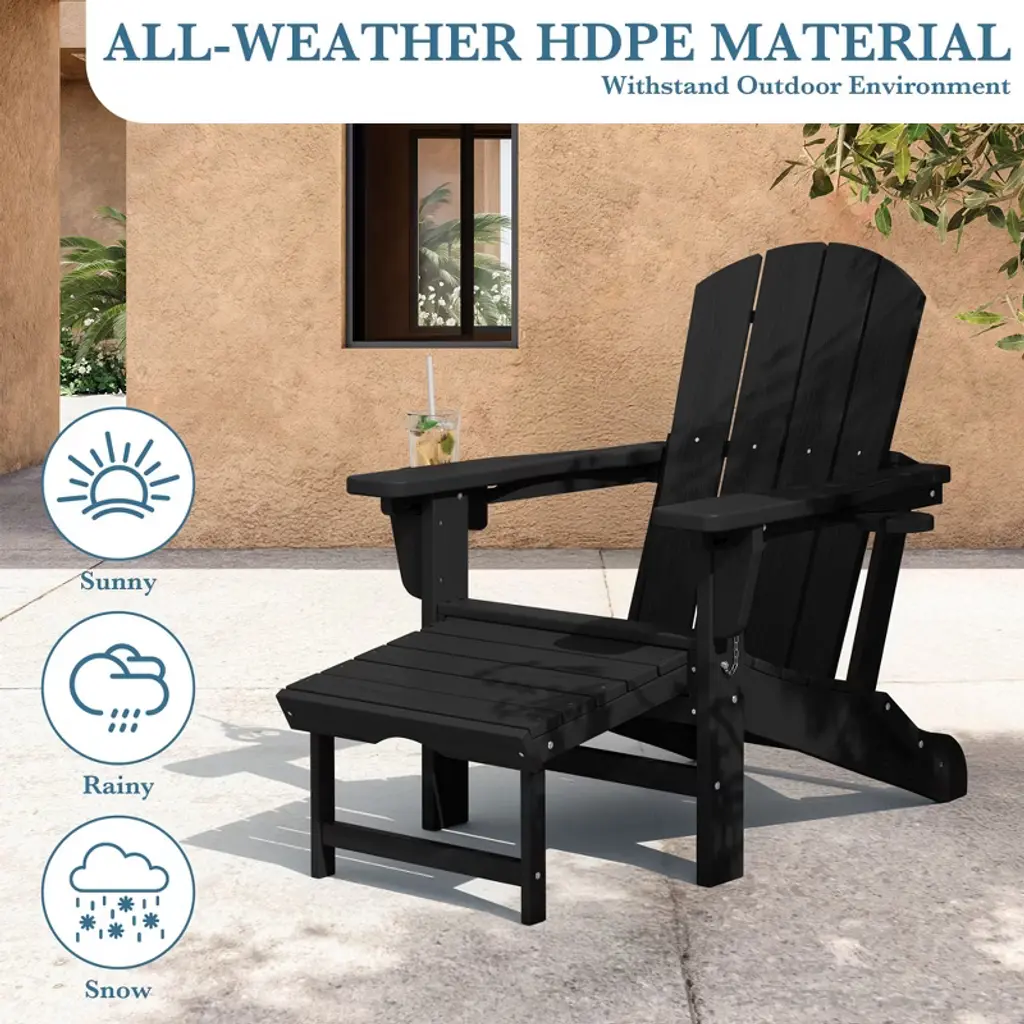 Experience ultimate relaxation with our 3-Level Adjustable Patio Accent Chair, featuring a retractable ottoman for extended comfort. Made from durable HDPE material, this chair is designed to withstand various weather conditions while providing a stylish addition to your outdoor space. Enjoy your favorite beverages and stay connected with our convenient cup and phone holders. Whether you're lounging by the pool, in your garden, or on your balcony, this chair offers the perfect blend of comfort and functionality.