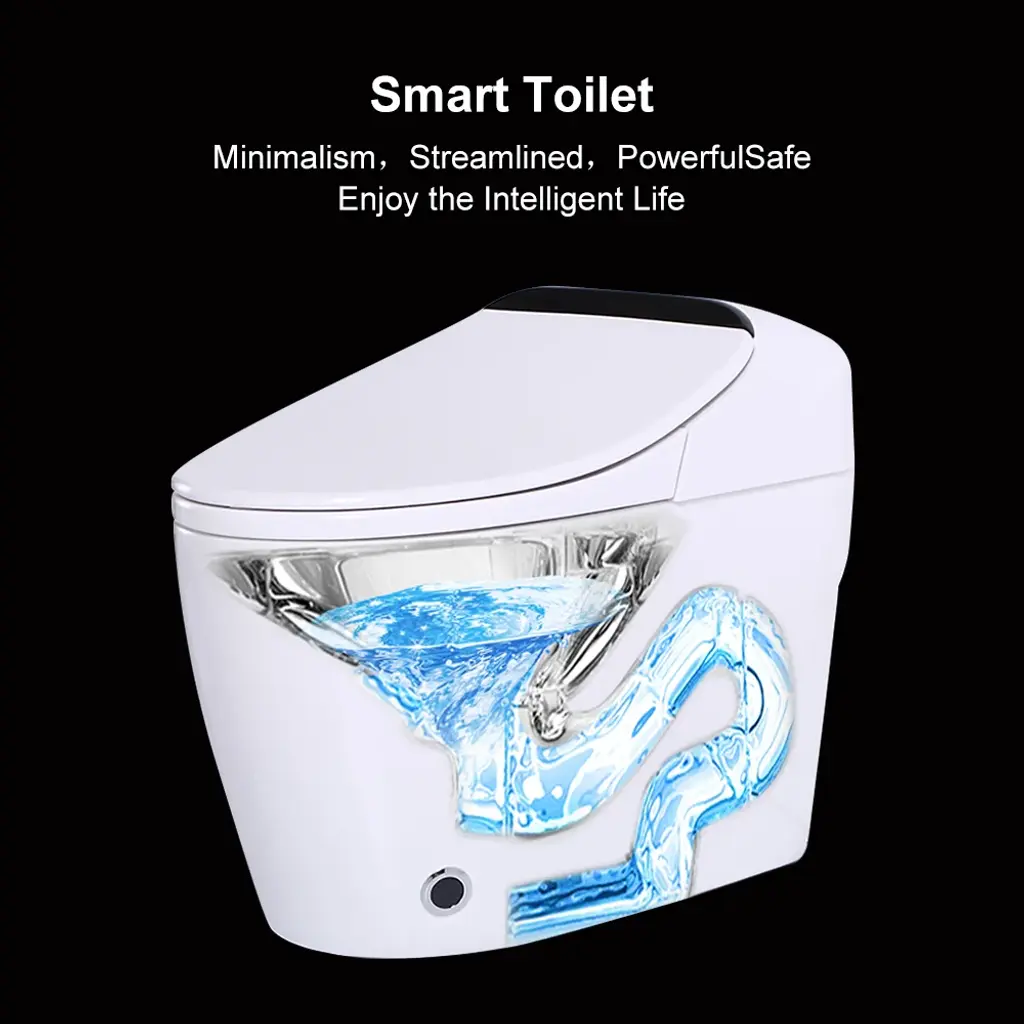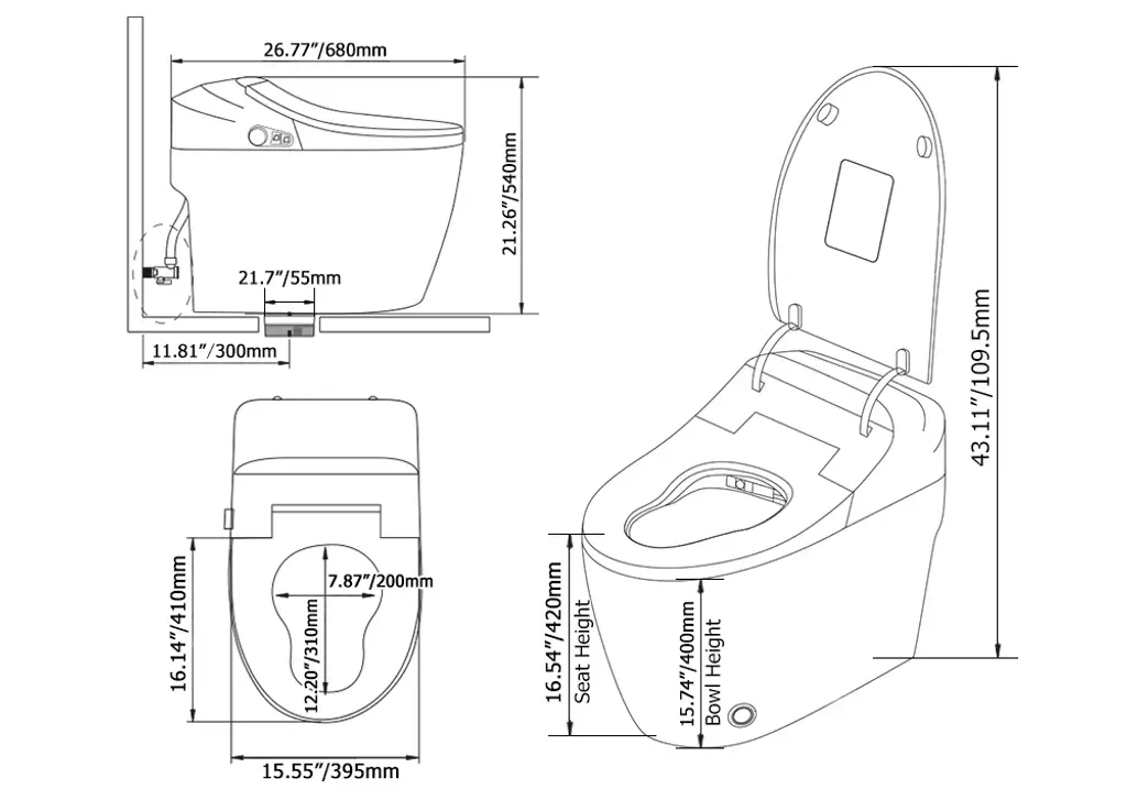 Minimalist modern design: white & black elongated smart toilet, clean, sleek look and compliment with different styles like modern, craftsman, traditional and etc.