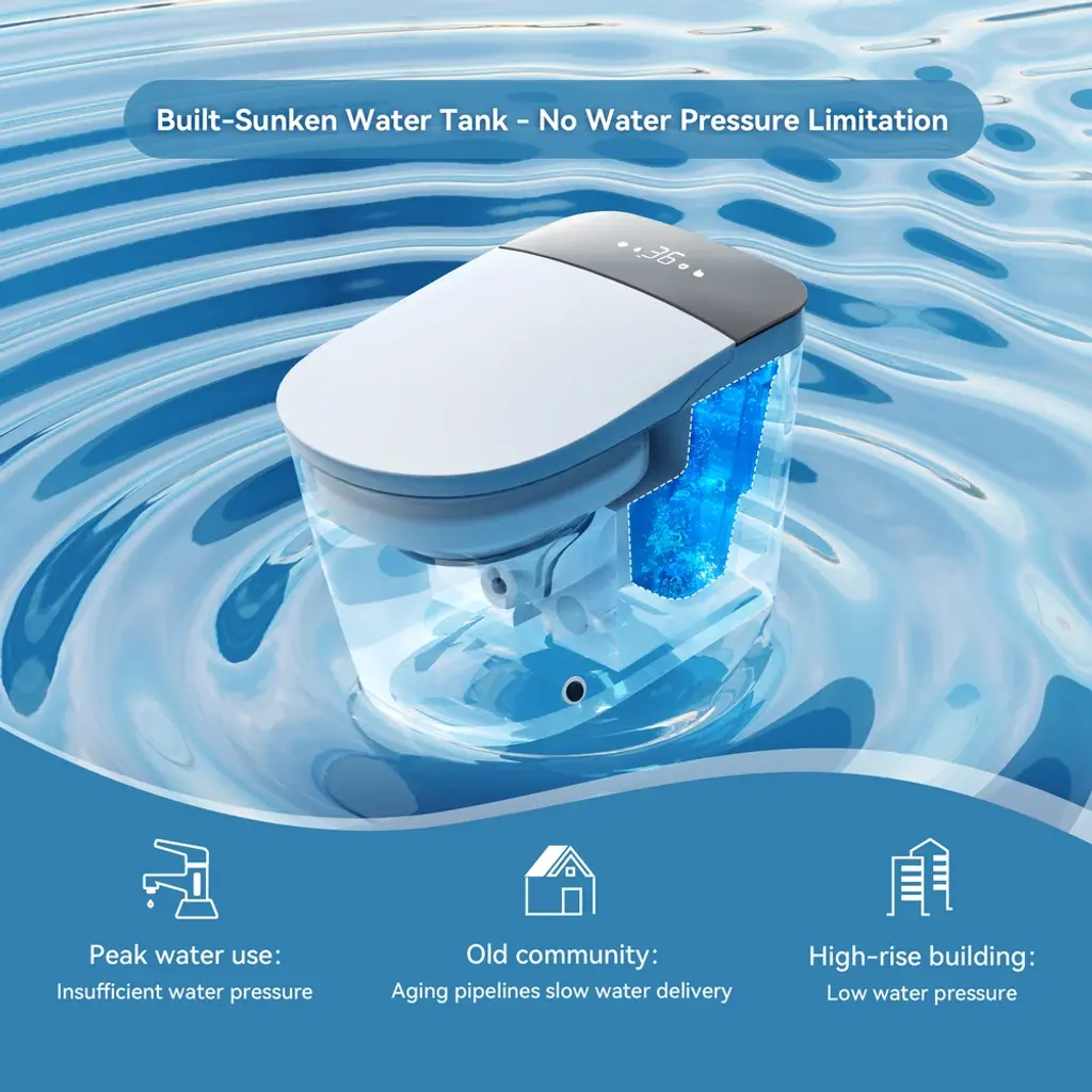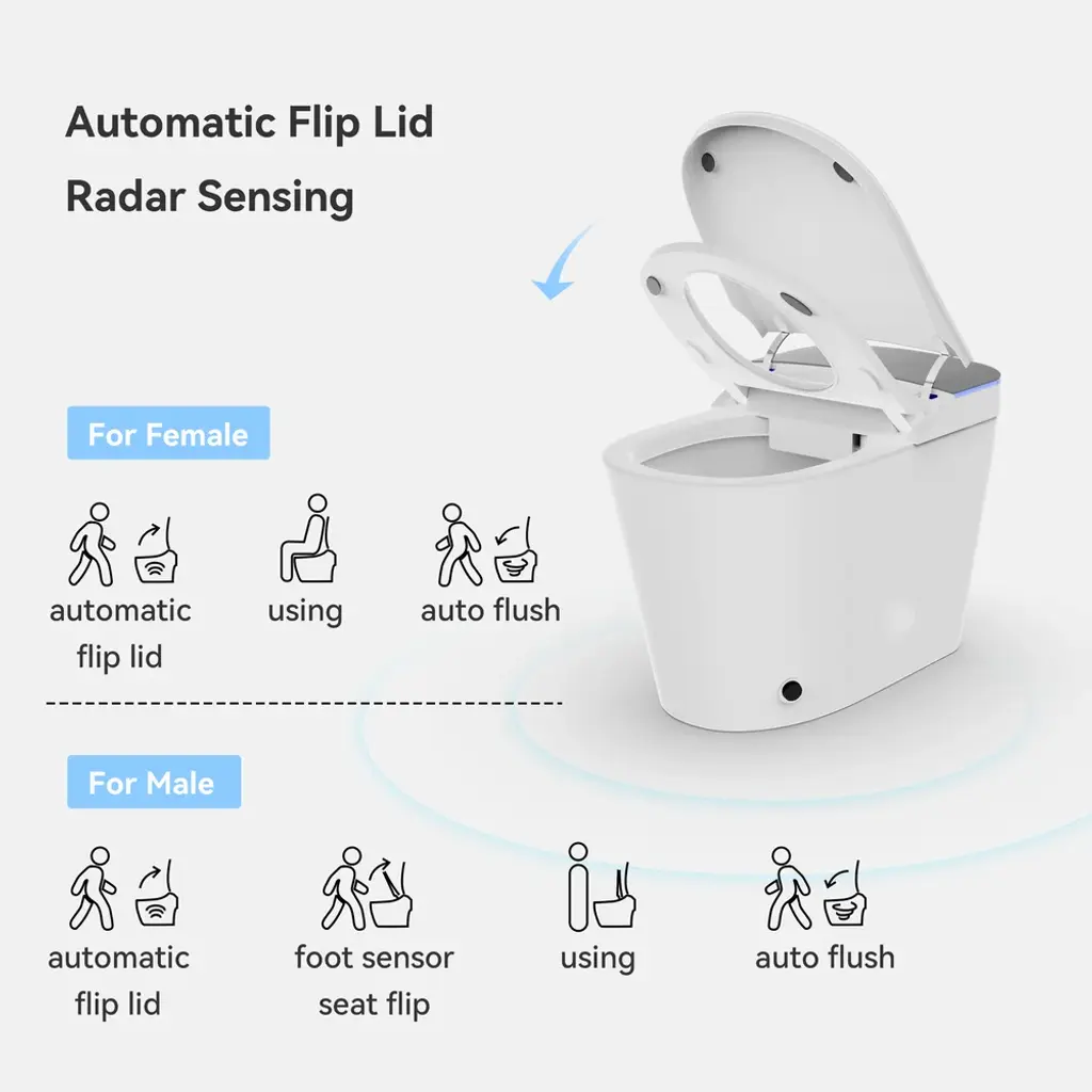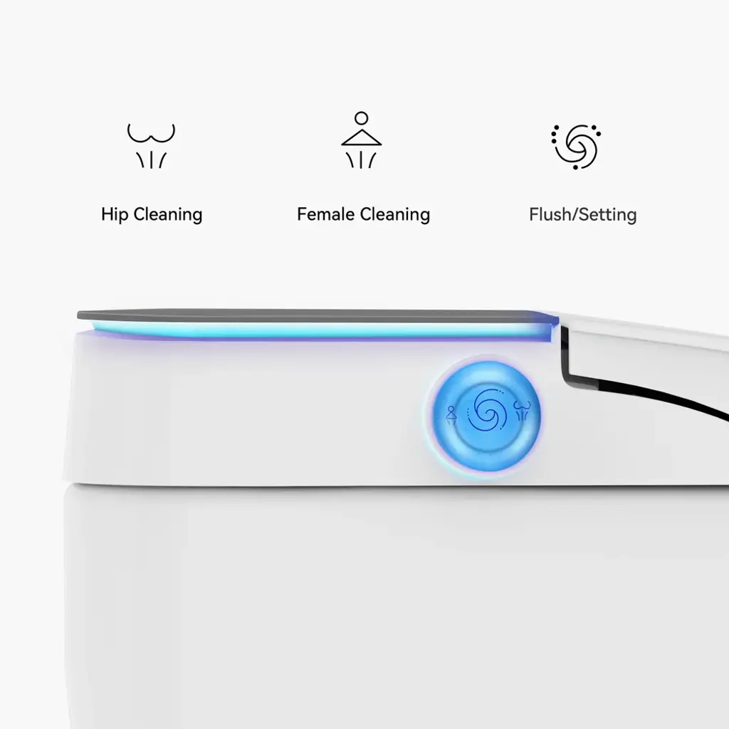 Upgrade your bathroom with this ADA-compliant smart bidet toilet featuring a built-in tank and dual flush system. The heated seat, foam shield, auto open lid, UV sanitisation, and warm dryer deliver everyday comfort, while adjustable water settings ensure a personalised and hygienic experience.