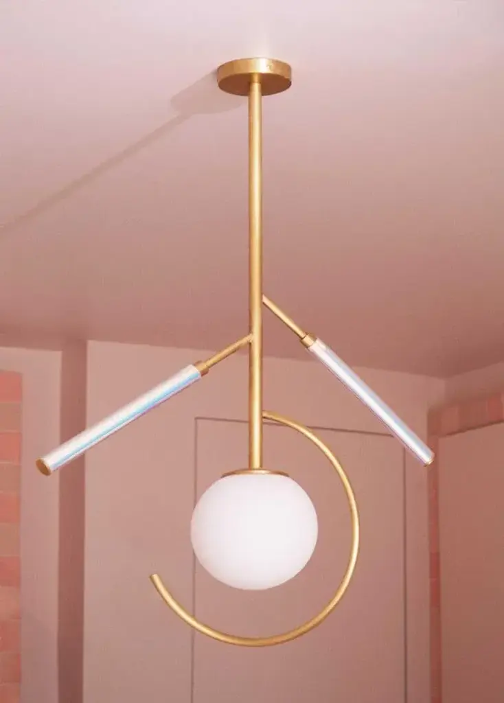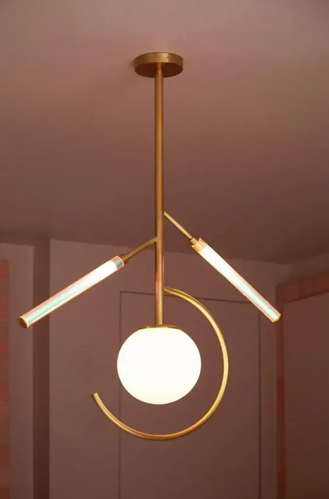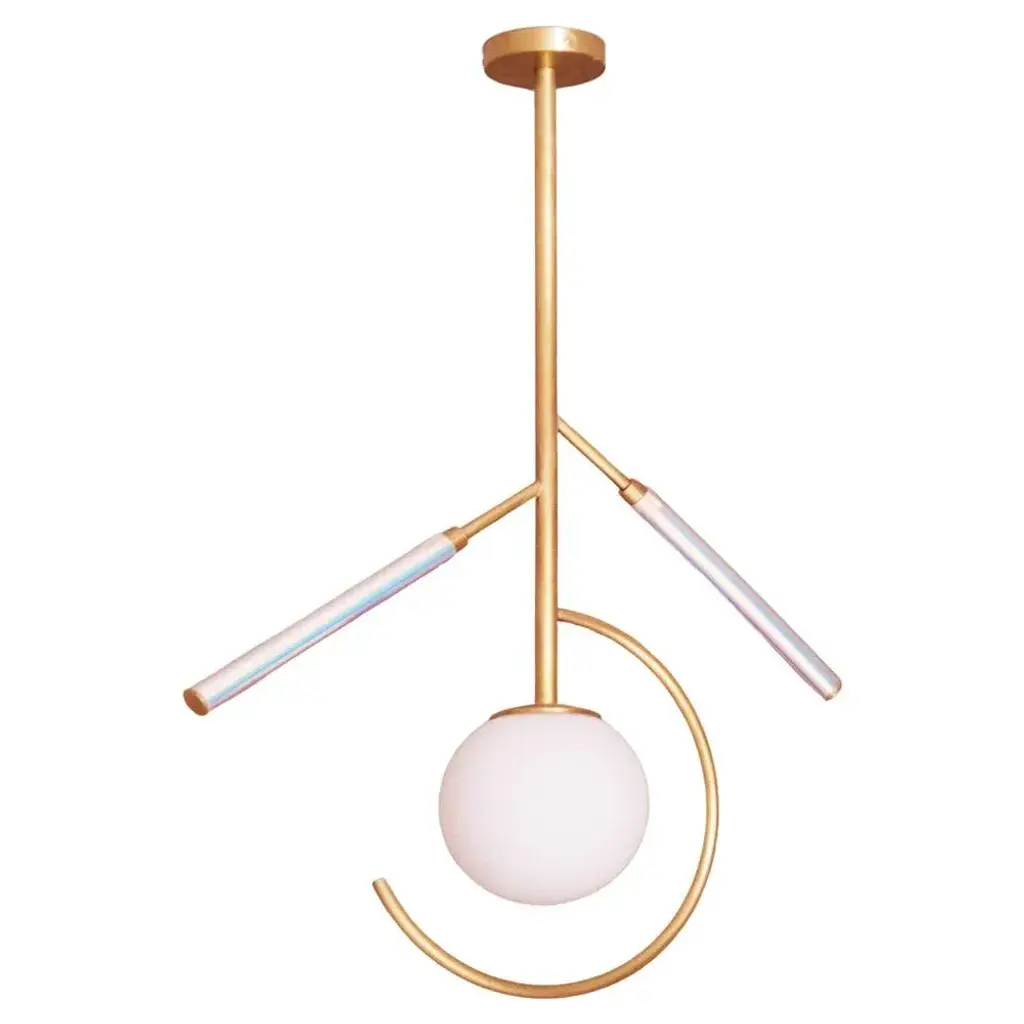 Hype pendant lamp by patricia bustos de la torre dimensions: d 20 x w 75 x h 101 cm. Materials: white opal glass, transparent methacrylate tubes, iridescent vinyl and brass. “hype” lamp is an exciting and vitaminic jewel that combines fluorescents in iridescent finish. You can play with the materials and with the colors of the light generating infinite possibilities. It is a ceiling lamp with brass structure of 20mm, and opal white globes of 200mm diameter, with transparent methacrylate tubes with brass caps and inside with an iridescent vinyl. All our lamps can be wired according to each country. If sold to the usa it will be wired for the usa for instance. Please contact us. Patricia bustos is an internationally renowned spanish artist known for her work designing utopian pieces and spaces. Her creative gaze becomes an act of rebellion and her projects are full of a disruptive narratives that evolves with social trends. Her work is imbued with deep meaning because of her endless curiosity for the human being and its concerns such philosophy, language, architecture, art and nature. Her objects are handcrafted and aim to become cult pieces. Her work seeks to evoke aesthetic emotion trough a unique story behind every design. That is why wonder is the cornerstone of her work. The indelible memory that inspires us eternally comes from wonder. Through a bold use of color and an unexpected combination of shapes and materials, she is looking for contrast. Her pieces are distinguished by translucent or reflective elements juxtaposed with handmade or raw materials. As a result, her proposal achieves an atypical and fascinating balance at the same time. In her own words: "the purest beauty lies at the boundary between craftsmanship and utopia". up to 250v (europe/uk standard).