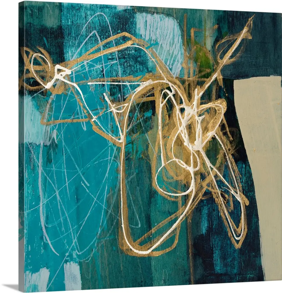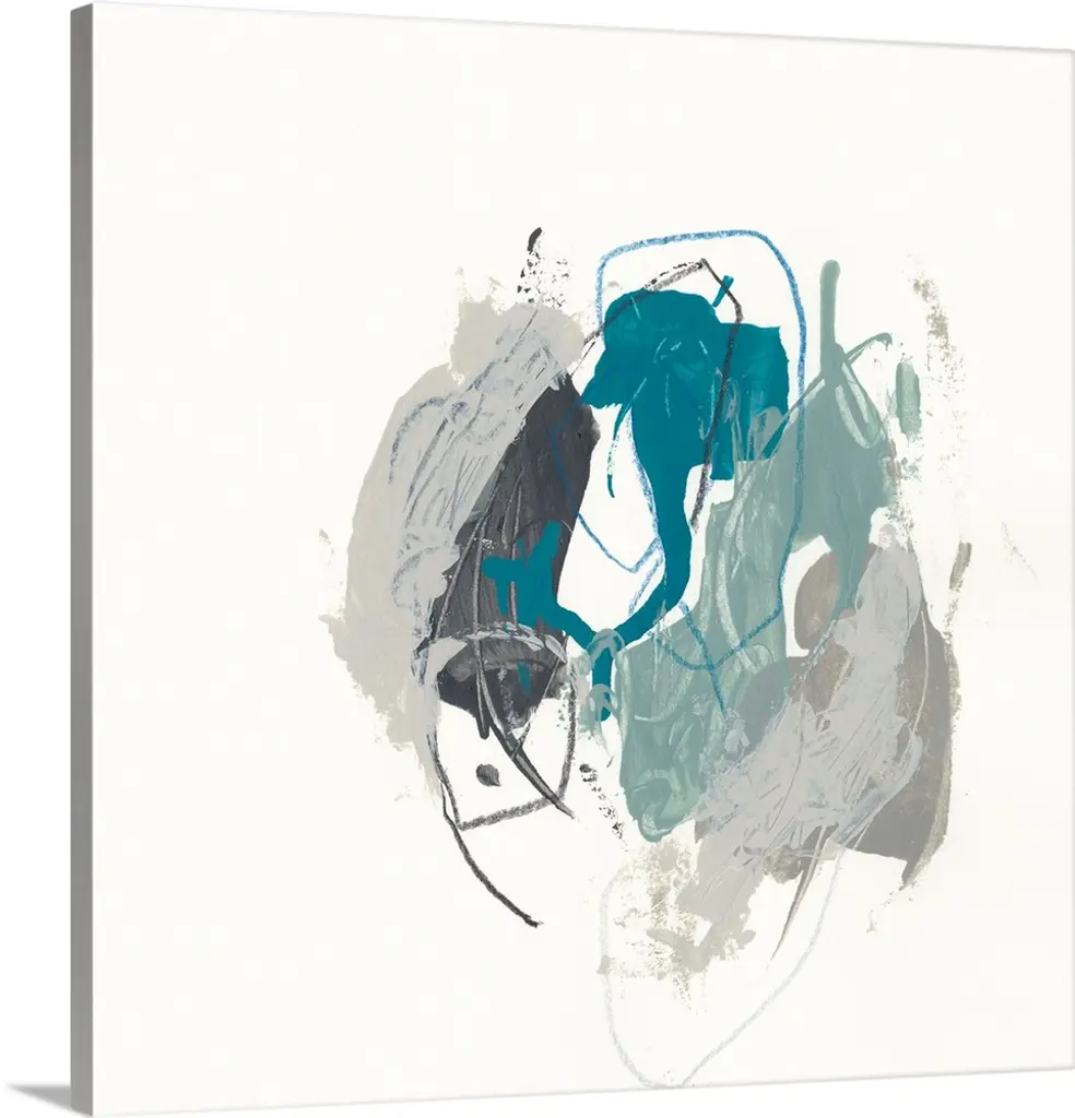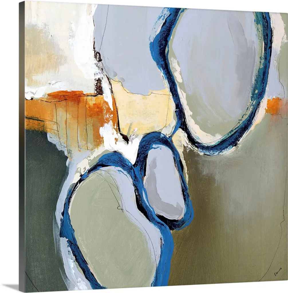 Abstract art of three large circles that are vertically stacked, surrounded by swirling scribbles and brush strokes in varying thicknesses, on a light neutral background.