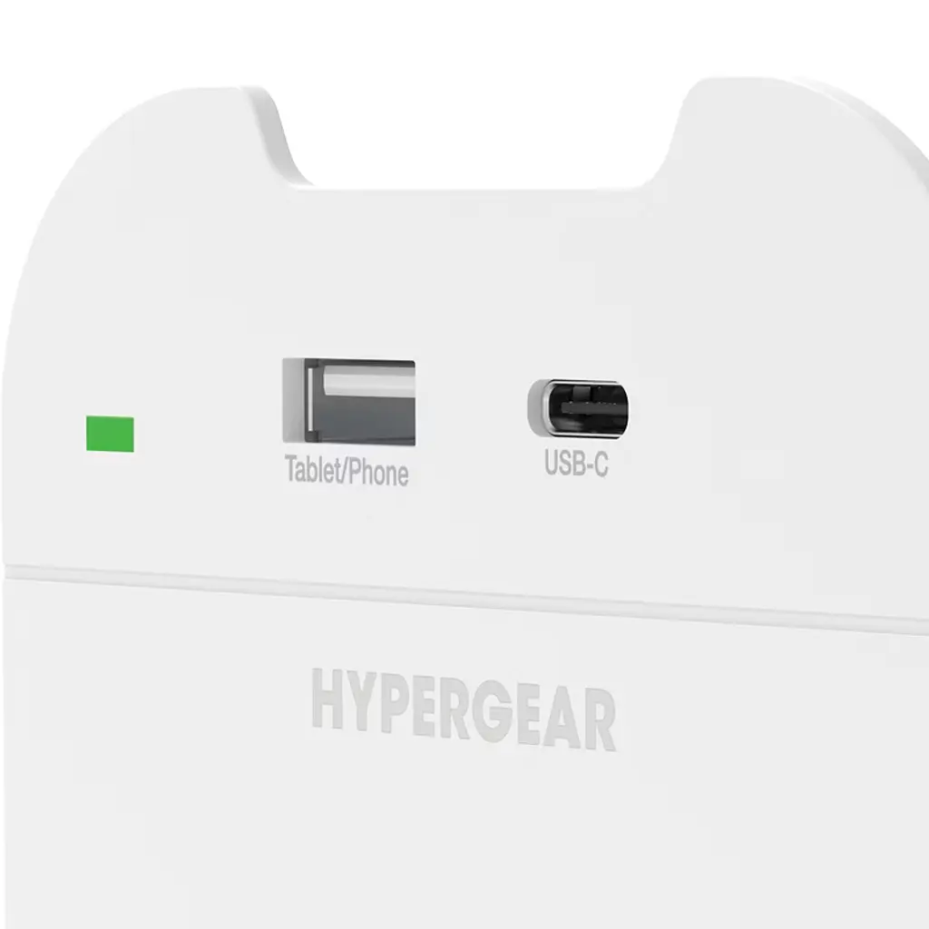 Save space and organize! Power 5 devices at once thanks to the HyperGear® Multi-Plug Outlet Extender. Get a USB-C® port, a USB port, and 3 AC outlets. This unit has universal capability with a USB-C® and USB Fast Charge. Living room, bedroom, office — these places all have 1 thing in common: there are never enough power outlets where you need them. Instead of running power cords all over the room, plug in the Multi Plug and instantly turn 1 outlet into a 5-device power hub. The 3 grounded AC outlets keep your electronics powered all in 1 convenient spot, while the USB-C® and USB ports let you charge your mobile devices at high speed without wasting valuable outlets on USB chargers. With its low profile and compact, wall-hugging design, it’s the ideal way to save space, organize, and make 1 outlet do it all.