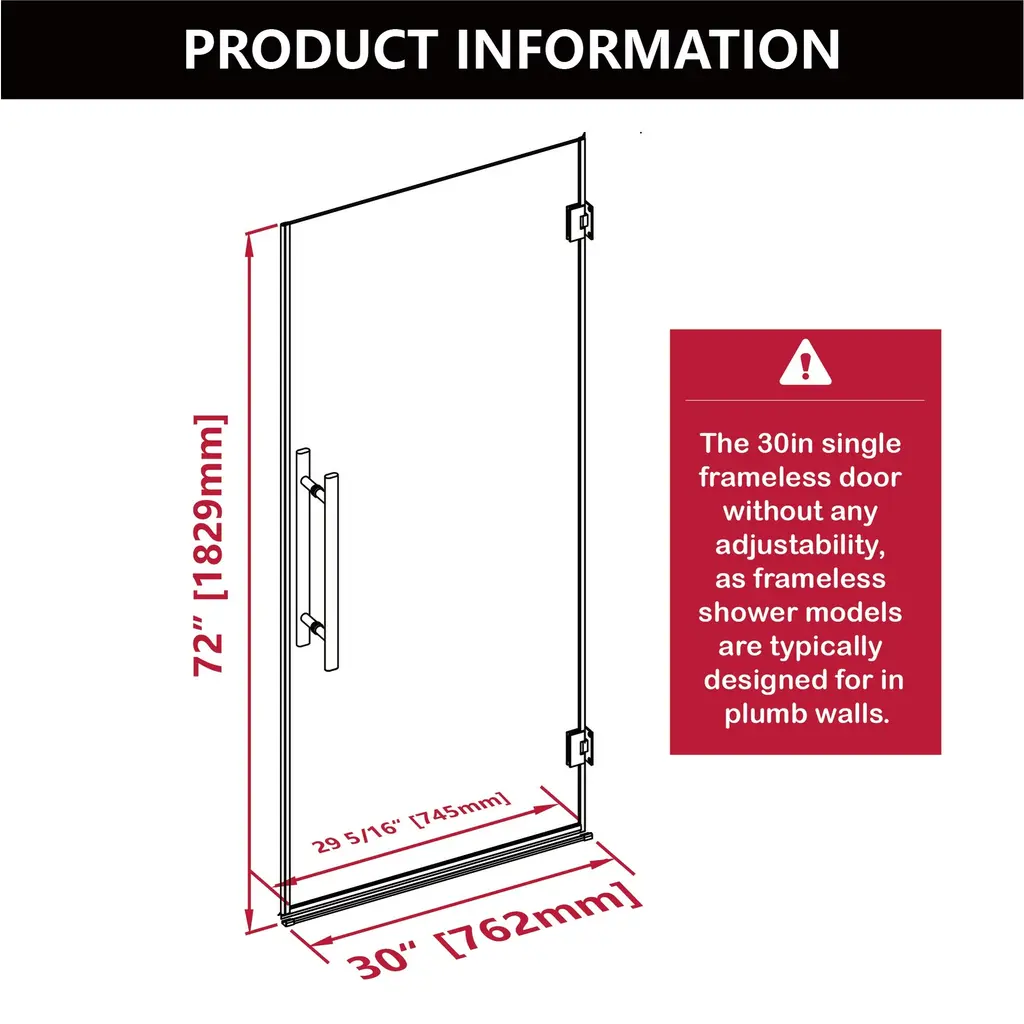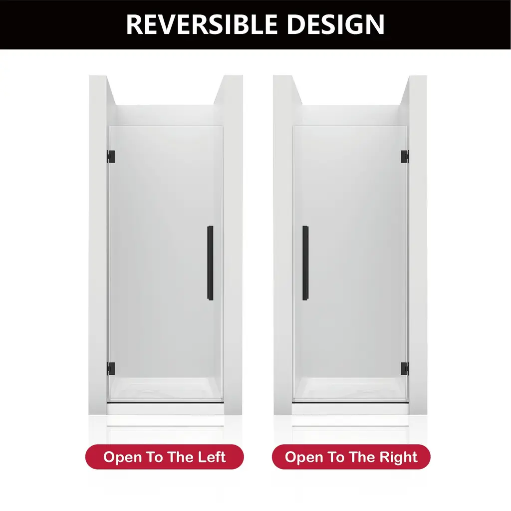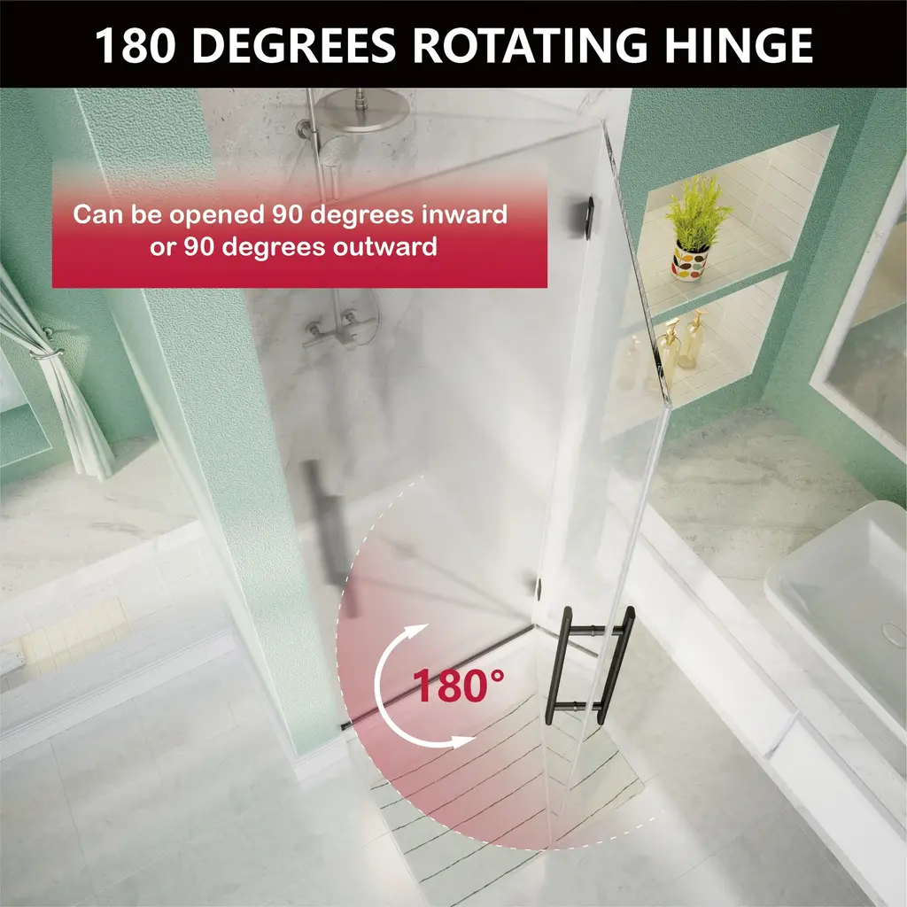 Introducing our sleek and modern shower door:Embrace a minimalist bathroom style with our frameless pivot shower door. Its reversible design allows for seamless left or right door installation, ensuring a perfect fit every time. Enhanced by waterproof sealing strips, it excels in maintaining dry and wet separation, providing exceptional water resistance.Crafted from high-quality materials, this door is not only durable but also easy to maintain. Its frameless pivot design ensures smooth operation with effortless sliding, offering a quiet and noise-free experience. The 5/16" (8mm) glass is ANSI and SGCC certified, featuring an easy-clean coating to resist water stains and soap buildup, ensuring clarity and cleanliness.Elevate your shower experience with our precision-engineered, stylish solution that combines functionality with elegance.Features:☀ Available colors: Matt Black☀ Corner Shower Enclosure Size: 30” W x 72” H☀ Hinges can rotate 180 degrees and swing 90 degrees inward and outward, allowing doors to swing inward to save space.☀ 5/16 ” (8mm) tempered frosted glass, ANSI certified and SGCC certified.☀ Reversible design allows for both right or left door opening installation to accommodate any bathroom layout.☀ Two handles, the back-to-back handle design is convenient for you to hang your clothes and towels.☀ Glass coating technology prevents soap scum and dirt, easy to clean.☀ The sealing strips provide excellent leakage prevention.☀ Smooth sliding with a quiet design.☀ Fits snugly in bathroom corners, saving space.☀ Installation: With installation instructions and include all installation accessories, easy to install.