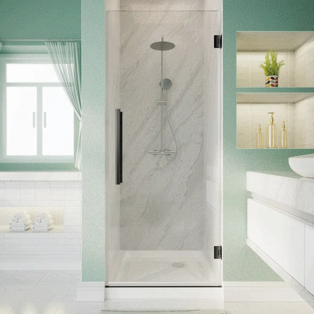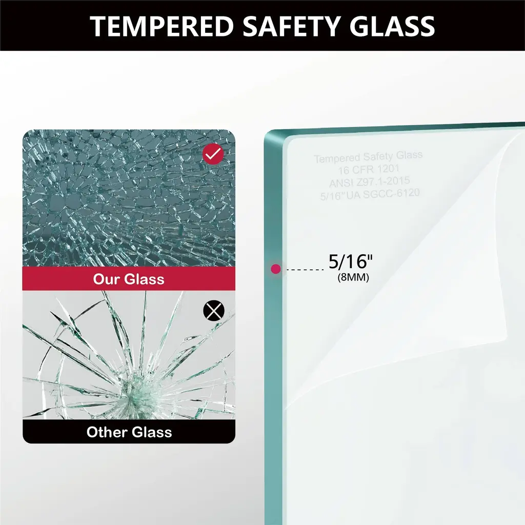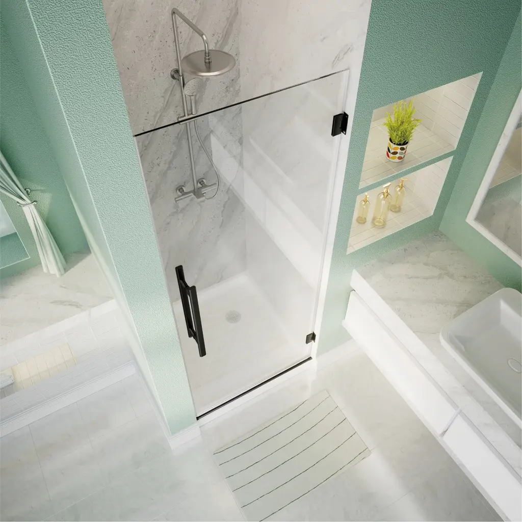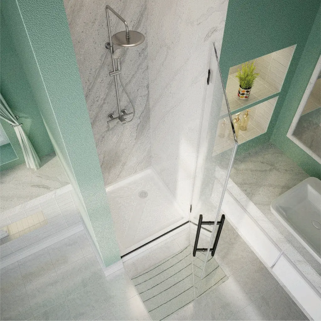 Introducing our sleek and modern shower door:Embrace a minimalist bathroom style with our frameless pivot shower door. Its reversible design allows for seamless left or right door installation, ensuring a perfect fit every time. Enhanced by waterproof sealing strips, it excels in maintaining dry and wet separation, providing exceptional water resistance.Crafted from high-quality materials, this door is not only durable but also easy to maintain. Its frameless pivot design ensures smooth operation with effortless sliding, offering a quiet and noise-free experience. The 5/16" (8mm) glass is ANSI and SGCC certified, featuring an easy-clean coating to resist water stains and soap buildup, ensuring clarity and cleanliness.Elevate your shower experience with our precision-engineered, stylish solution that combines functionality with elegance.Features:☀ Available colors: Matt Black☀ Corner Shower Enclosure Size: 30” W x 72” H☀ Hinges can rotate 180 degrees and swing 90 degrees inward and outward, allowing doors to swing inward to save space.☀ 5/16 ” (8mm) tempered frosted glass, ANSI certified and SGCC certified.☀ Reversible design allows for both right or left door opening installation to accommodate any bathroom layout.☀ Two handles, the back-to-back handle design is convenient for you to hang your clothes and towels.☀ Glass coating technology prevents soap scum and dirt, easy to clean.☀ The sealing strips provide excellent leakage prevention.☀ Smooth sliding with a quiet design.☀ Fits snugly in bathroom corners, saving space.☀ Installation: With installation instructions and include all installation accessories, easy to install.