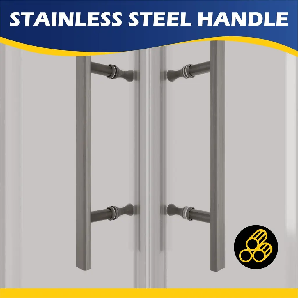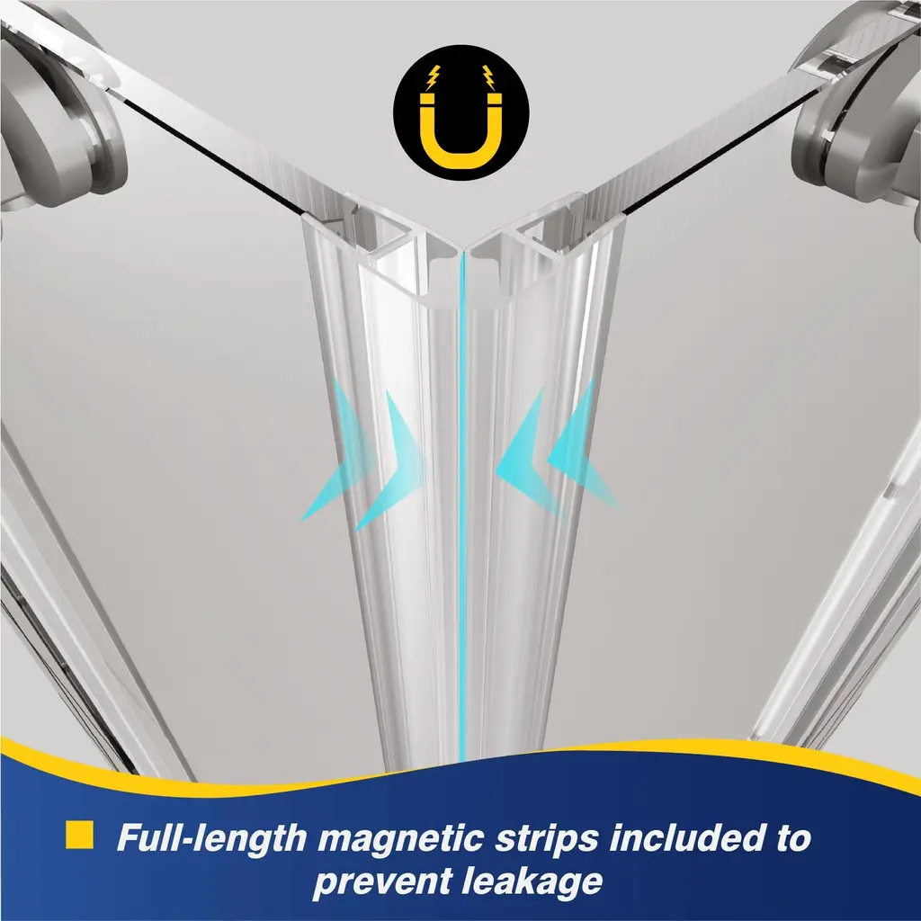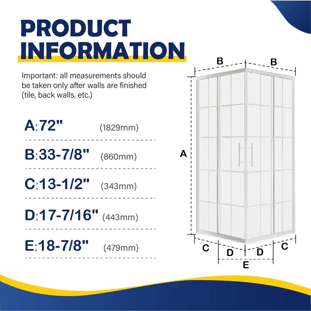Experience the perfect blend of modern design and functionality with our sleek corner shower enclosure. Crafted to elevate your showering experience, this enclosure operates smoothly and quietly, offering the ultimate in comfort and tranquility. With 1/4 inch (6mm) coated glass, certified by ANSI and SGCC, it resists water stains and soap buildup, making it easy to maintain. The innovative Quick Release Bottom Rollers allow for simple removal and cleaning, while the adjustable range of up to 0.6 inches (15mm) on each side ensures a custom fit for your bathroom. A true embodiment of elegance and convenience, this shower enclosure is the ideal choice for those who appreciate both style and practicality in their home. Treat yourself to a superior shower experience that’s as easy to care for as it is beautiful.Features:☀ Available Colors: Matte Black, Brushed Nickel☀ Size: Corner Shower Enclosure Size: 36 in. D x 36 in. W x 72 in. H☀ Easy-to-Clean Glass Coating: Special glass coating prevents soap scum and dirt buildup, making it effortless to clean☀ Premium Glass: 1/4 inch (6mm) tempered clear glass, ANSI and SGCC certified for safety and durability☀ Leak-Proof Sealing Strips: Sealing strips provide excellent leakage prevention and enhanced waterproofing☀ Smooth & Quiet Operation: Smooth, quiet sliding design for a serene shower experience☀ Customizable Fit: Adjustable width of up to 0.6 inches on each side for a perfect, custom fit☀ Space-Saving Design: Optimized for corner installation, maximizing space in your bathroom☀ Ergonomic Handles: 2 sliding shower doors with ergonomic long glass handle bars for added convenience☀ Hassle-Free Installation: Easy-to-follow installation instructions for quick setup☀ Warranty Assurance: Backed by a warranty for peace of mind