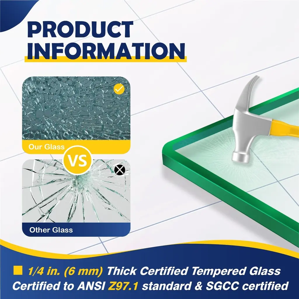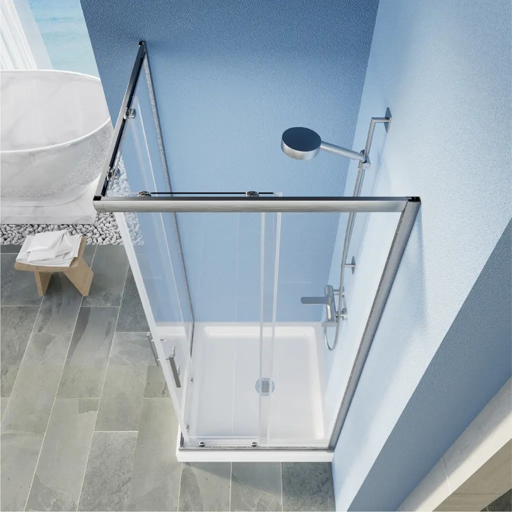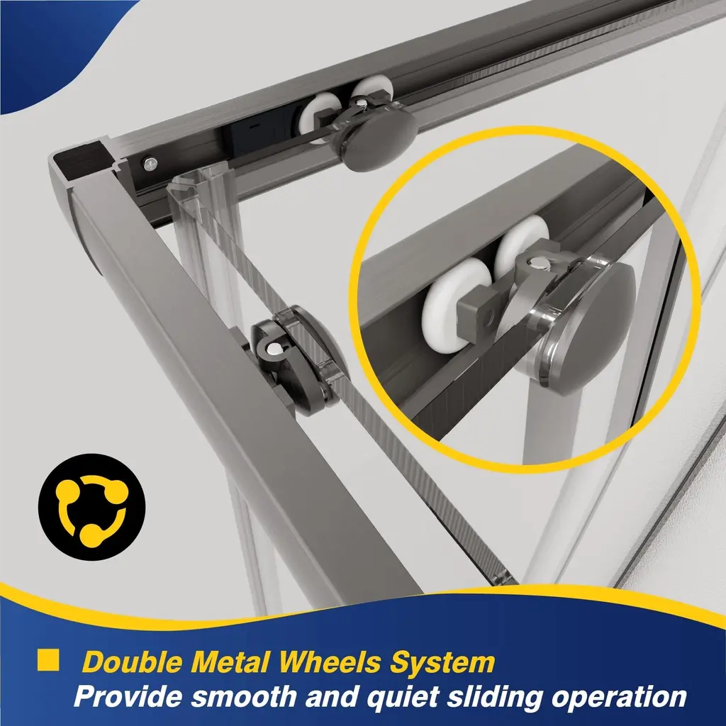 Experience the perfect blend of modern design and functionality with our sleek corner shower enclosure. Crafted to elevate your showering experience, this enclosure operates smoothly and quietly, offering the ultimate in comfort and tranquility. With 1/4 inch (6mm) coated glass, certified by ANSI and SGCC, it resists water stains and soap buildup, making it easy to maintain. The innovative Quick Release Bottom Rollers allow for simple removal and cleaning, while the adjustable range of up to 0.6 inches (15mm) on each side ensures a custom fit for your bathroom. A true embodiment of elegance and convenience, this shower enclosure is the ideal choice for those who appreciate both style and practicality in their home. Treat yourself to a superior shower experience that’s as easy to care for as it is beautiful.Features:☀ Available Colors: Matte Black, Brushed Nickel☀ Size: Corner Shower Enclosure Size: 36 in. D x 36 in. W x 72 in. H☀ Easy-to-Clean Glass Coating: Special glass coating prevents soap scum and dirt buildup, making it effortless to clean☀ Premium Glass: 1/4 inch (6mm) tempered clear glass, ANSI and SGCC certified for safety and durability☀ Leak-Proof Sealing Strips: Sealing strips provide excellent leakage prevention and enhanced waterproofing☀ Smooth & Quiet Operation: Smooth, quiet sliding design for a serene shower experience☀ Customizable Fit: Adjustable width of up to 0.6 inches on each side for a perfect, custom fit☀ Space-Saving Design: Optimized for corner installation, maximizing space in your bathroom☀ Ergonomic Handles: 2 sliding shower doors with ergonomic long glass handle bars for added convenience☀ Hassle-Free Installation: Easy-to-follow installation instructions for quick setup☀ Warranty Assurance: Backed by a warranty for peace of mind
