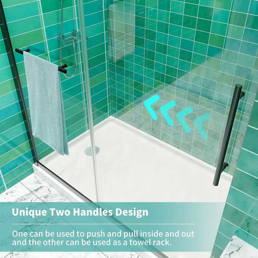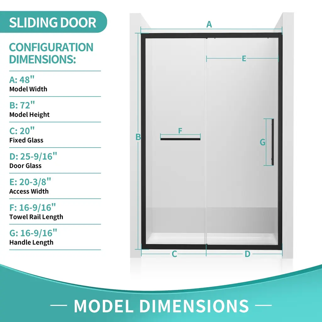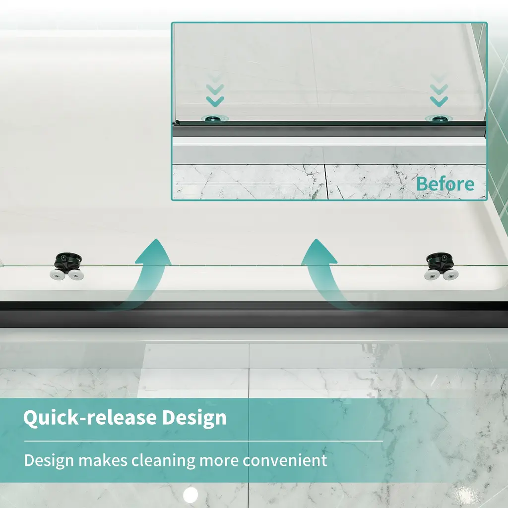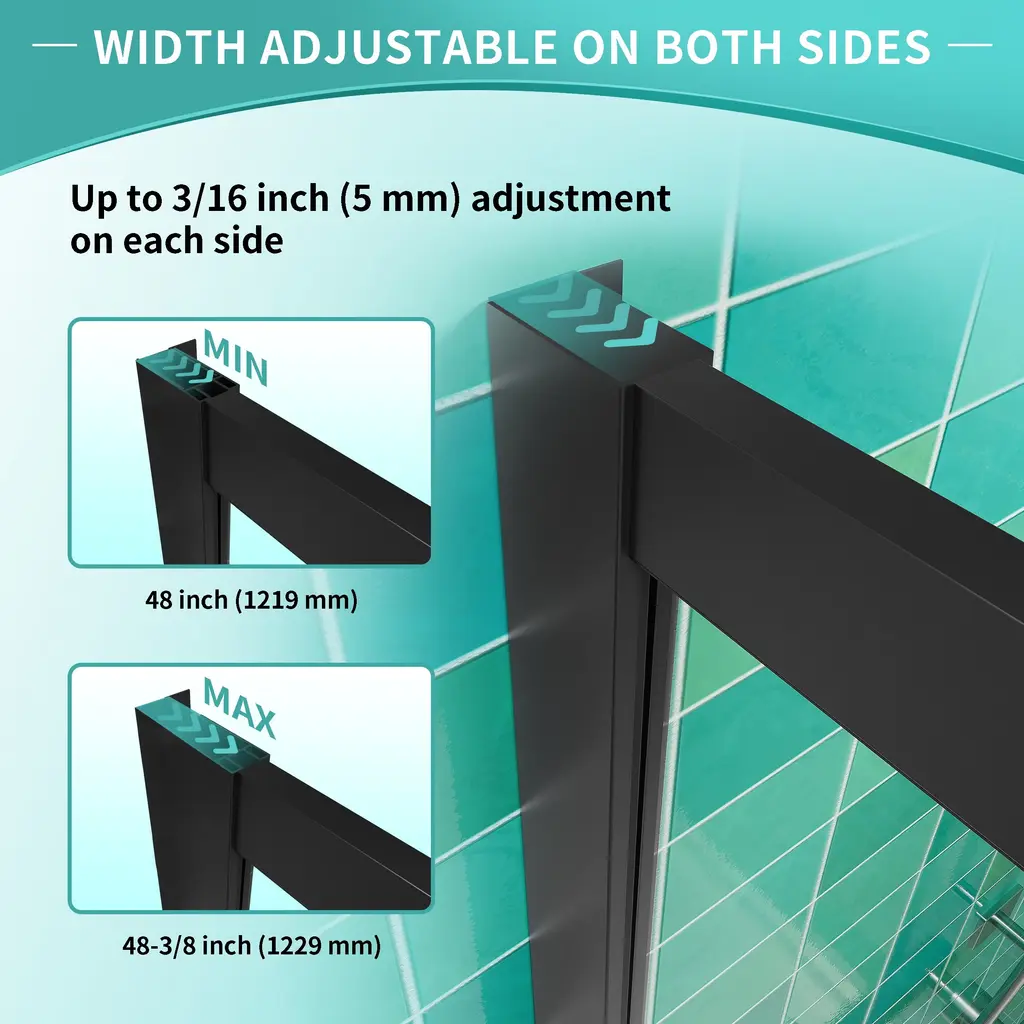 Transform your bathroom with the i-Homare Semi-Frameless Sliding Shower Door, designed for both style and convenience. The 48 x 72-inch door features a sleek, frameless design with adjustable width (3/5 inch on each side) for a perfect fit and easy installation. Crafted from premium 1/4" (6 mm) clear tempered glass, this door is built to last, with reversible installation for either left or right wall setups. The stainless steel hardware is rust, chip, and scratch-resistant, ensuring long-term durability. Enjoy a smooth, quiet sliding operation with the space-saving bypass design, perfect for smaller bathrooms. Upgrade your bath experience with a modern, reliable solution that offers both beauty and functionality.Features:✔ Available Sizes: 48 in. W x 72 in. H – Perfect for a variety of bathroom sizes✔ Premium Safety Glass: Tempered, ANSI and SGCC certified for added strength and safety✔ Adjustable Fit: Up to 1 1/5 inches of width adjustment to accommodate different bathroom layouts✔ Reversible Installation: Can be installed on either the left or right side for ultimate flexibility✔ Easy to Clean: Quick-release design allows for effortless cleaning of gaps to prevent dirt buildup✔ Water-Repellent Coating: Spot guard technology resists hard water stains, keeping your door looking clean longer✔ Leak-Proof Design: Waterproof bottom and side sealing strips prevent water leakage, ensuring a dry bathroom floor