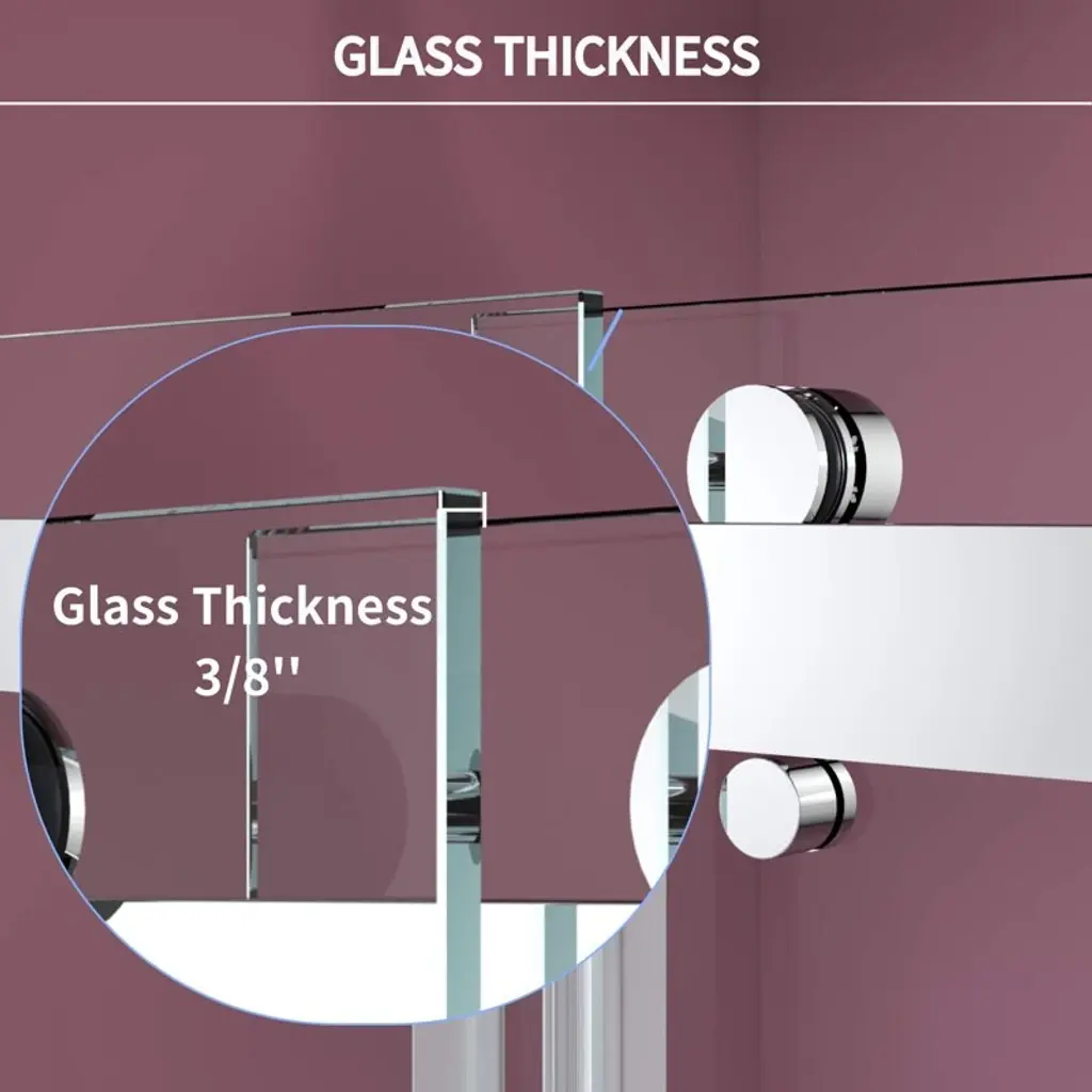 Description:Measuring 56-60 inches wide × 60 inches high, this bath tub shower door seamlessly blends luxury and durability. It features heavy-duty hardware for enhanced stability and silent operation. The 3/8 inch (10mm) thick glass is ANSI and SGCC certified, ensuring safety and reliability. With advanced glass coating technology, it repels soap scum and grime, making maintenance effortless.Discover the perfect blend of sophistication and functionality — because you deserve the best shower experience every day.Features:Available in matte black, brushed nickel, brushed gold and chrome colorsThe coating is waterproof, prevents soap scum and dirt, and is easy to clean56-60" W x 60" H double sliding glass panels3/8 inch ( 10mm ) tempered clear glass, ANSI certified, SGCC certified, safe and reliableQuiet and smooth sliding operation with large solid stainless steel rollersCan be installed on the left or right side of any straight bathtubAdjustable width up to 4 inches for a perfect fitLong handle design can be used for sliding and also serves as a towel barHardware surface finish: Stainless Steel running rail, door handle and rollersWhat’s included?This shower door comes with 3 carton boxes, 2 glass doors,1 hardware pack with illustrated step by step instructions. Multiple box packaging is designed to help ease of handling and prevent any damage in products by overloading the weight.