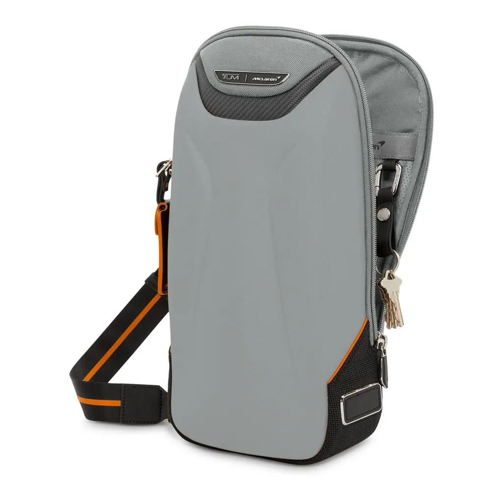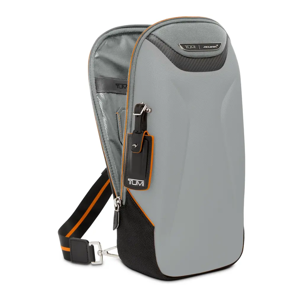The engineering science behind McLaren and the product innovation of Tumi come together for a seamless integration of lifestyle, fashion, and technology. Echoing aerodynamic automotive designs, this collection features sleek contours, CX6® carbon fiber accents and Papaya highlights for a signature McLaren touch.