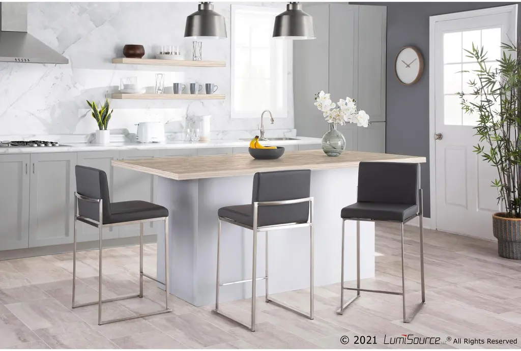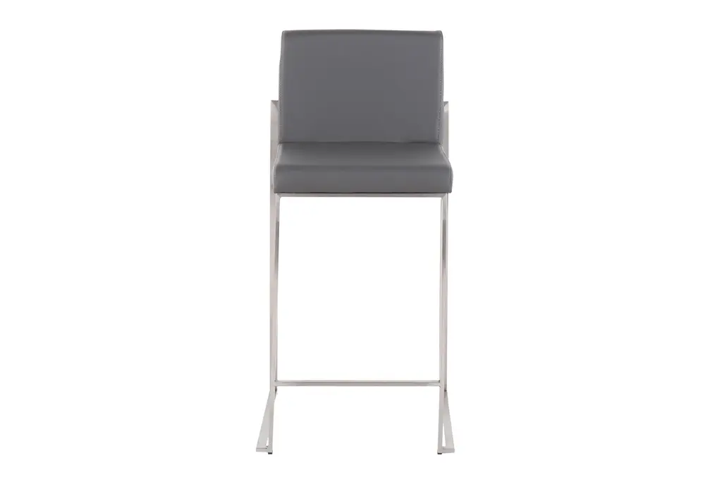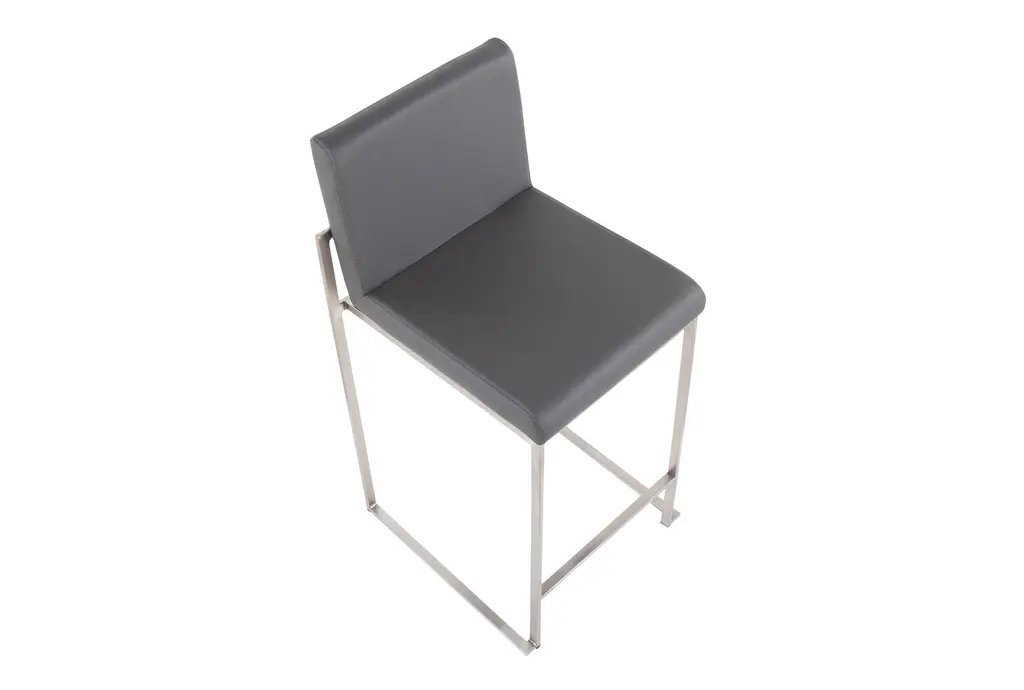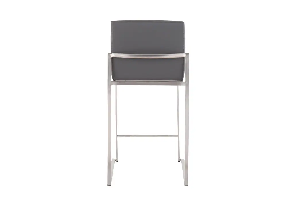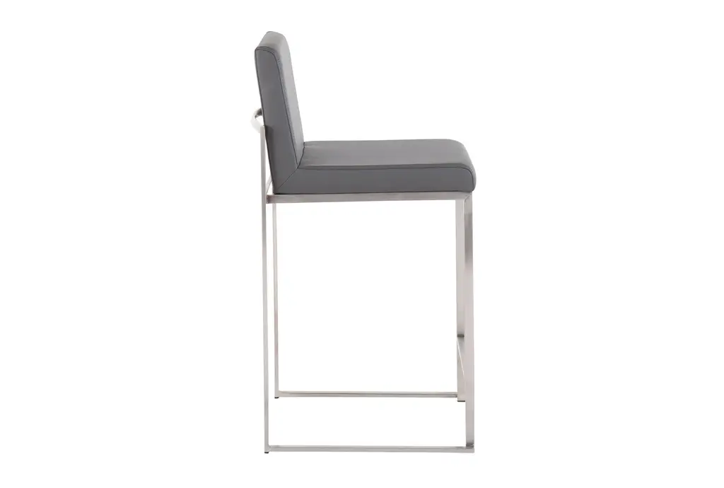 Enhance your dining or kitchen space with the Ian Grey Performance Faux Leather Metal High Back 26" Counter Height Stool Set of 2. These modern, armless stools feature a sleek design that complements any contemporary decor. The combination of grey faux leather and brushed stainless steel creates a sophisticated look that is both stylish and functional.