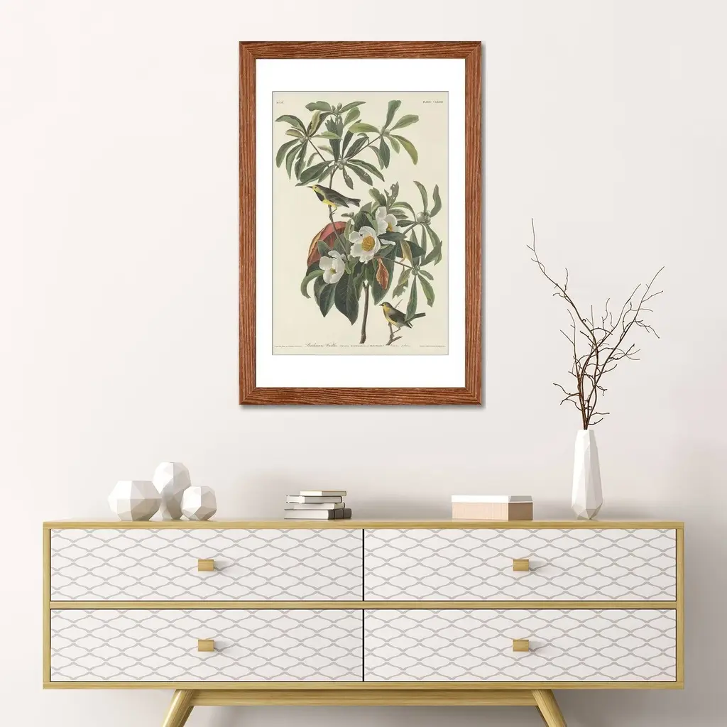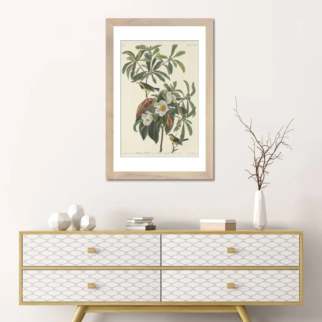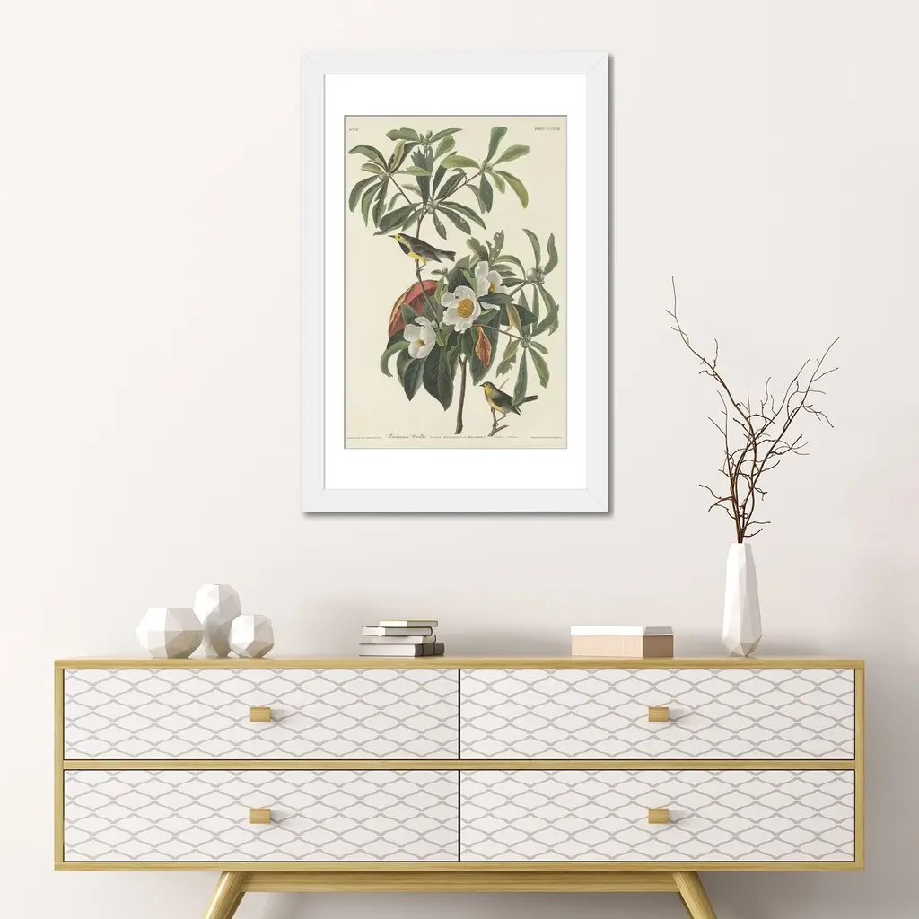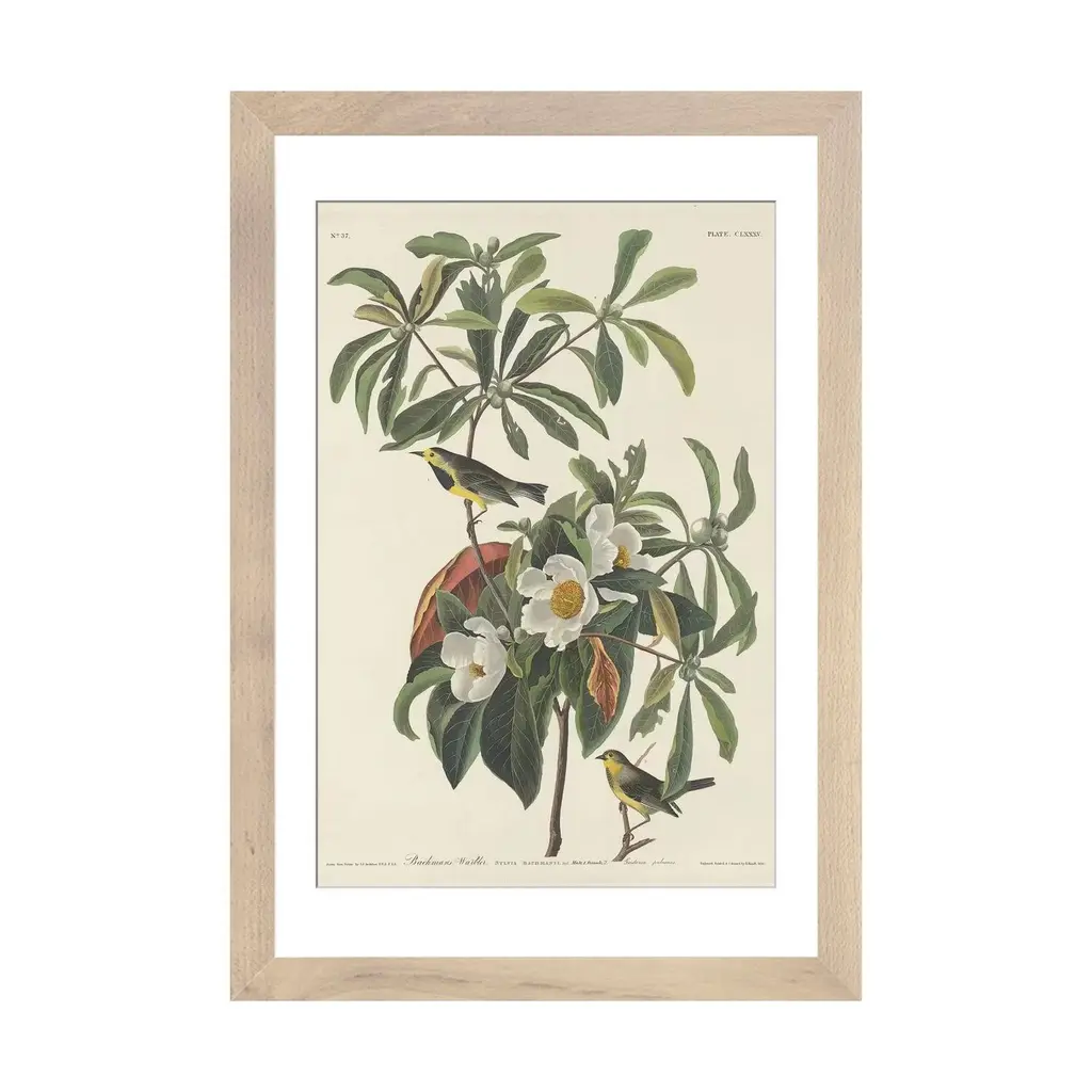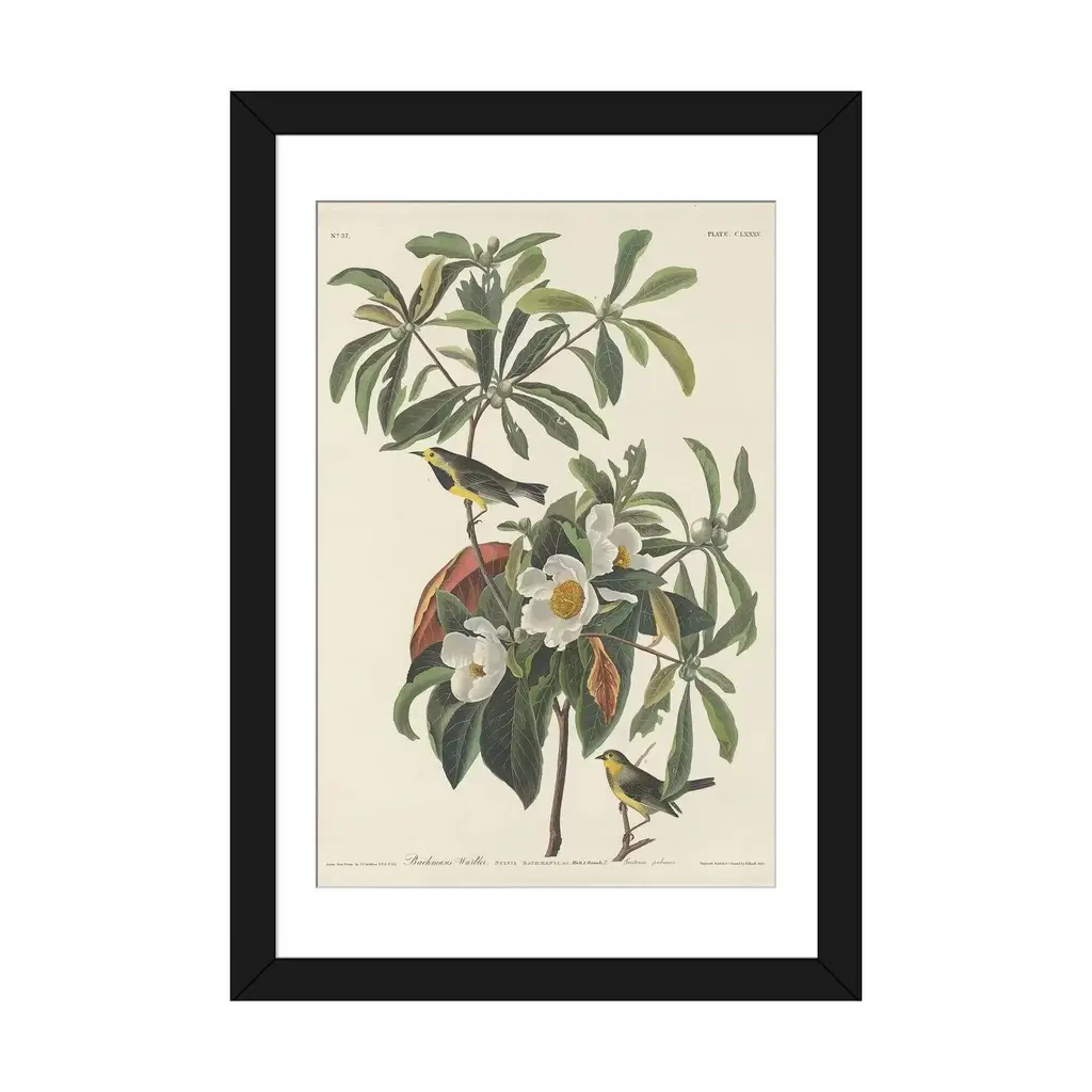Icanvas "Bachman's Warbler & Franklinia" By John James Audubon - Black - 32x24x1