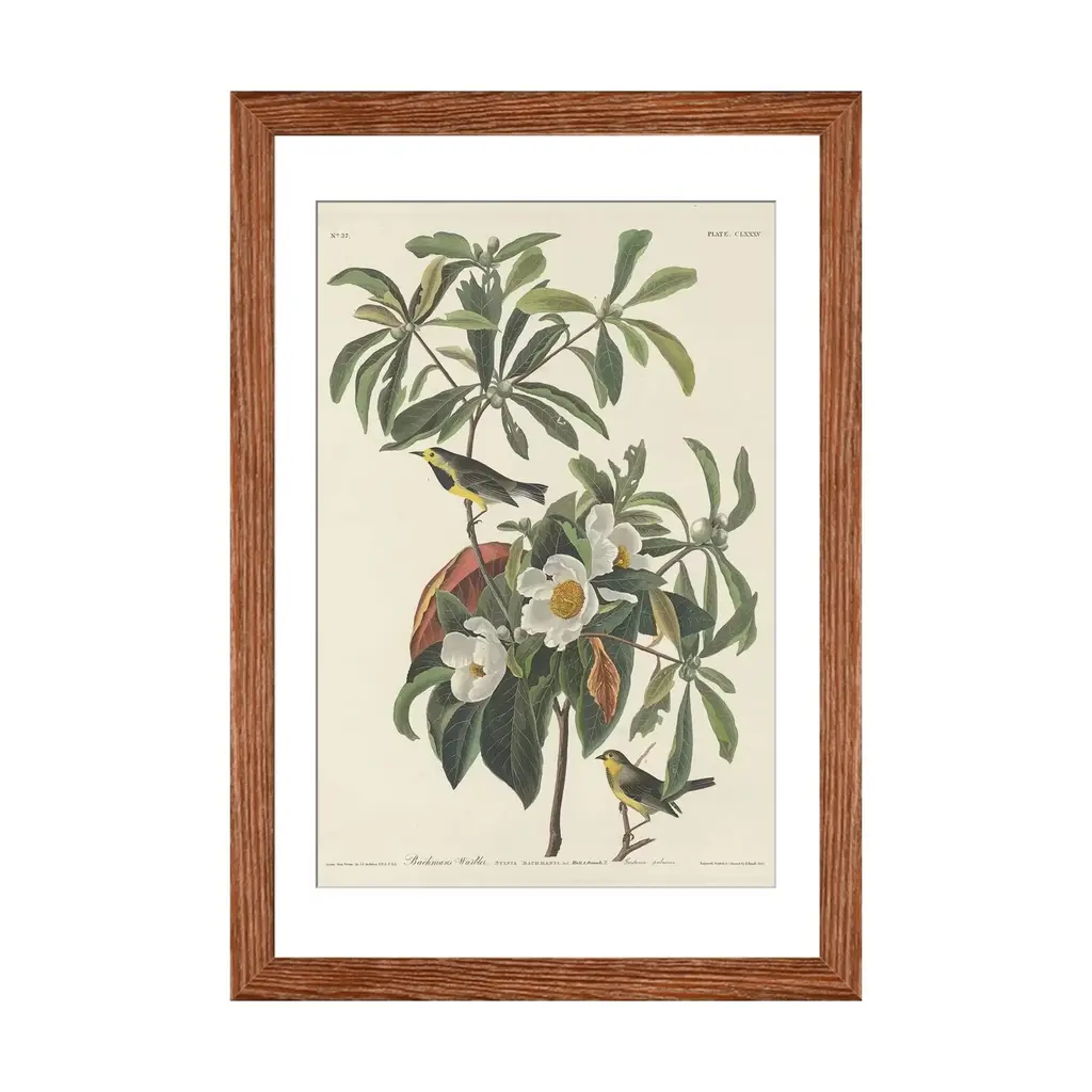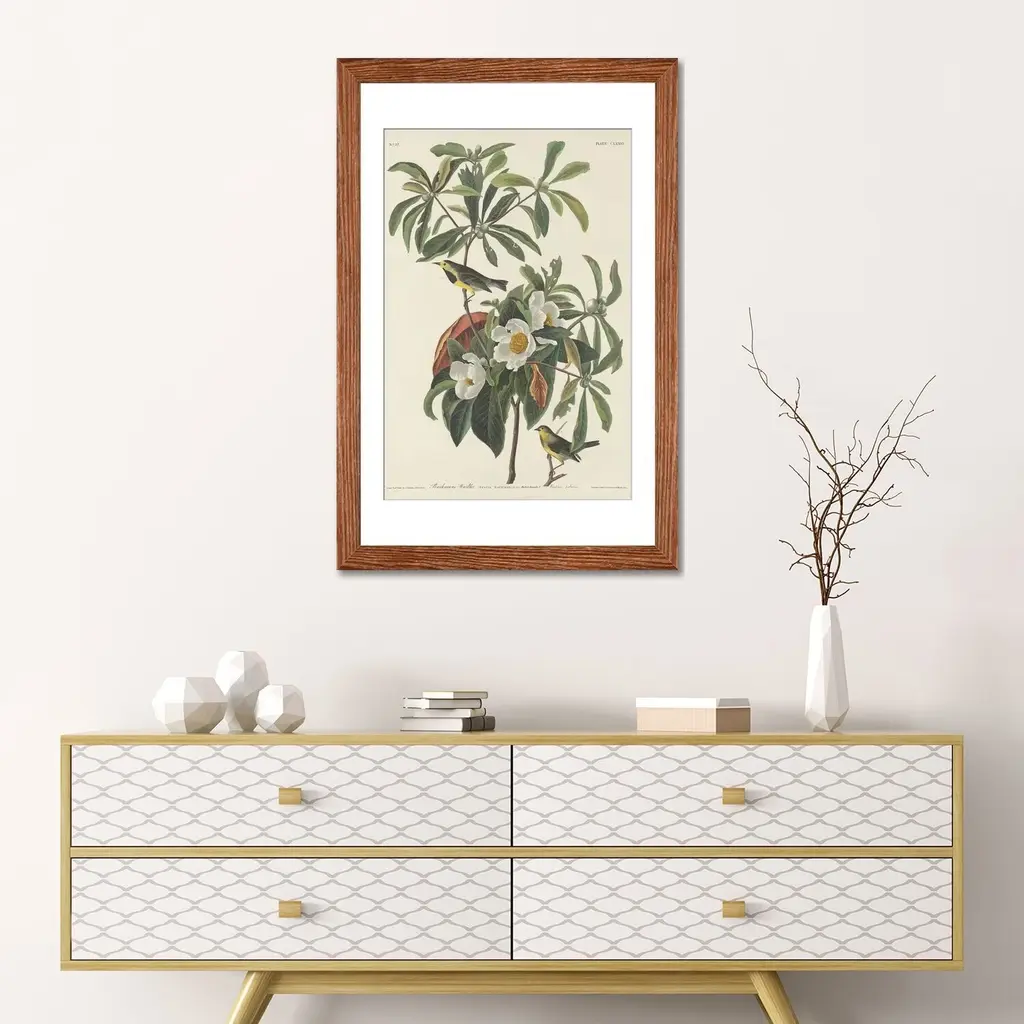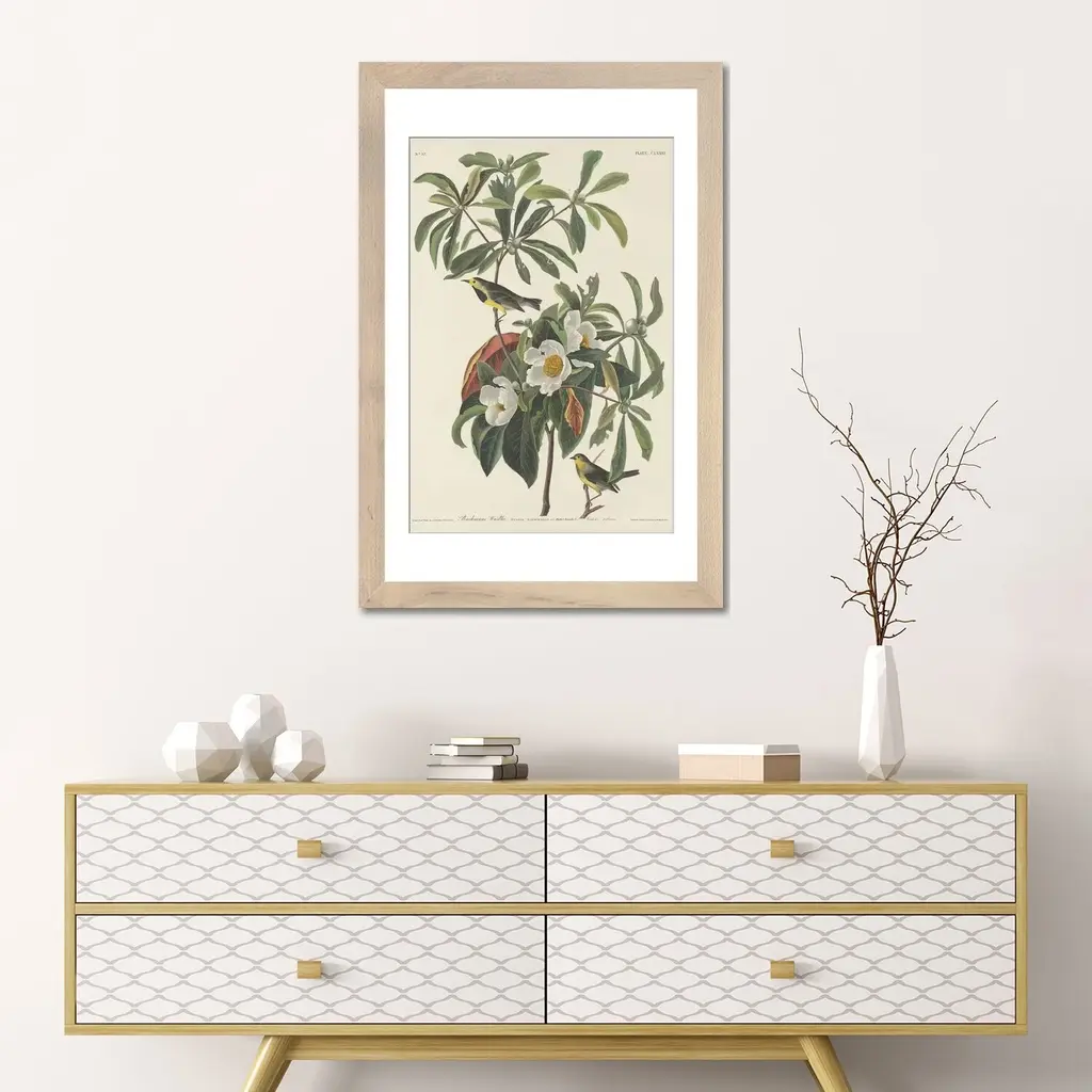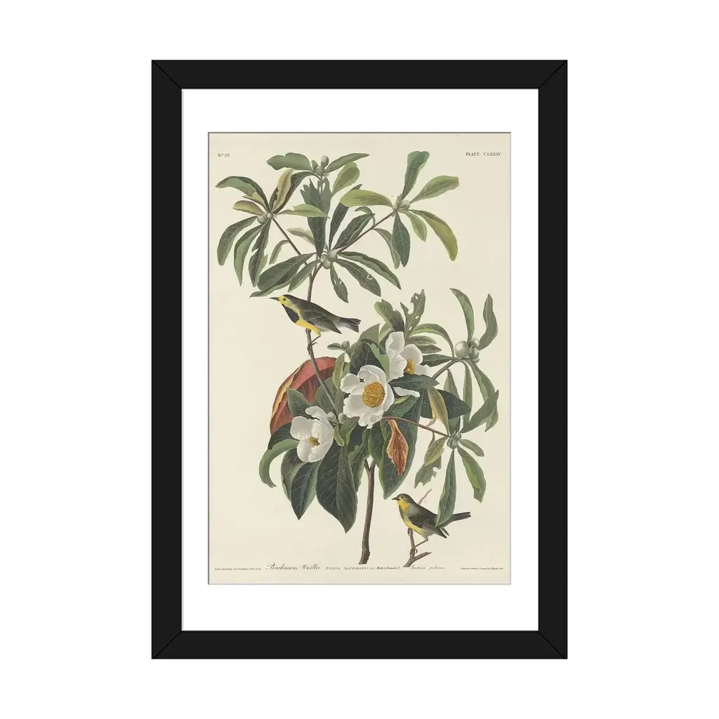 Icanvas "Bachman's Warbler & Franklinia" By John James Audubon - White - 32x24x1