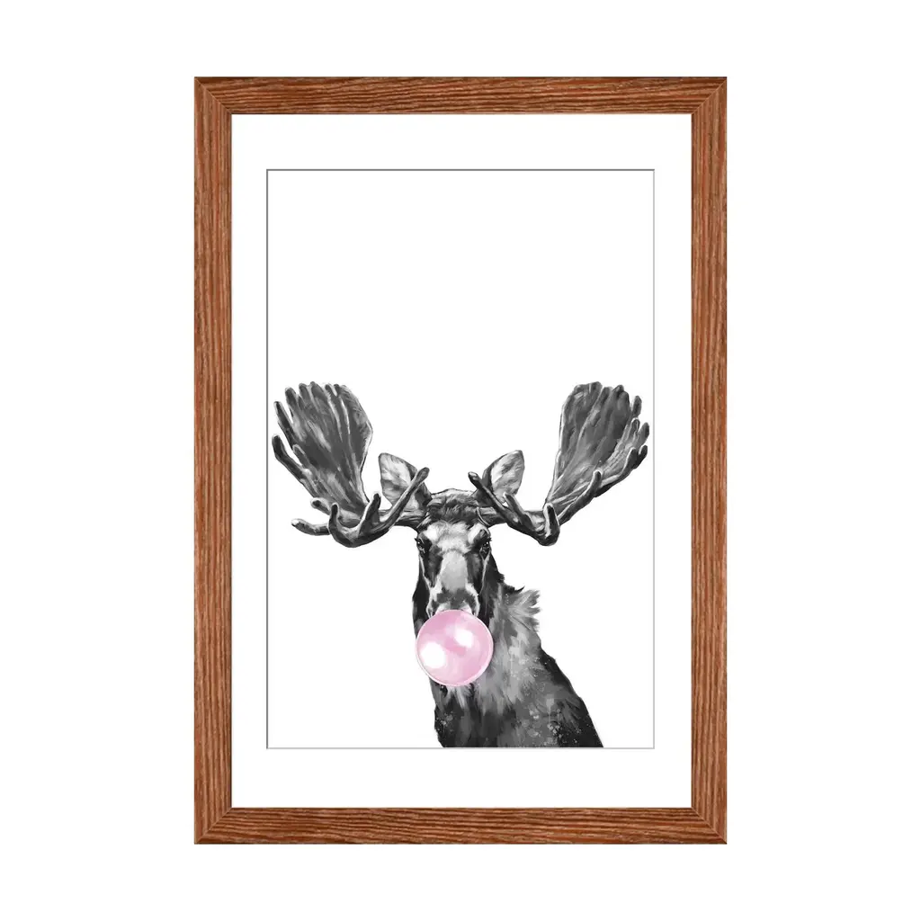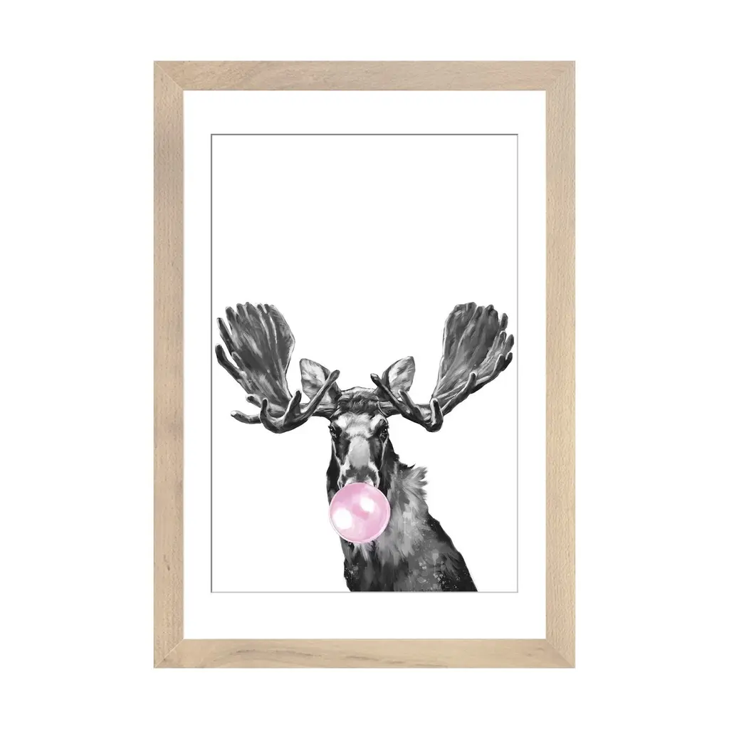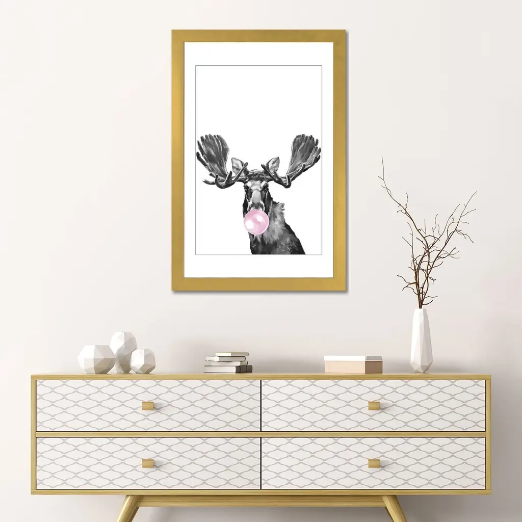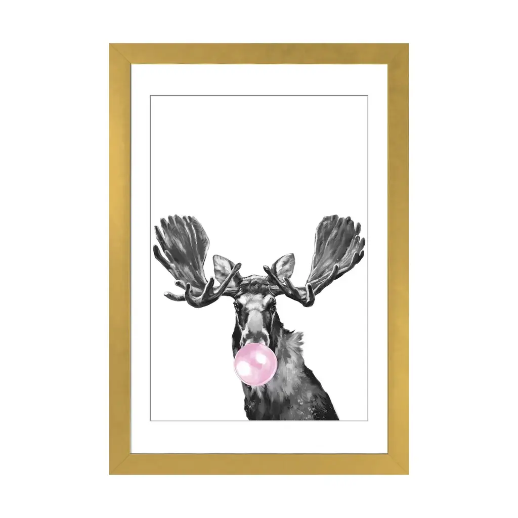 Icanvas "Bubble Gum Moose Black And White" By Big Nose Work - Black - 24x16x1