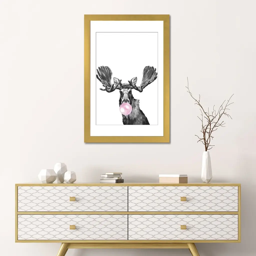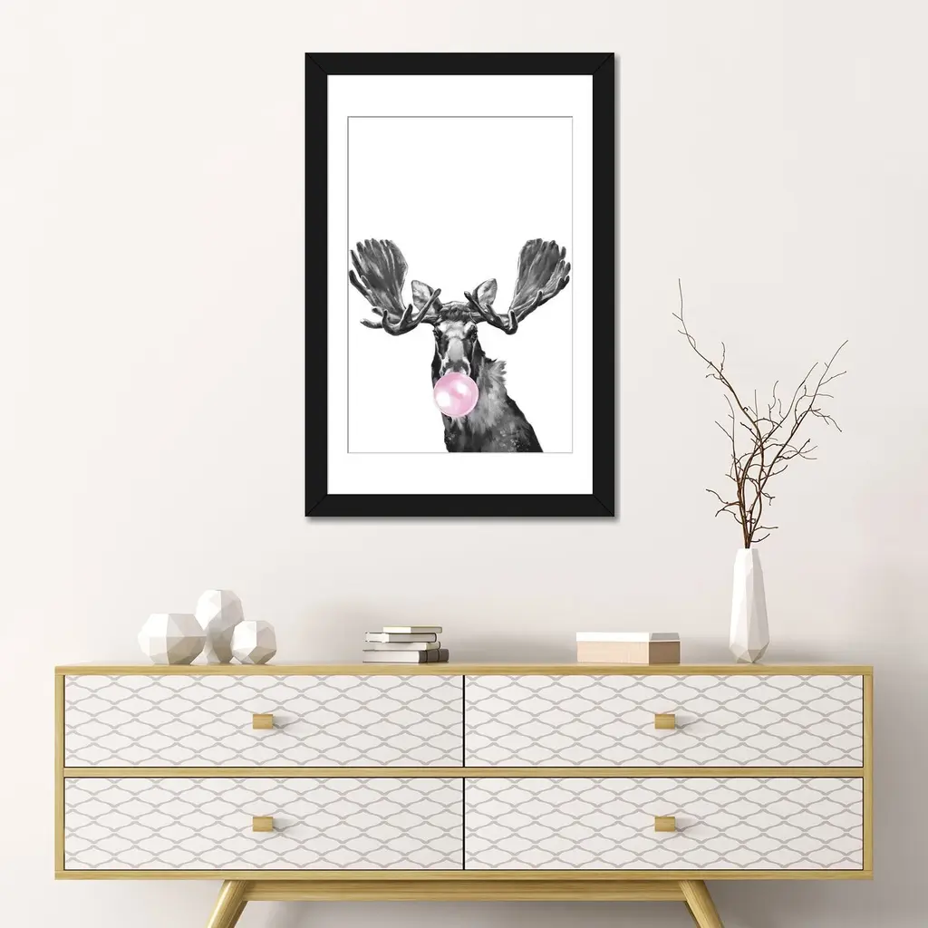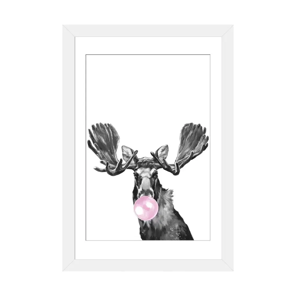 Icanvas "Bubble Gum Moose Black And White" By Big Nose Work - Walnut - 32x24x1