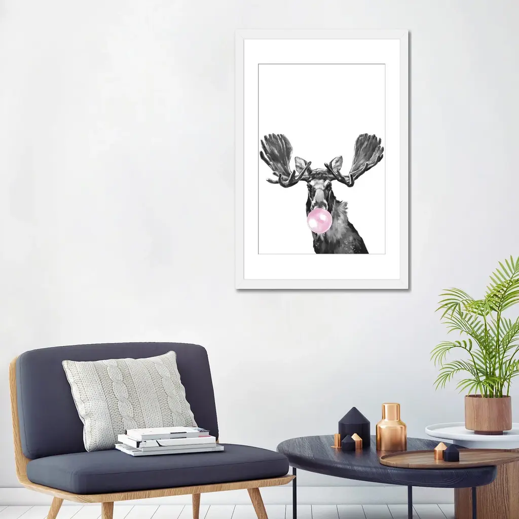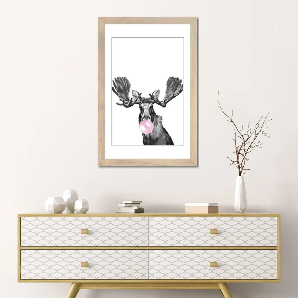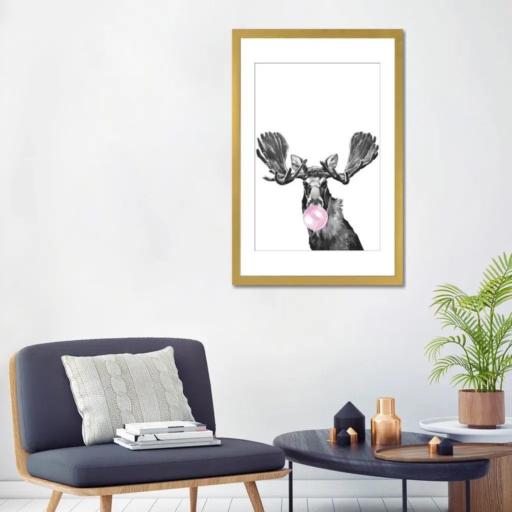 Icanvas "Bubble Gum Moose Black And White" By Big Nose Work - Walnut - 32x24x1