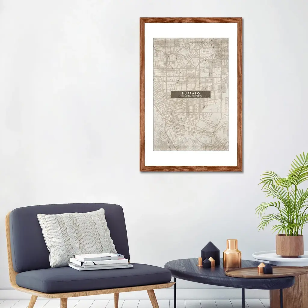 Icanvas "Buffalo City Map Abstract Style" By Walldecoraddict - Walnut - 24x16x1