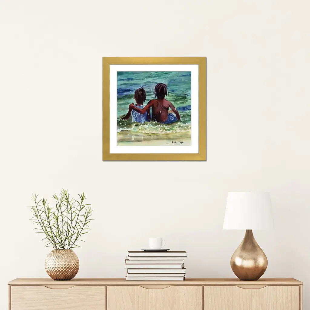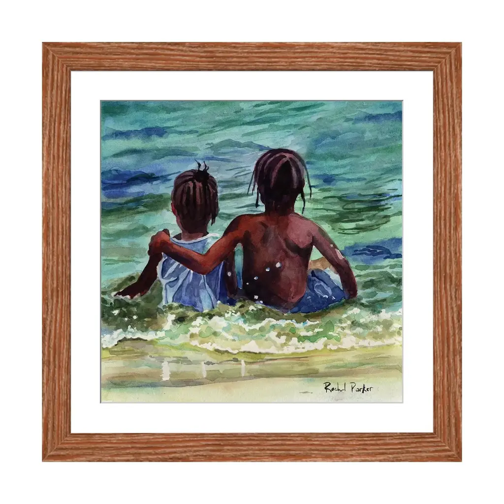 Icanvas "Caribbean Kids" By Rachel Parker - Gold - 16x16x1