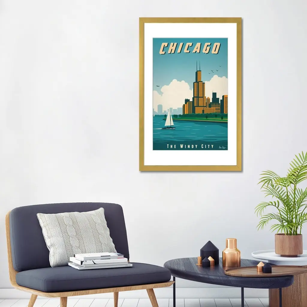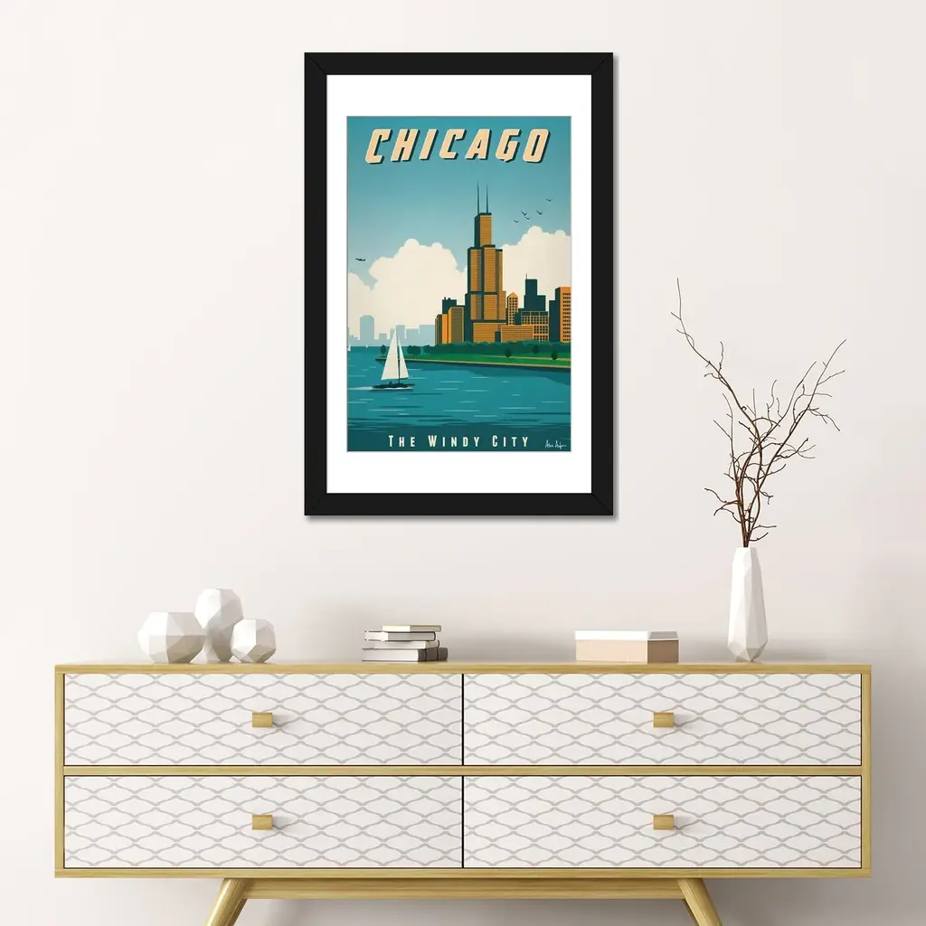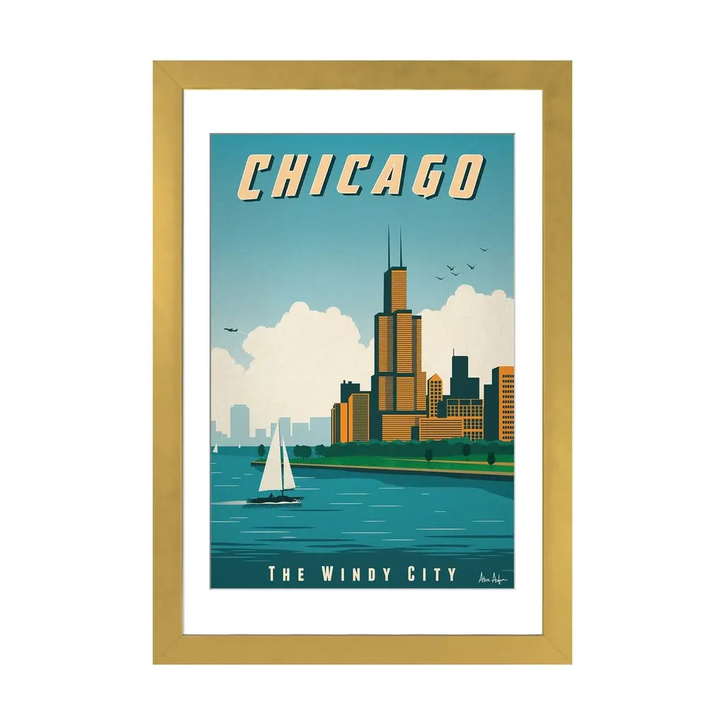 Icanvas "Chicago Poster" By Ideastorm Studios - White - 24x16x1