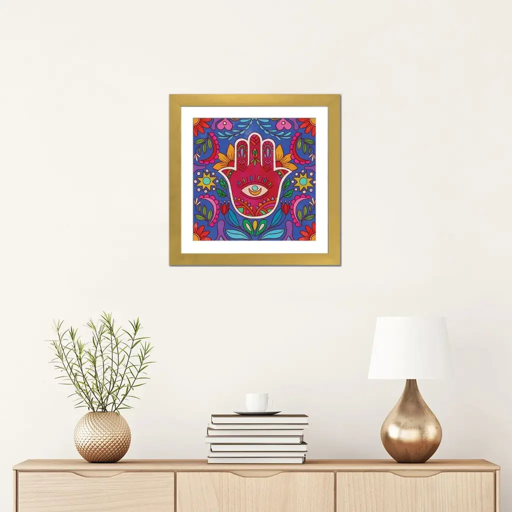 Icanvas "Colorful Hamsa Hand" By Olivia B√orki - Walnut - 16x16x1