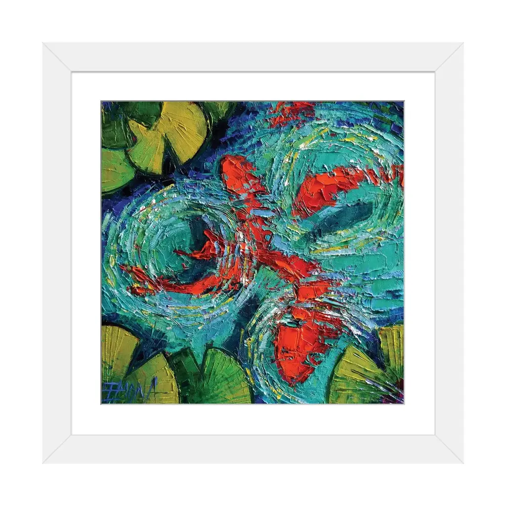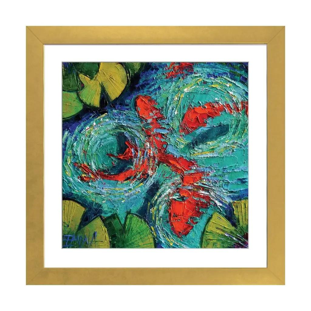 Icanvas "Colorful Koi Fishes In Lily Pond" By Mona Edulesco - Black - 24x24x1
