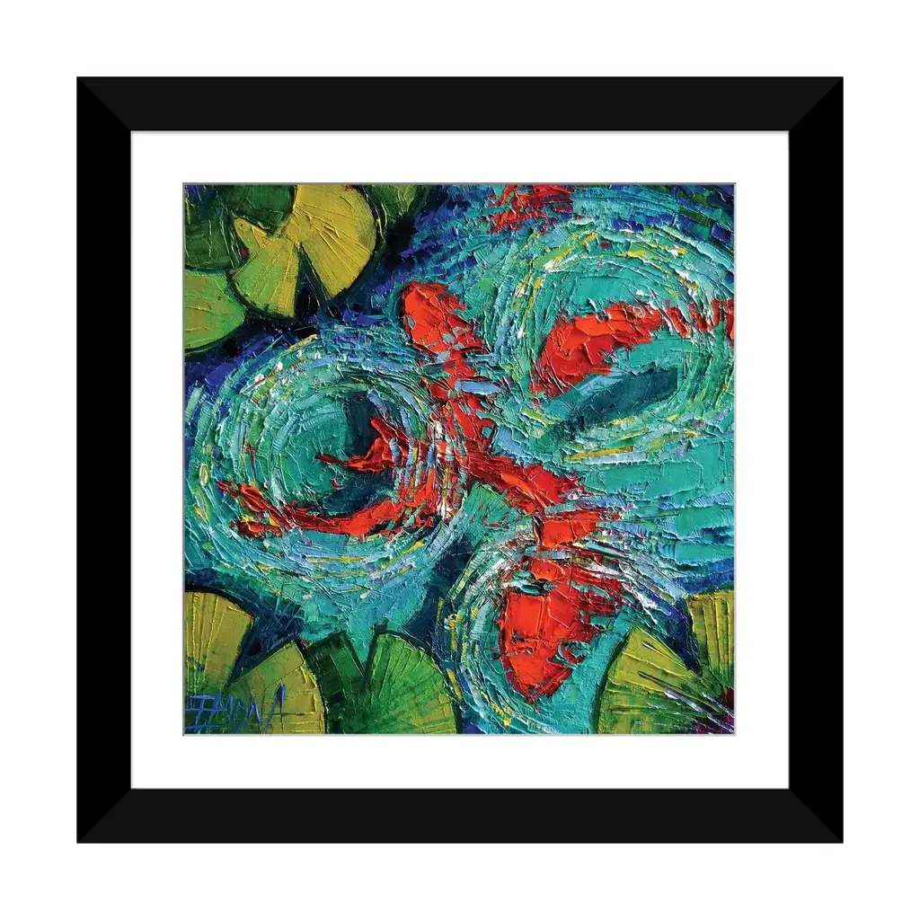 Icanvas "Colorful Koi Fishes In Lily Pond" By Mona Edulesco - Gold - 24x24x1