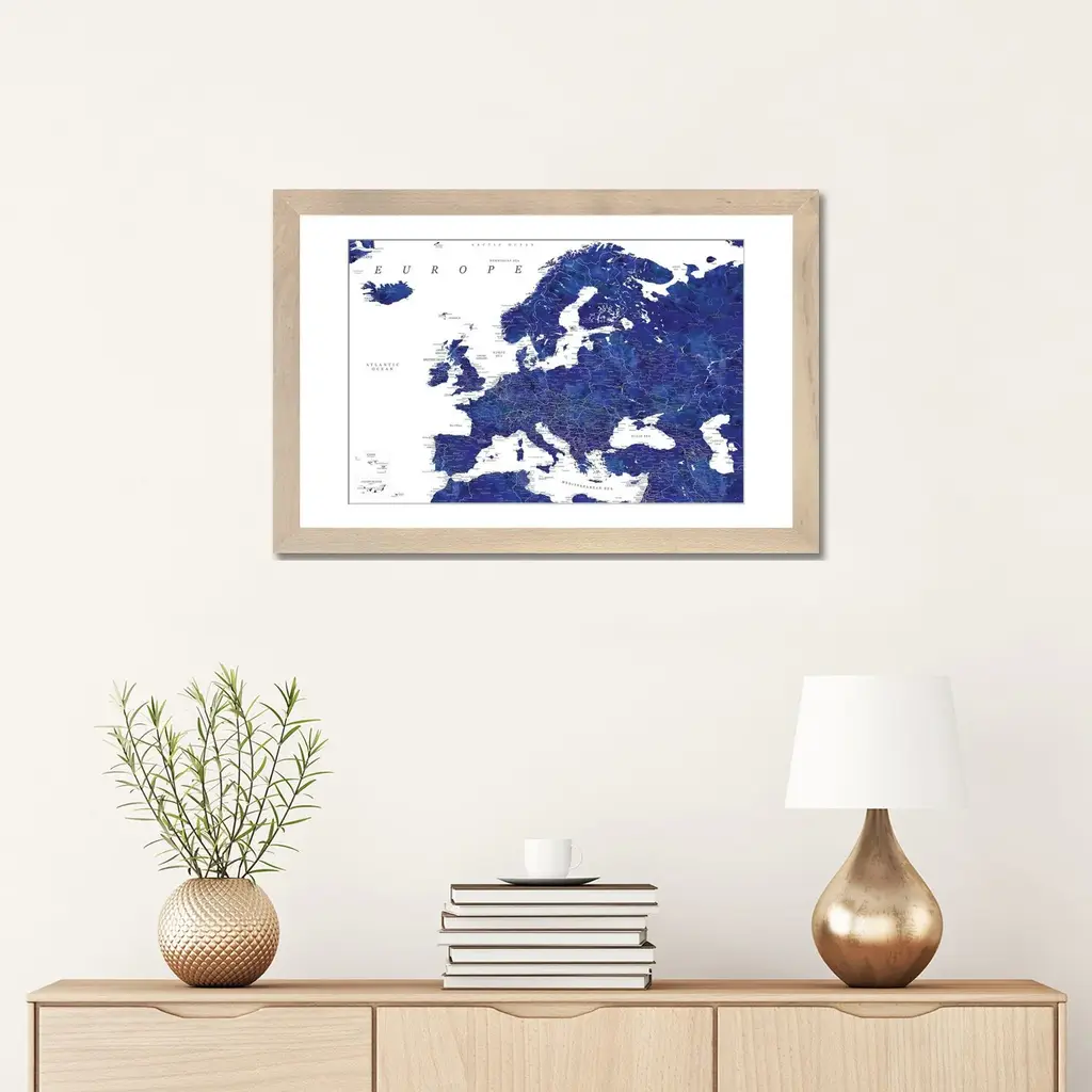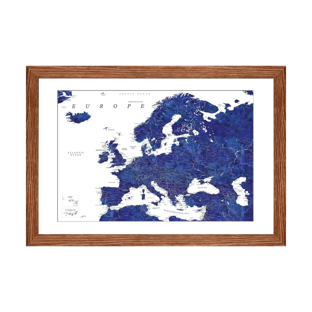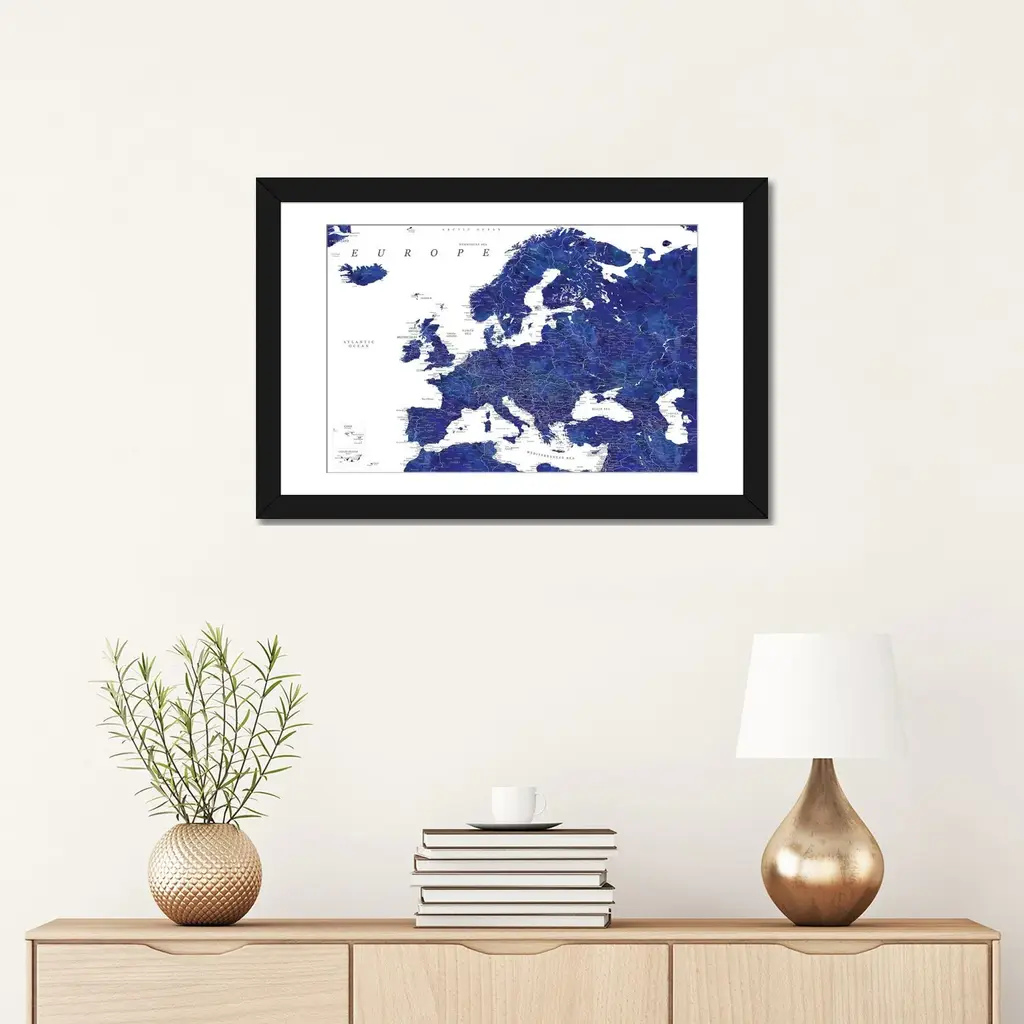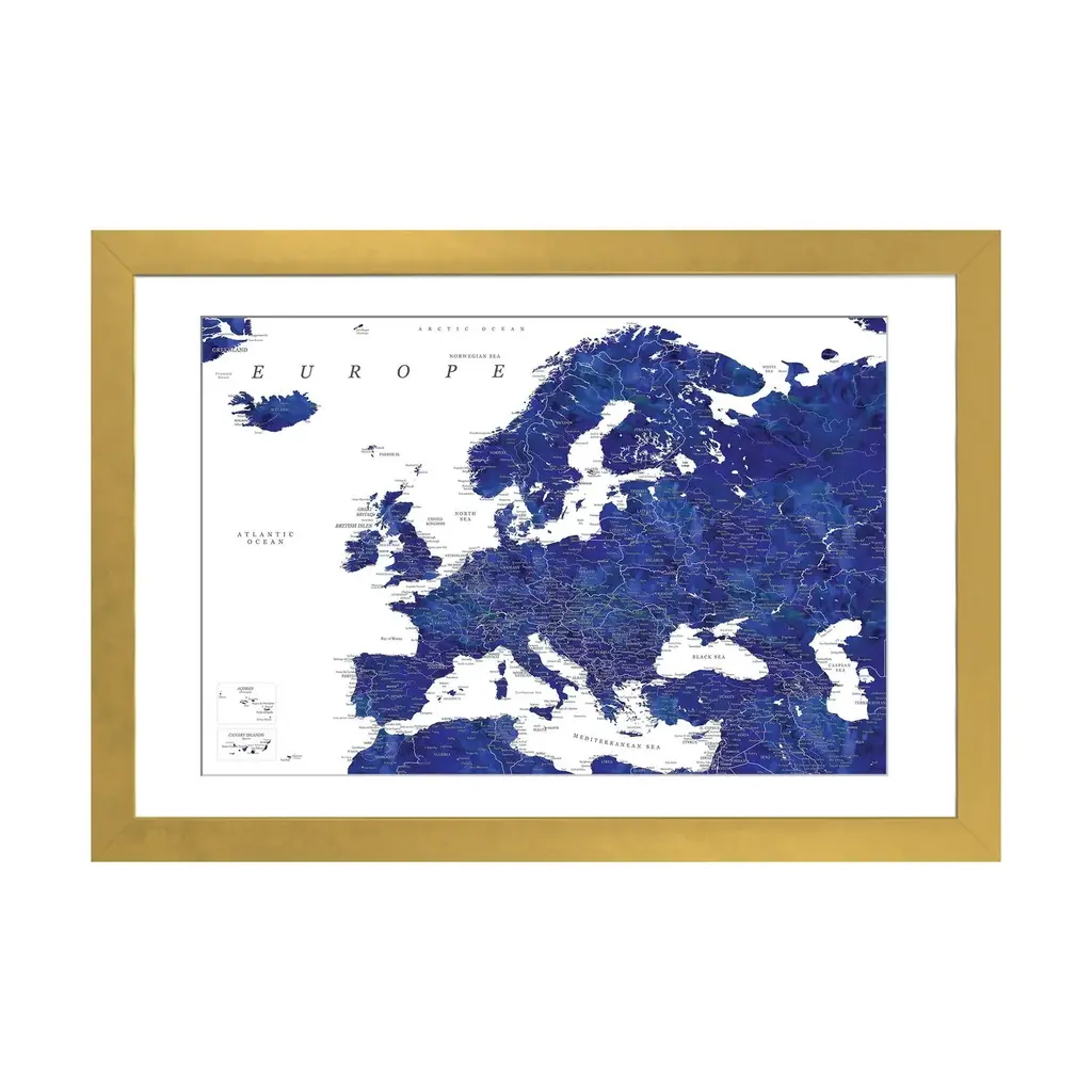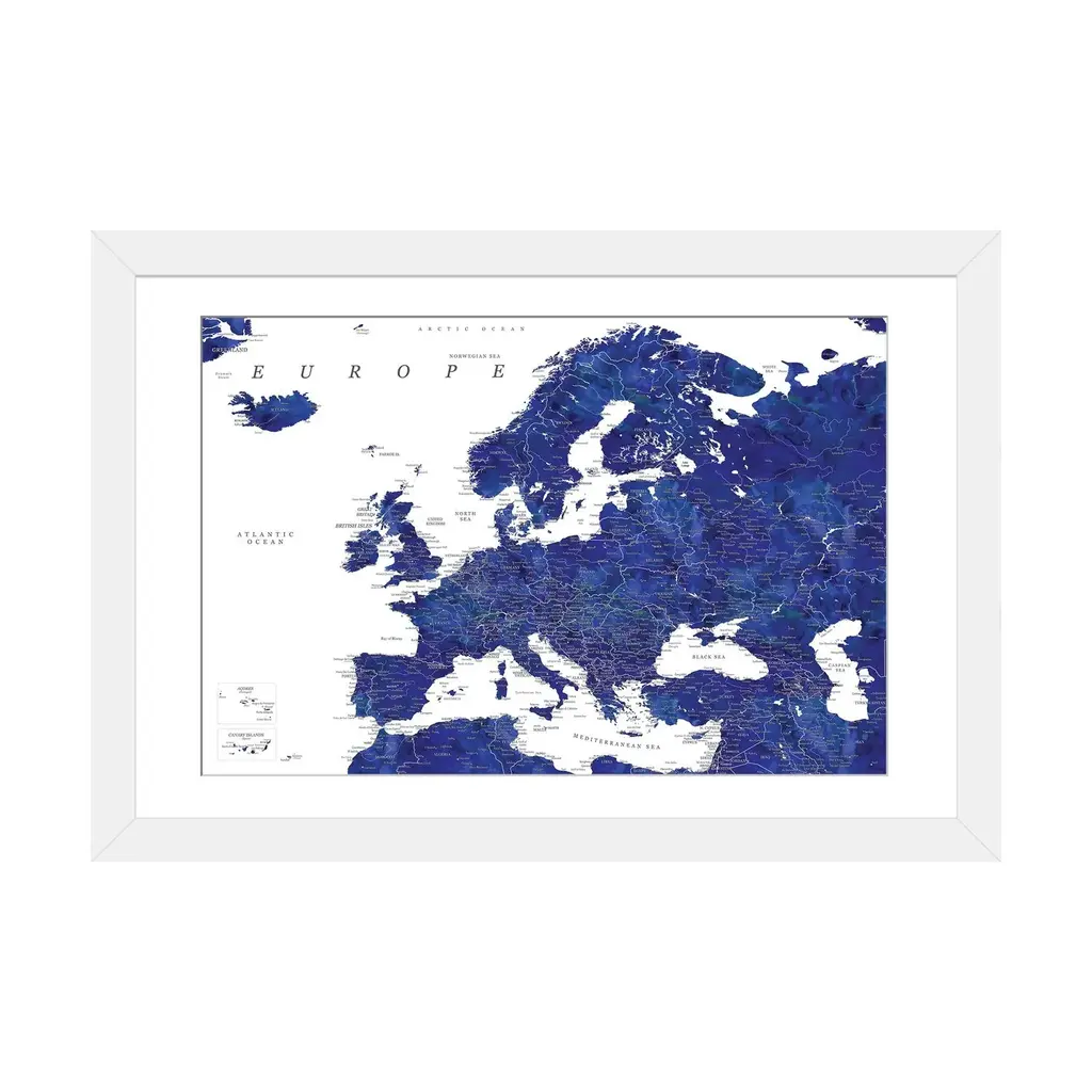 Icanvas "Detailed Europe Map In Navy Blue" By Blursbyai - Natural - 16x24x1