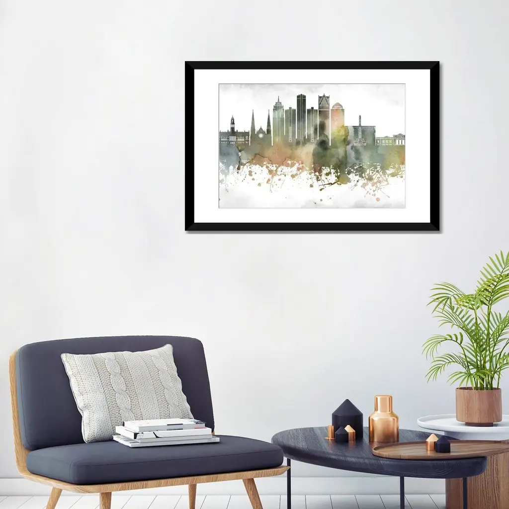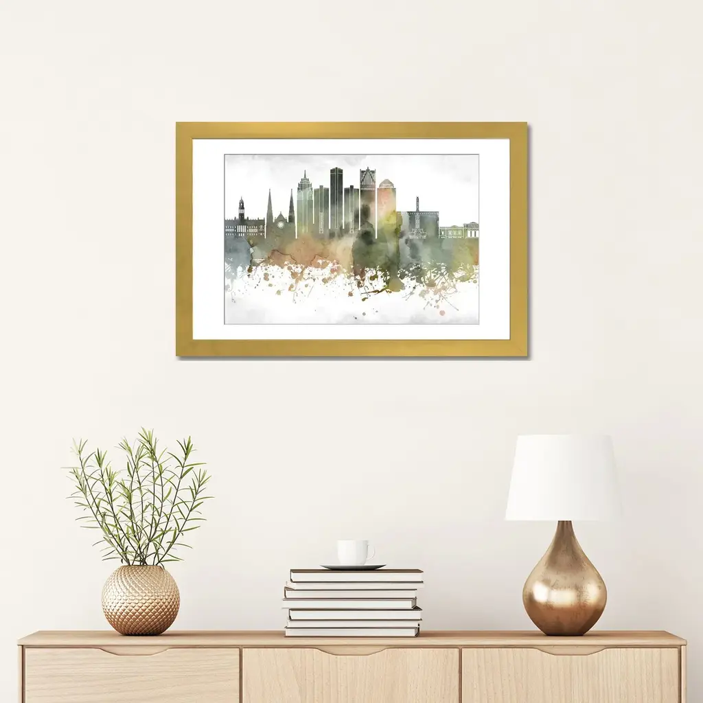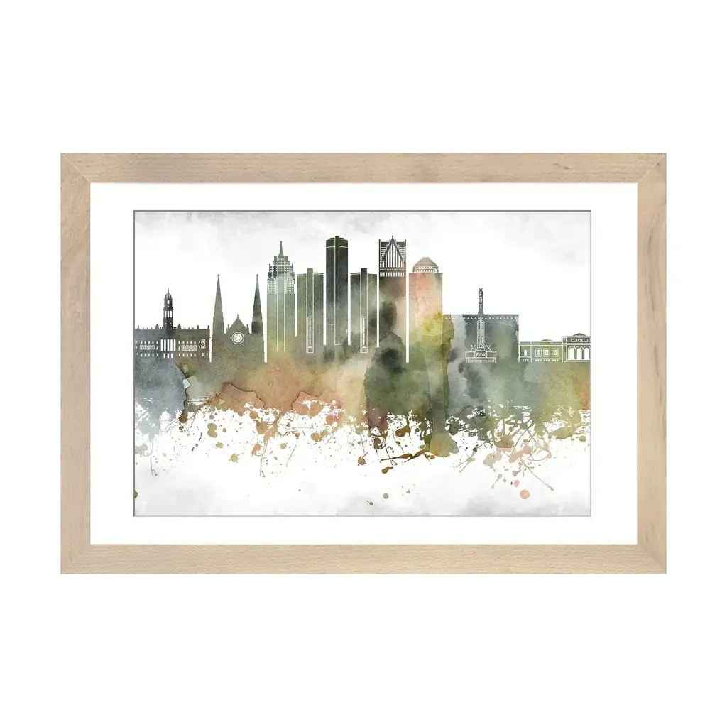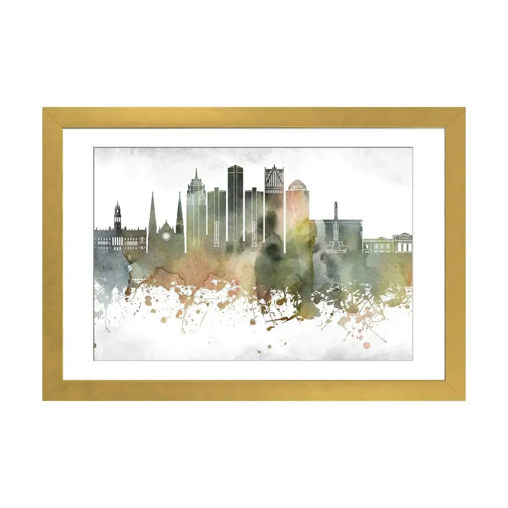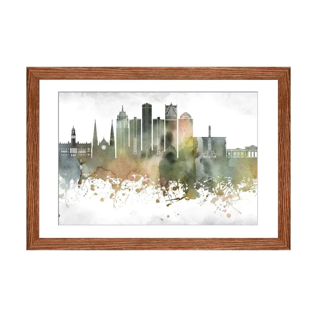 Icanvas "Detroit Skyline" By Walldecoraddict - Walnut - 16x24x1