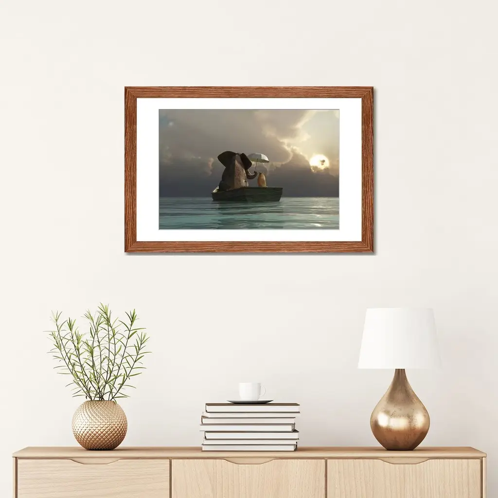 Icanvas "Elephant And Dog Are Floating In A Boat" By Mike Kiev Pfa - Black - 16x24x1
