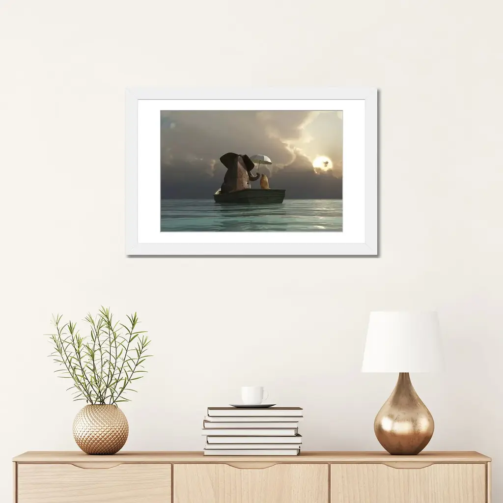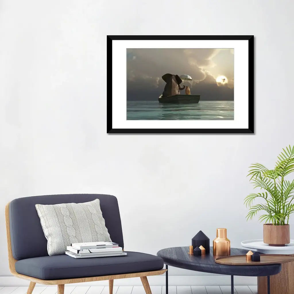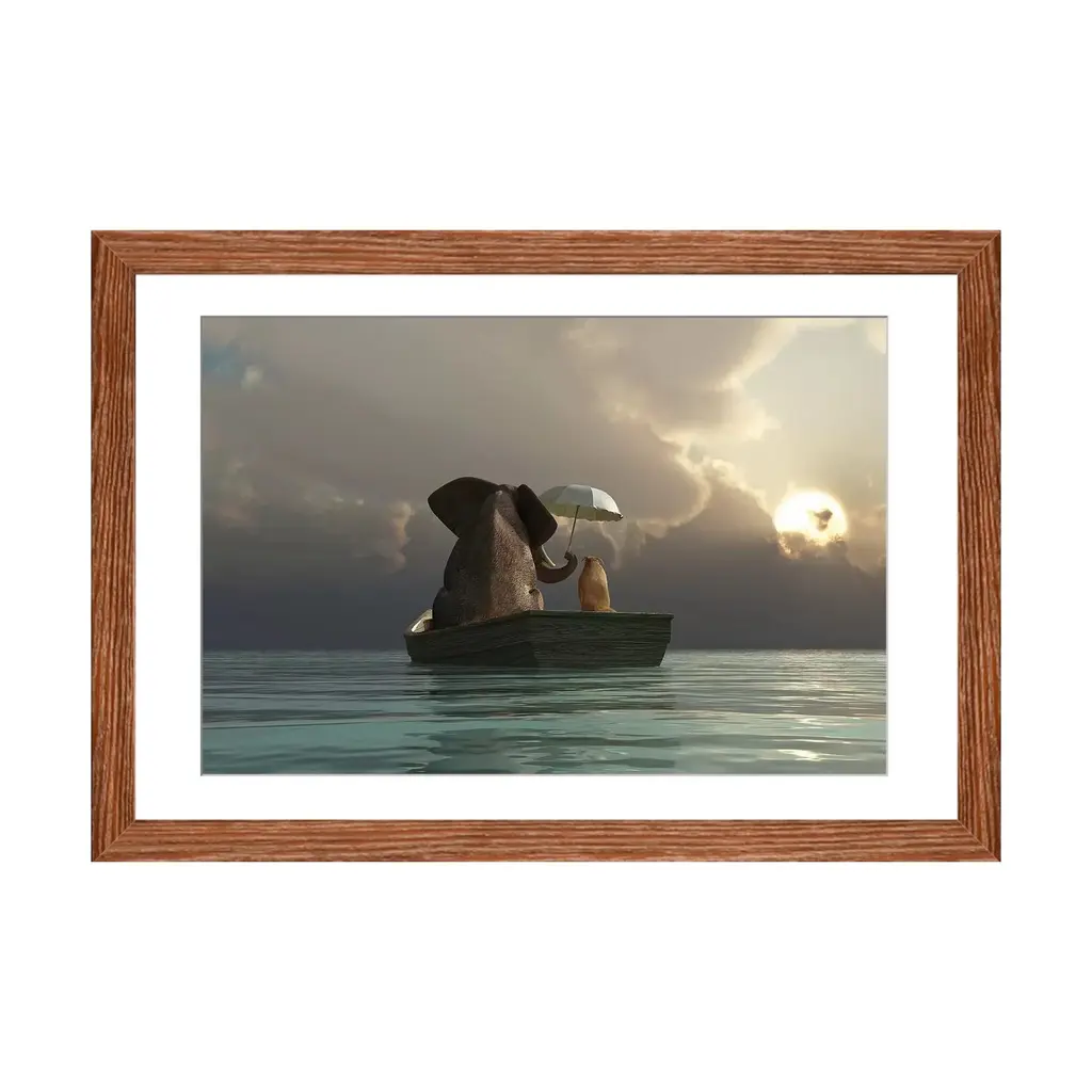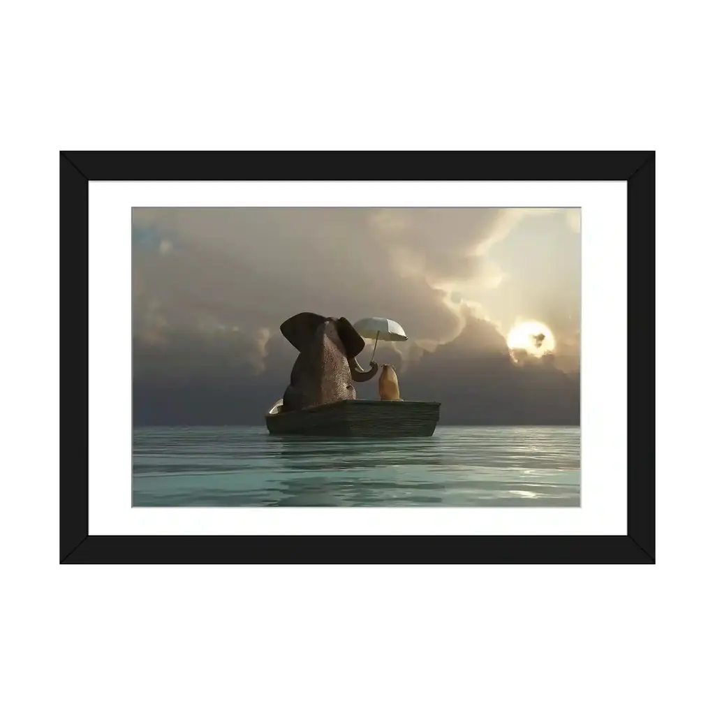 Icanvas "Elephant And Dog Are Floating In A Boat" By Mike Kiev Pfa - Gold - 24x32x1