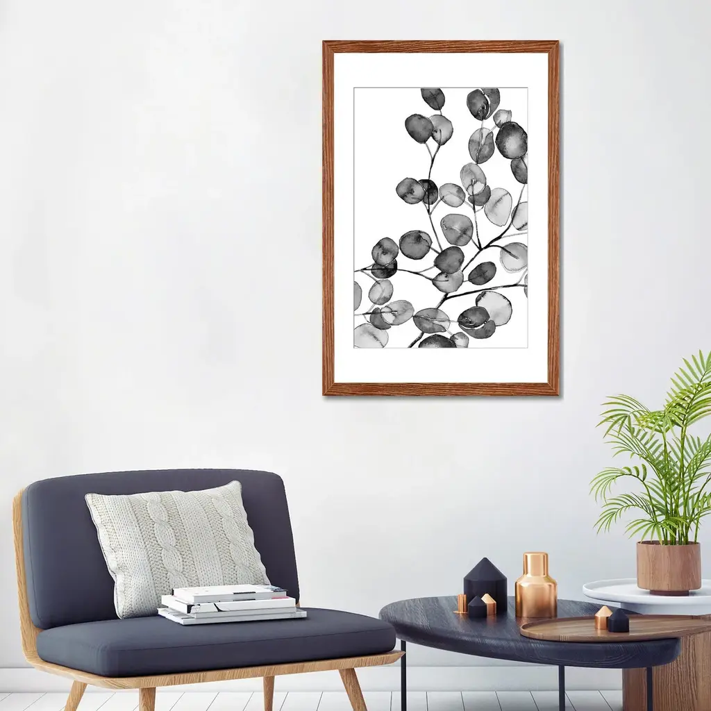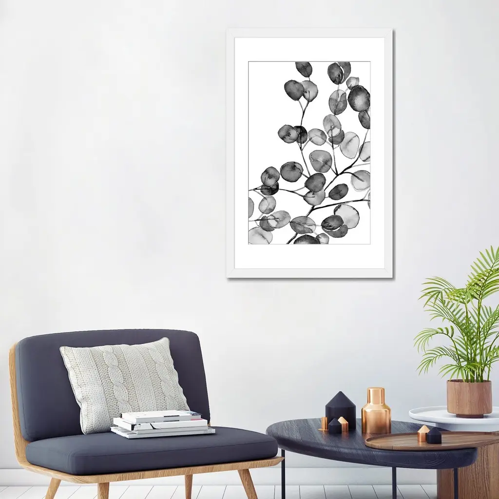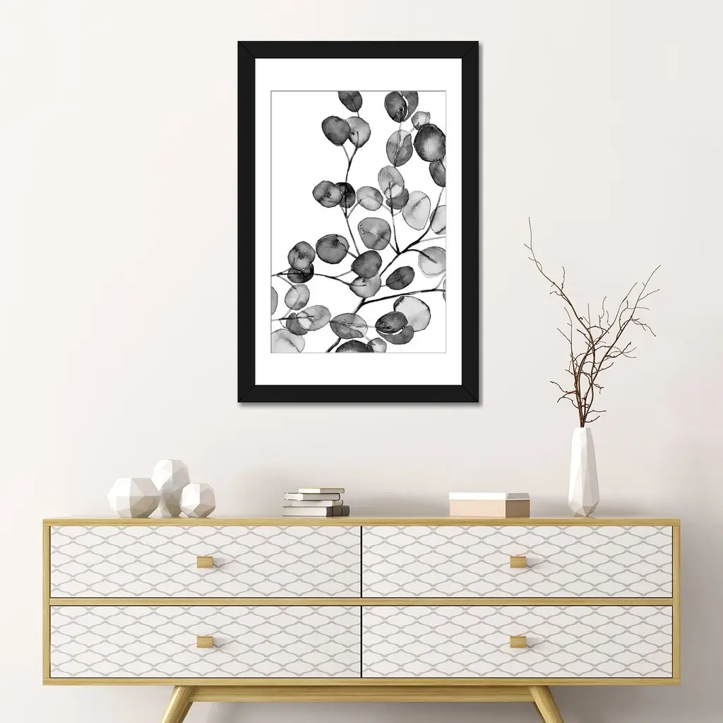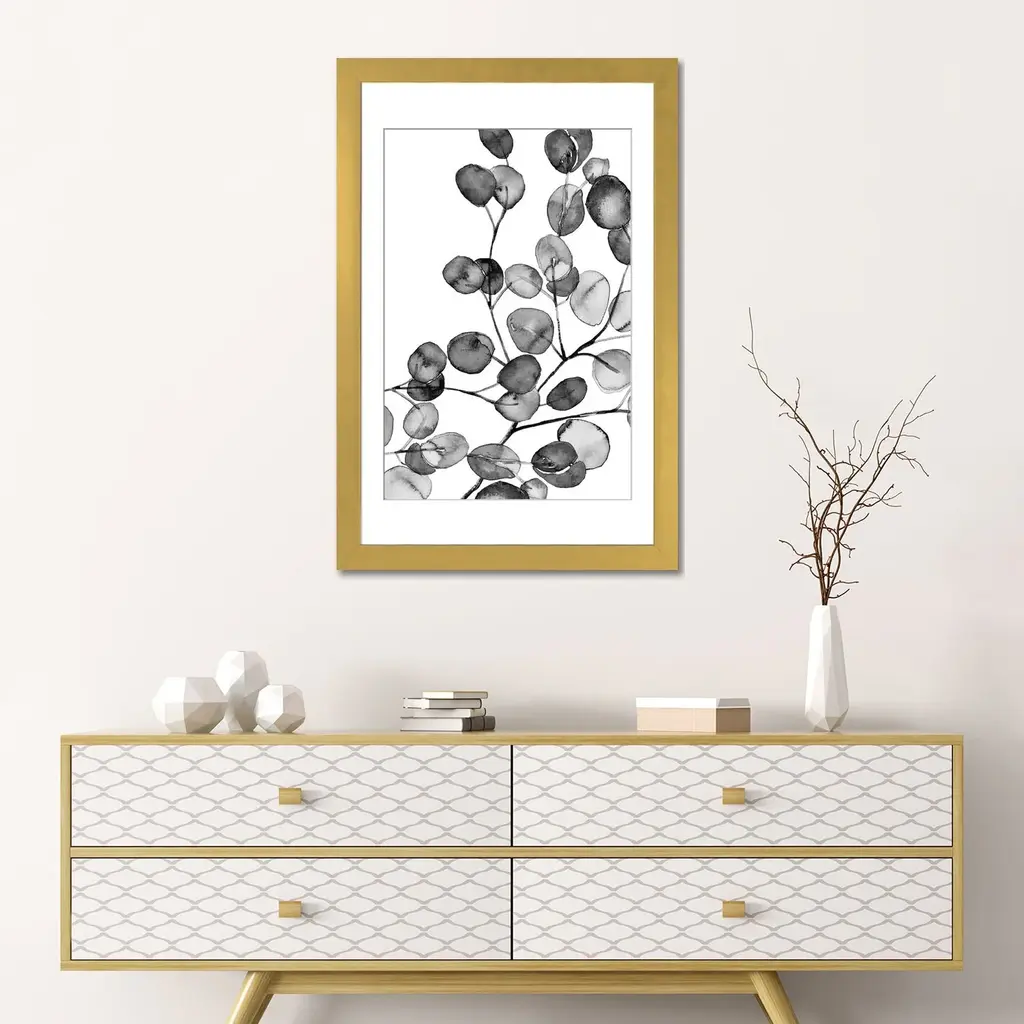 Icanvas "Eucalyptus Watercolor Black And White" By Monika Strigel Pfa - Gold - 32x24x1