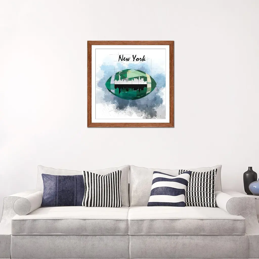 Icanvas "Football New York Jets" By Katia Skye - Walnut - 24x24x1