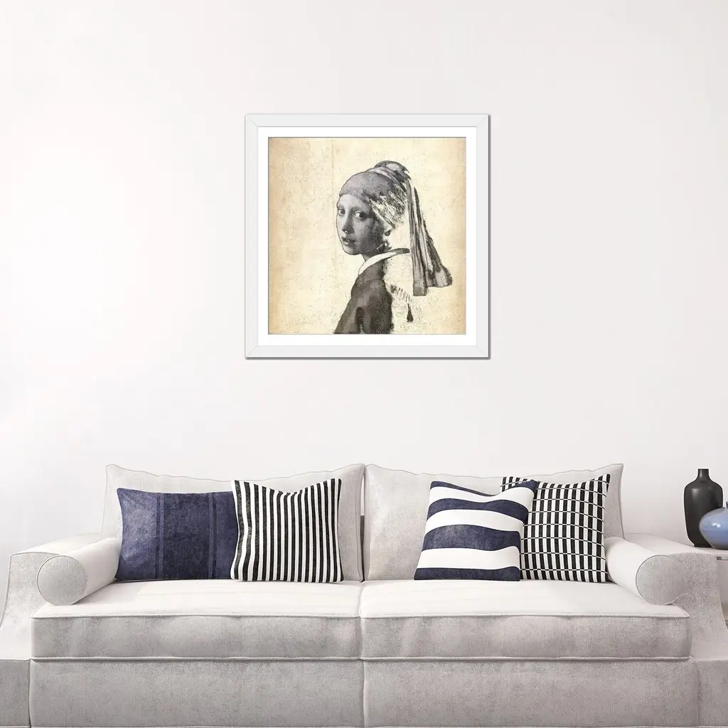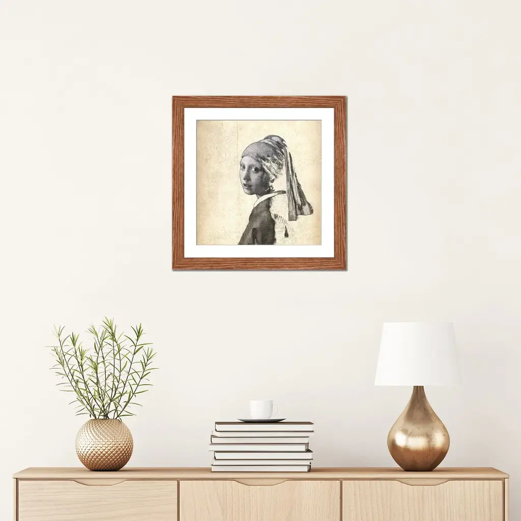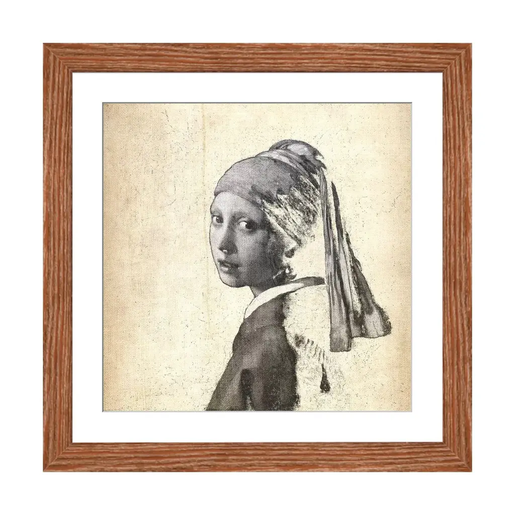 Icanvas "Girl With A Pearl Earring Ix" By 5By5collective - Walnut - 16x16x1