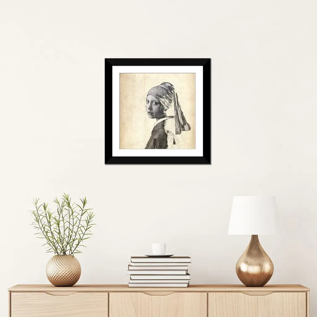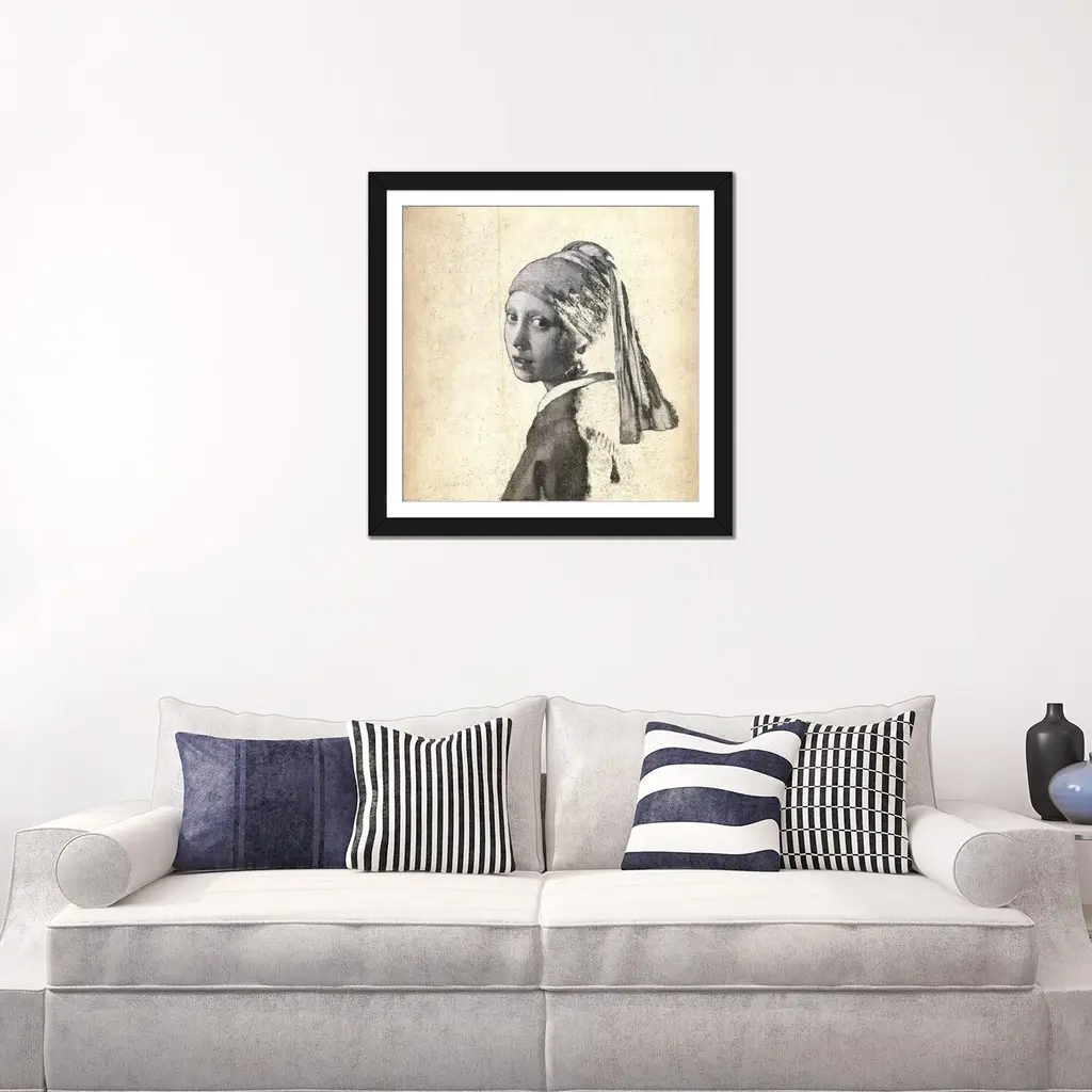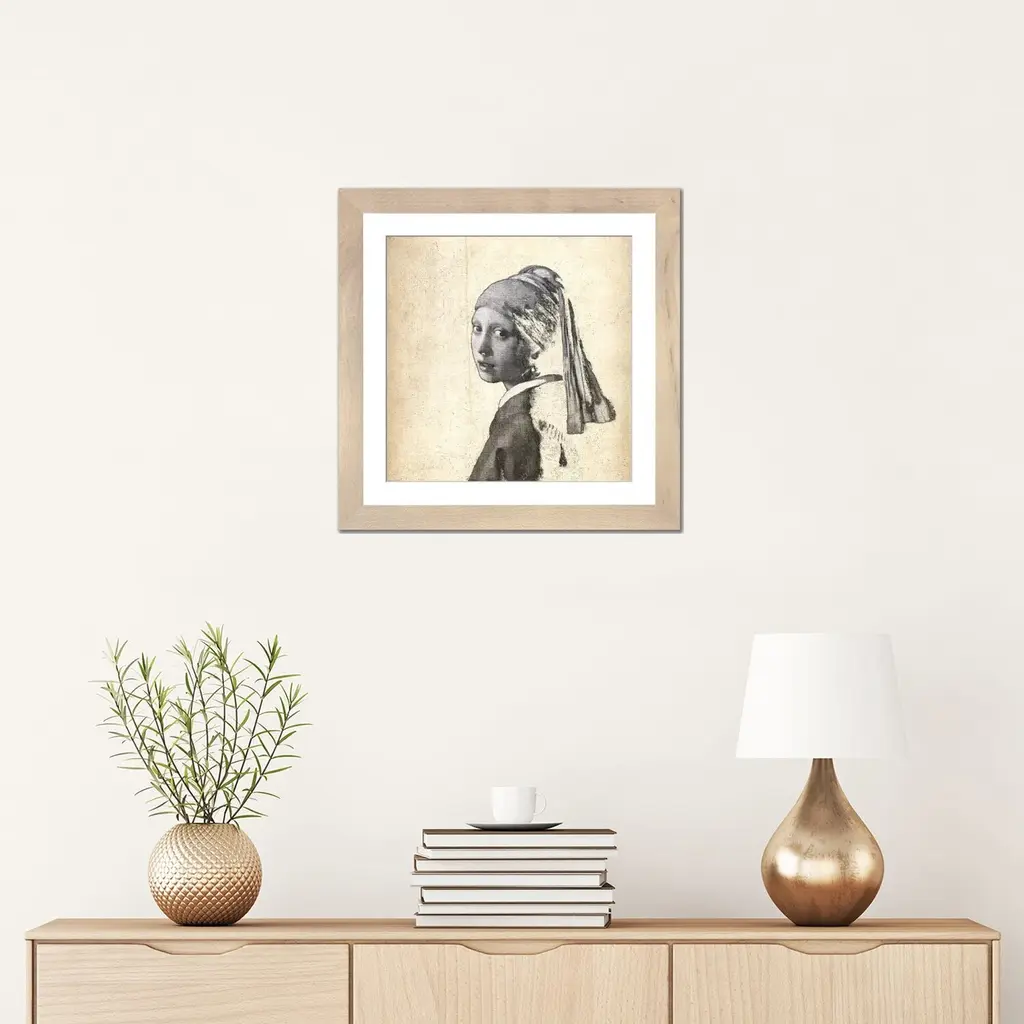 Icanvas "Girl With A Pearl Earring Ix" By 5By5collective - Walnut - 16x16x1