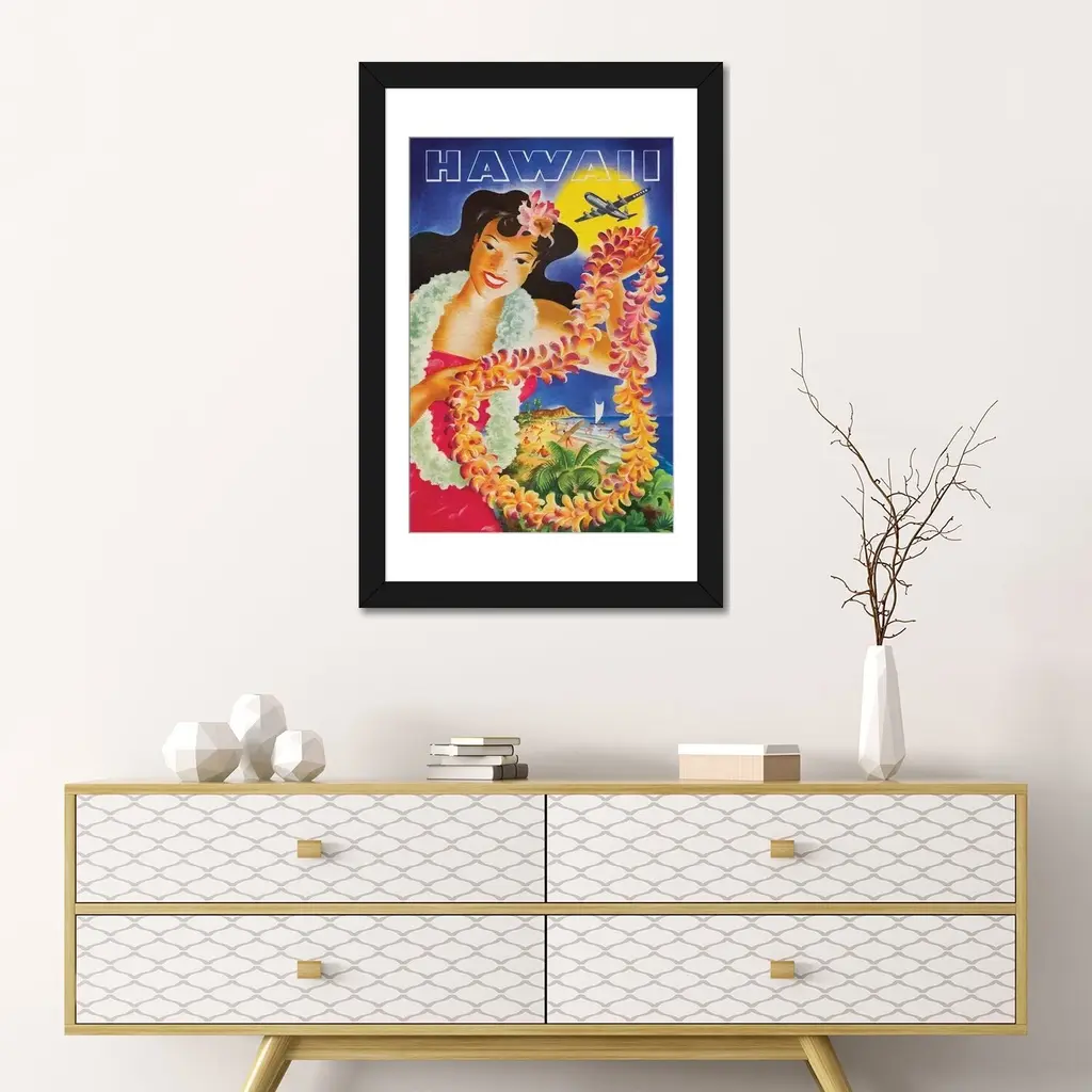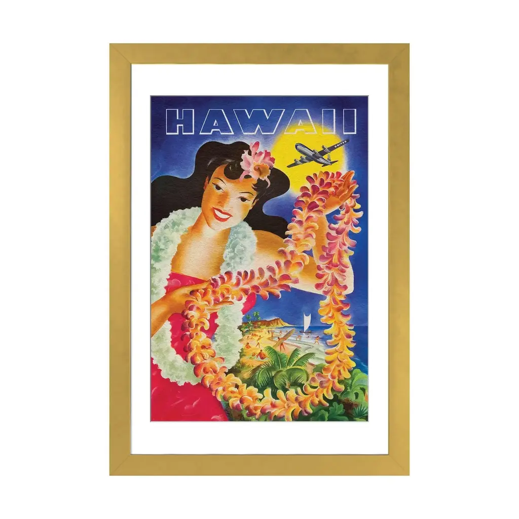 Icanvas "Hawaii Vintage Travel Poster (From Vector)" By Alessandro Della Torre - Black - 24x16x1