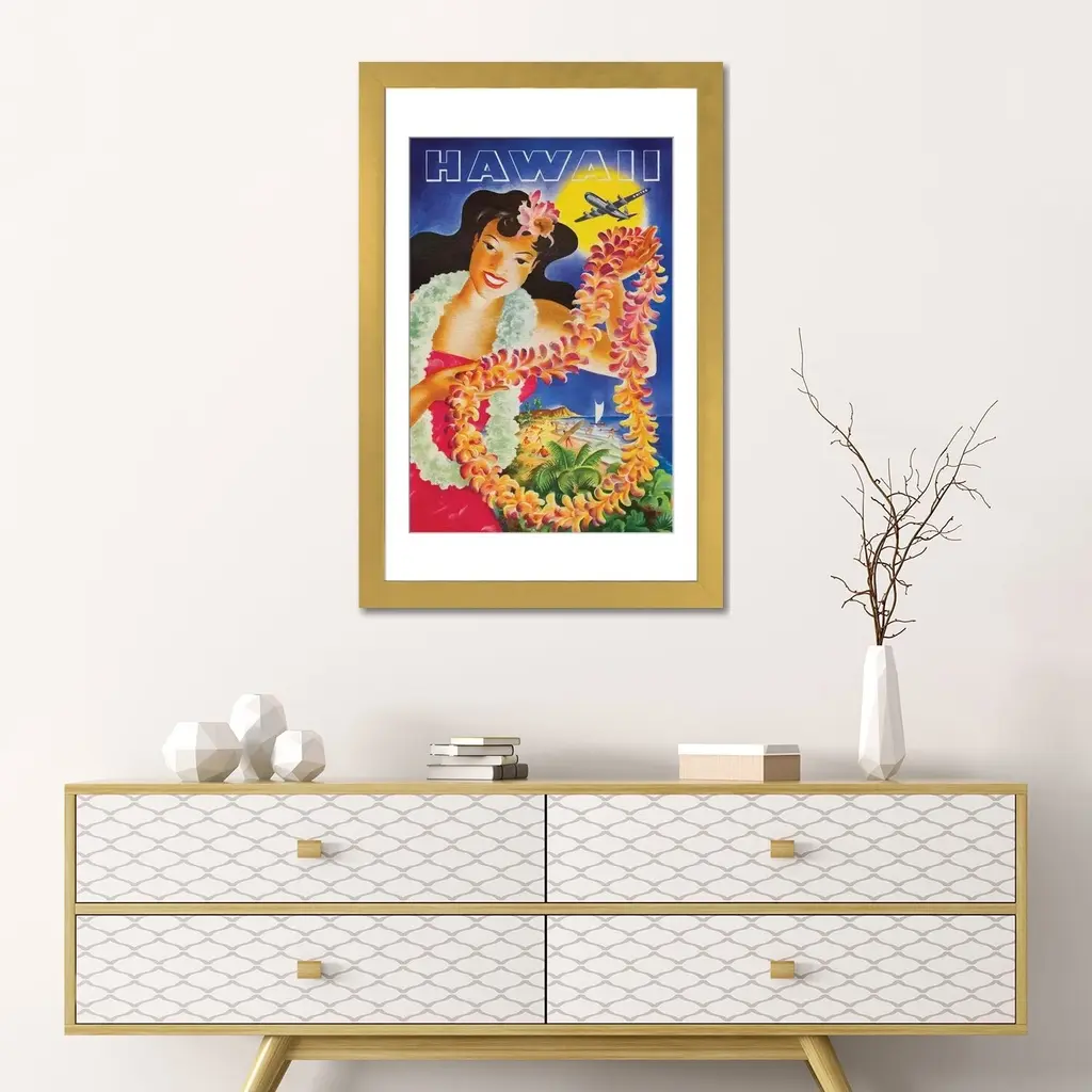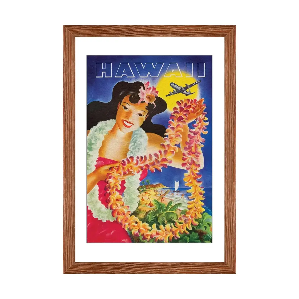 Icanvas "Hawaii Vintage Travel Poster (From Vector)" By Alessandro Della Torre - Walnut - 24x16x1