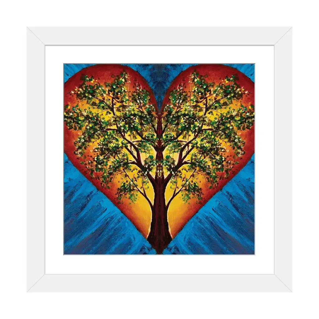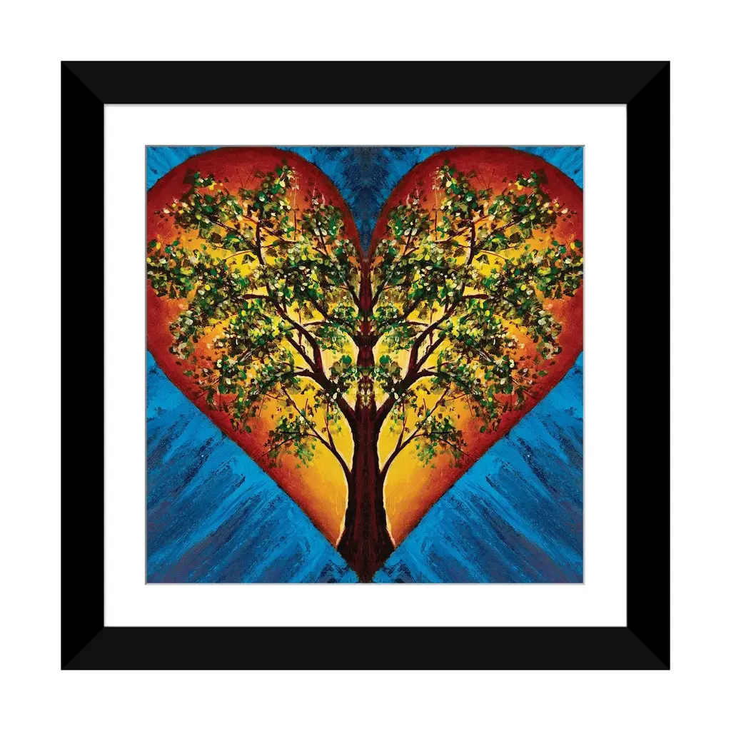 Icanvas "Heart With Blossoming Tree Of Life Inside On Blue Background" By Valery Rybakow - Black - 24x24x1